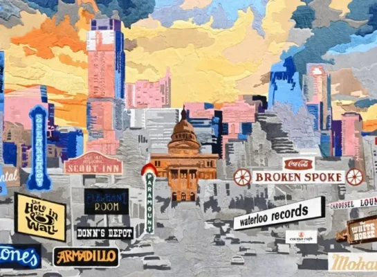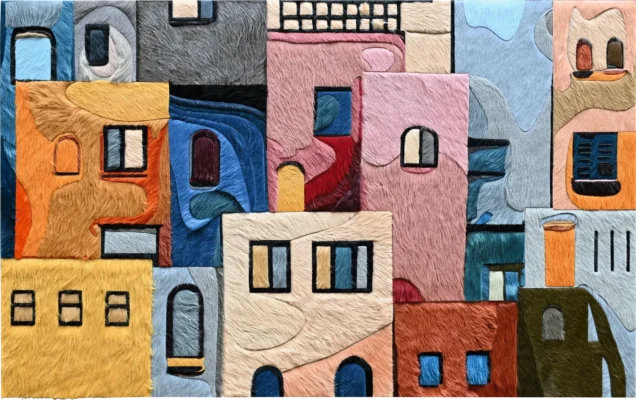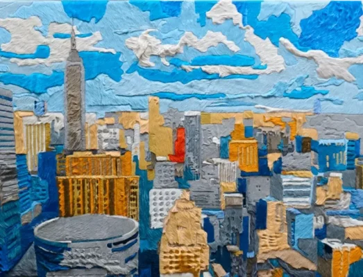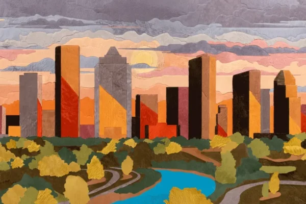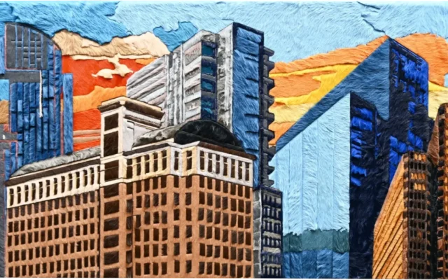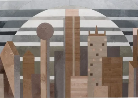 Striking, hand-pieced hide artworks that reinterpret iconic cityscapes with bold geometry, texture, and modern sophistication.