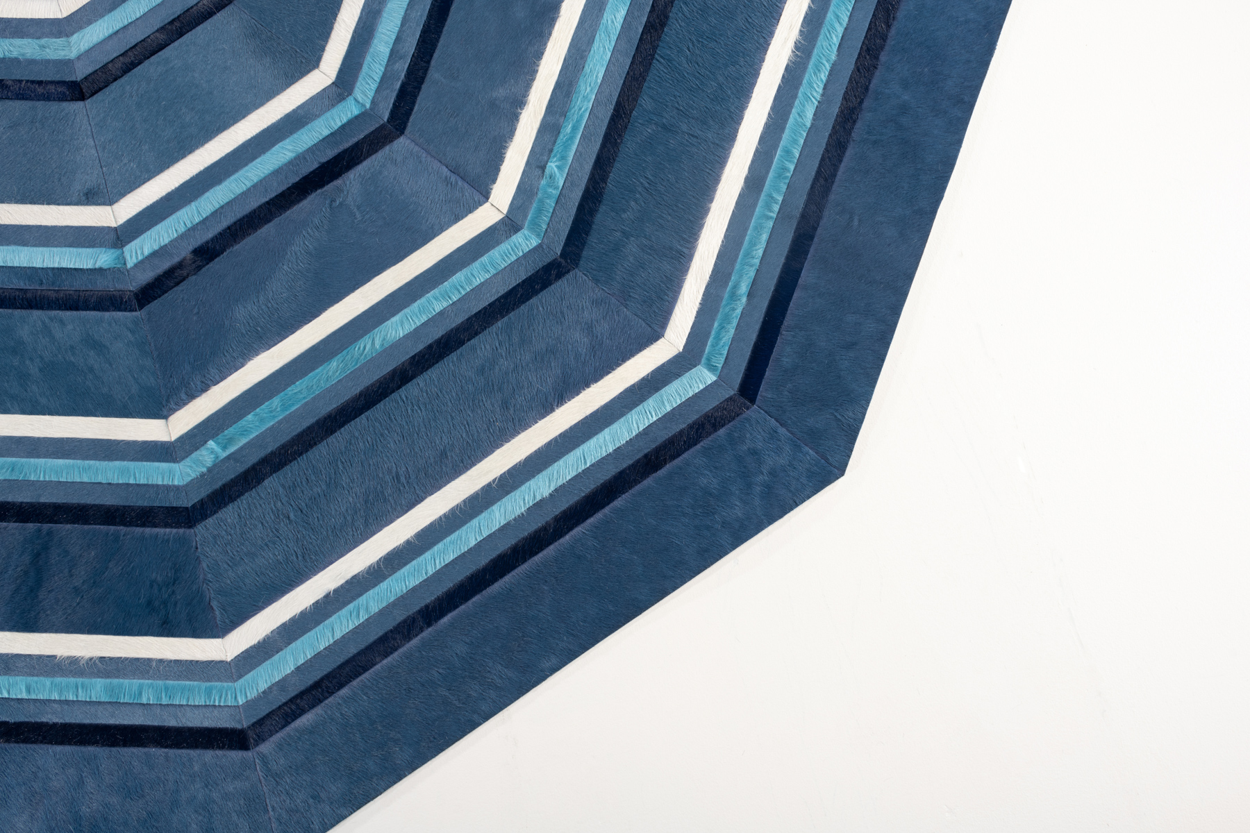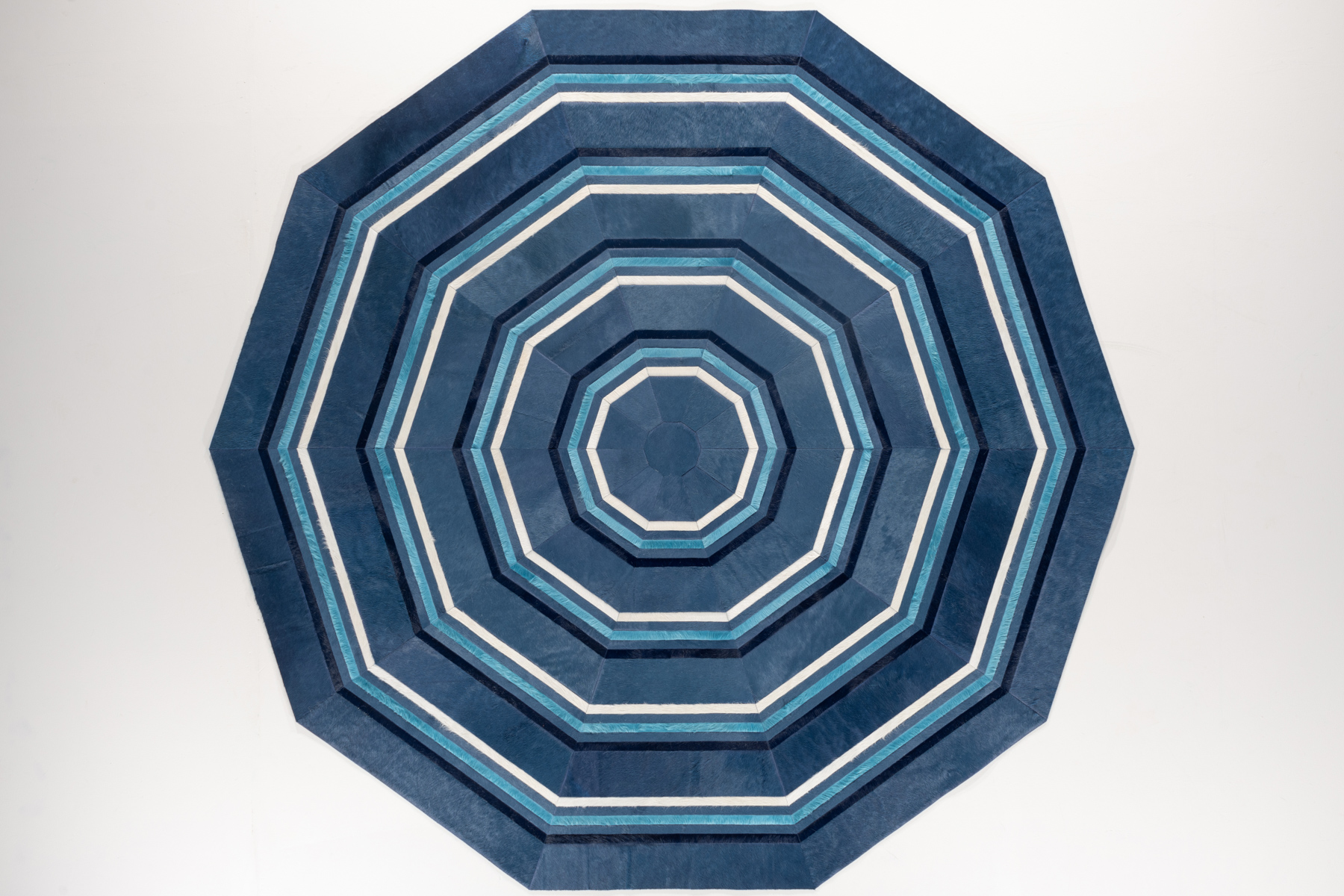 Bringing to mind the social affluence and artistic creativity of La Belle Époque, Cannes illustrates playful elegance with its banded triple decagon design. Using thin pencil stripes placed symmetrically between thicker bands, Cannes offers an infinite number of illusory and imaginative color placements.