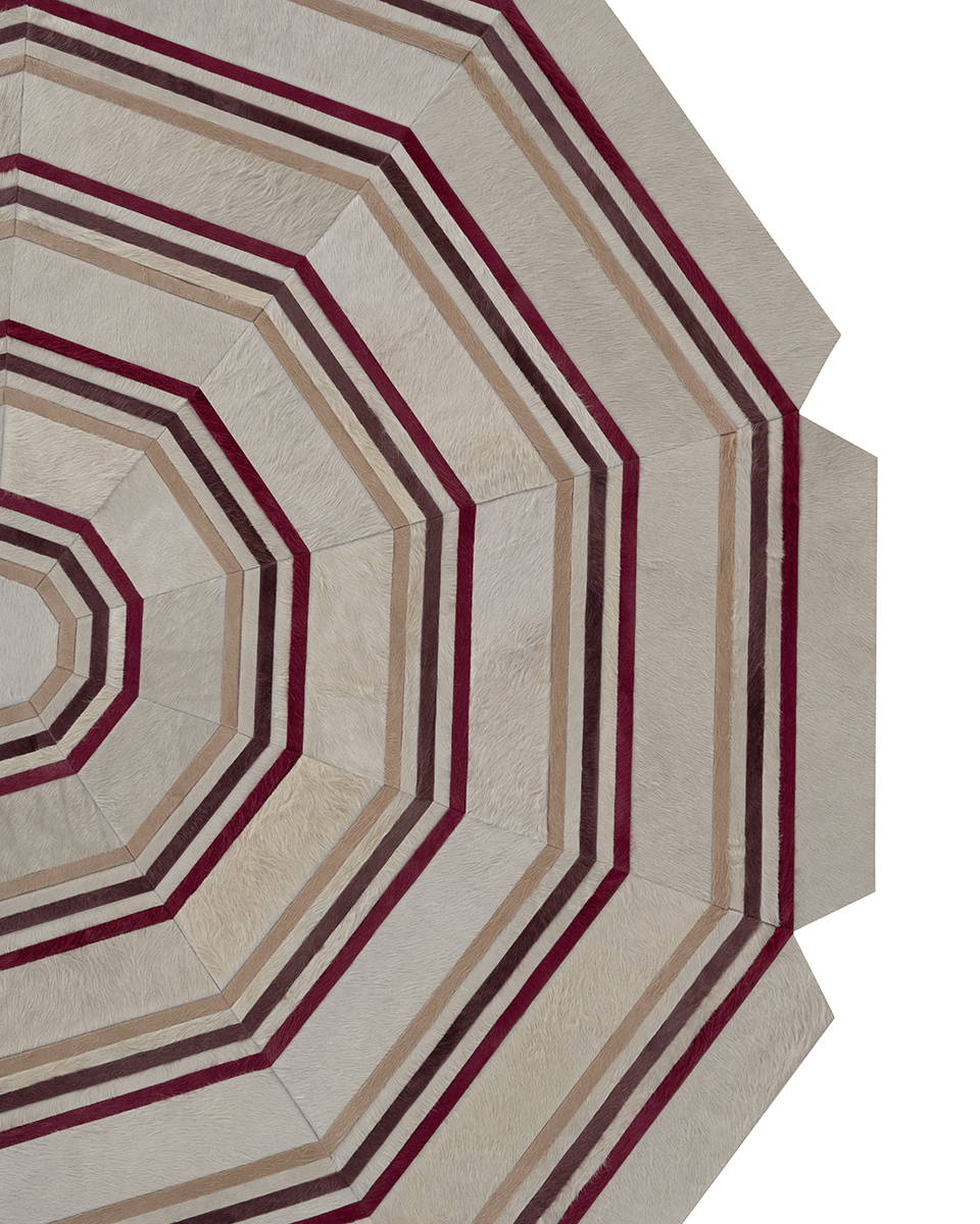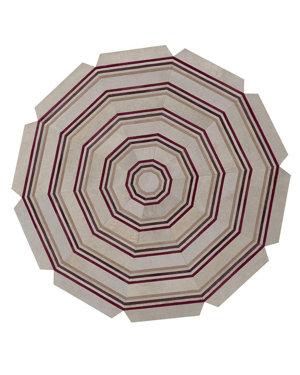 Bringing to mind the social affluence and artistic creativity of La Belle Époque, Cannes illustrates playful elegance with its banded triple decagon design. Using thin pencil stripes placed symmetrically between thicker bands, Cannes offers an infinite number of illusory and imaginative color placements.