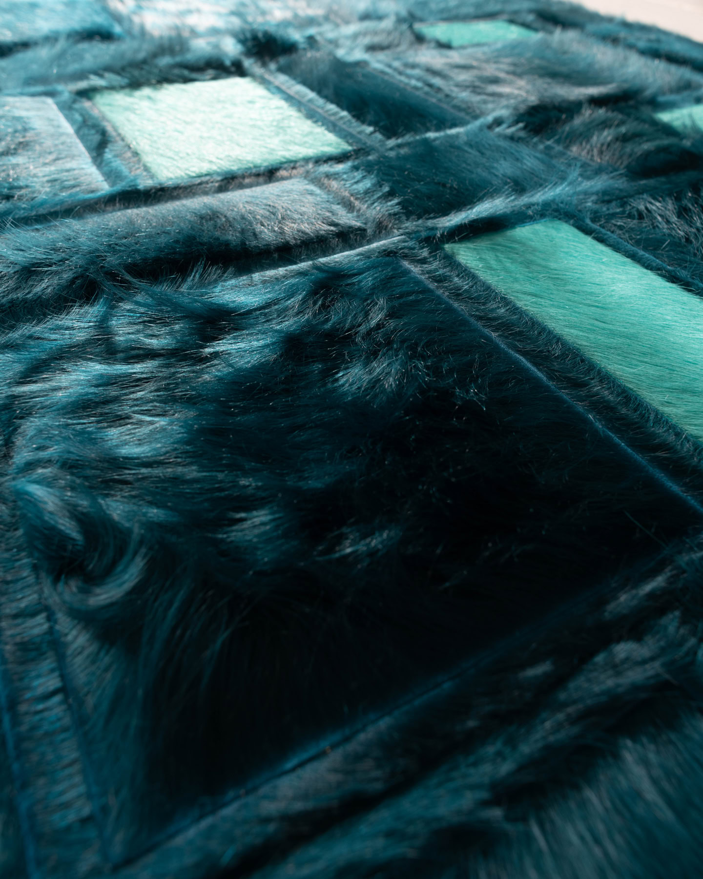 Confusion was originally developed for a modern project in Hong Kong, using varying sizes of banded strips of hide in a grid to create a modern, geometric composition. The arrangement has since been adjusted to explore a sophisticated running band layout, resulting in a contemporary, fresh design.