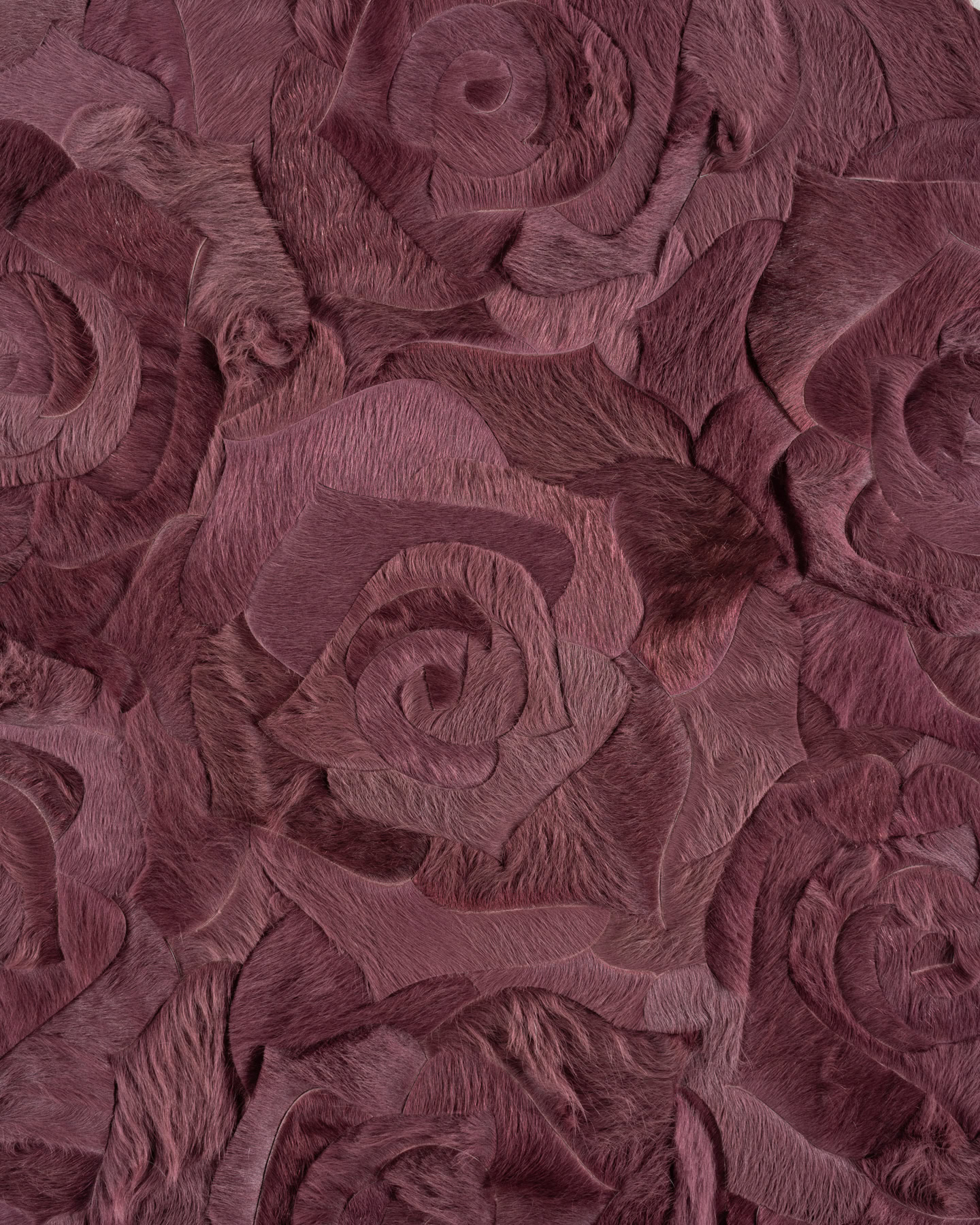 “A rose by any other name would smell as sweet.” Coronation is just as sweet as its muse, boasting delicate, curved pieces of hide that come together to create floral imagery. Originally imagined as five singular roses circling the rug’s center, this design has taken on many interpretations since its introduction.