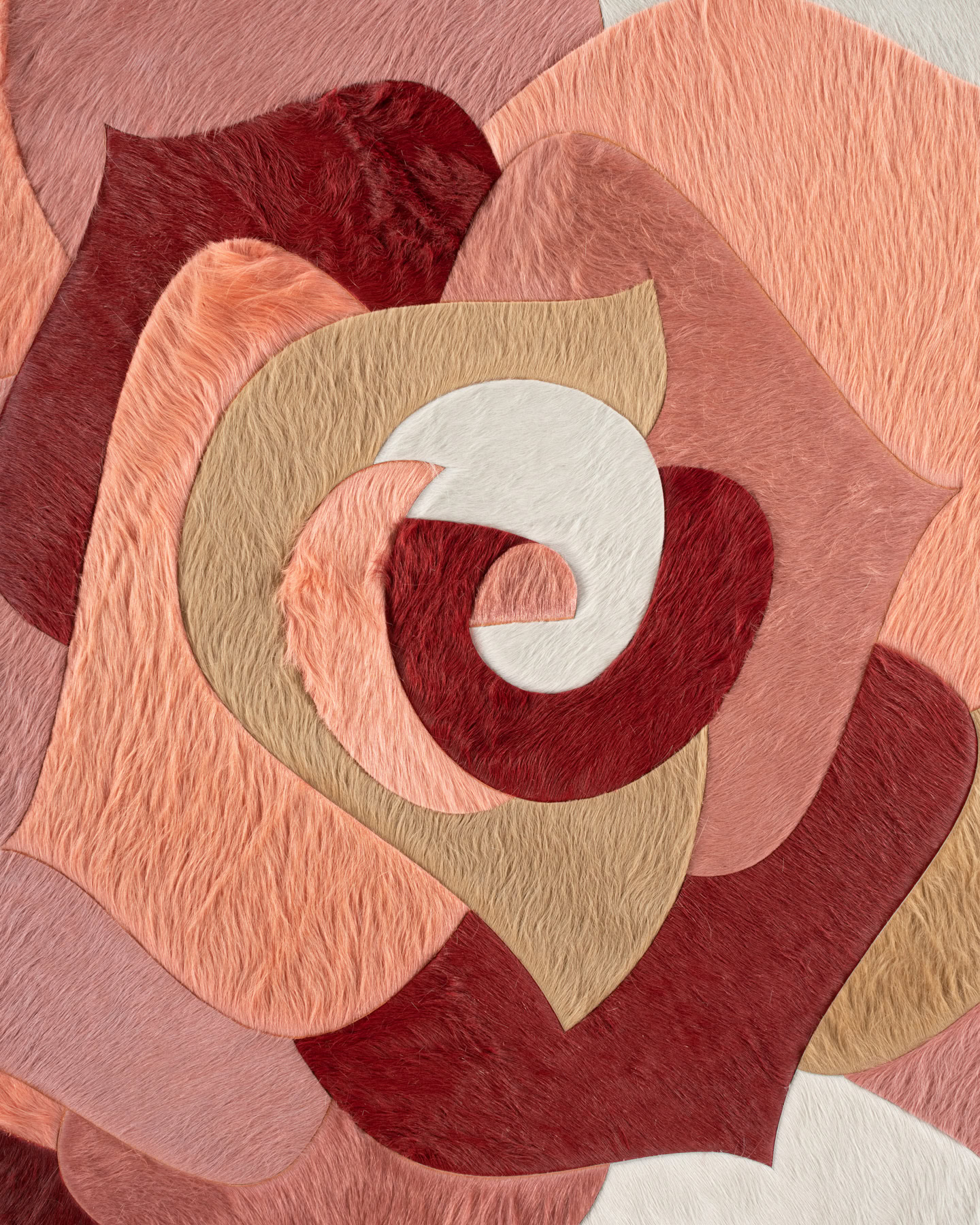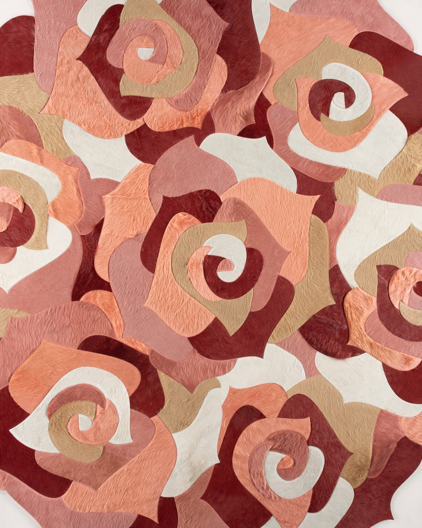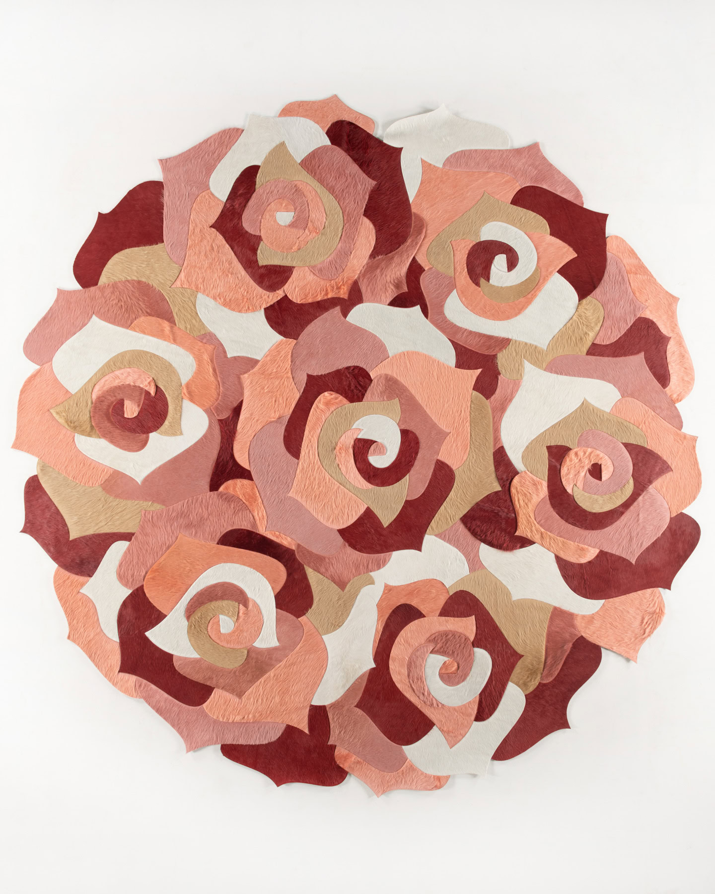 “A rose by any other name would smell as sweet.” Coronation is just as sweet as its muse, boasting delicate, curved pieces of hide that come together to create floral imagery. Originally imagined as five singular roses circling the rug’s center, this design has taken on many interpretations since its introduction.