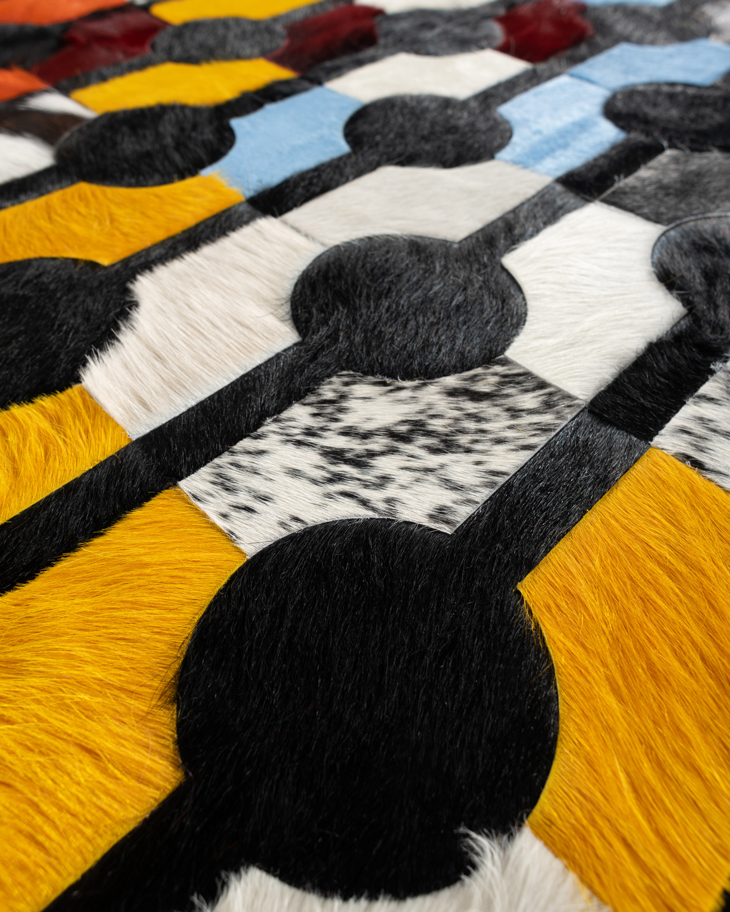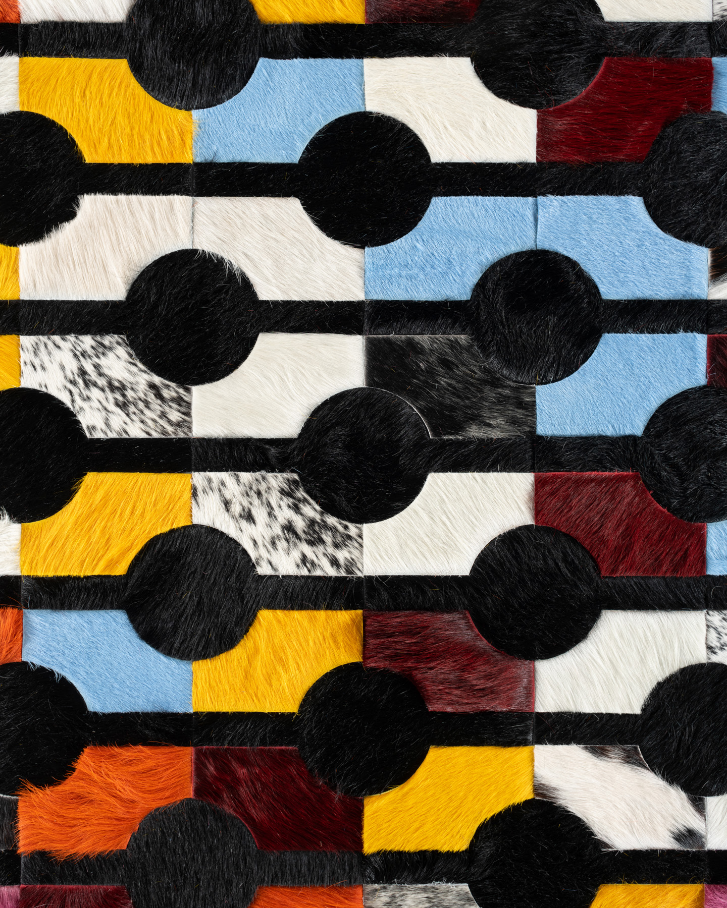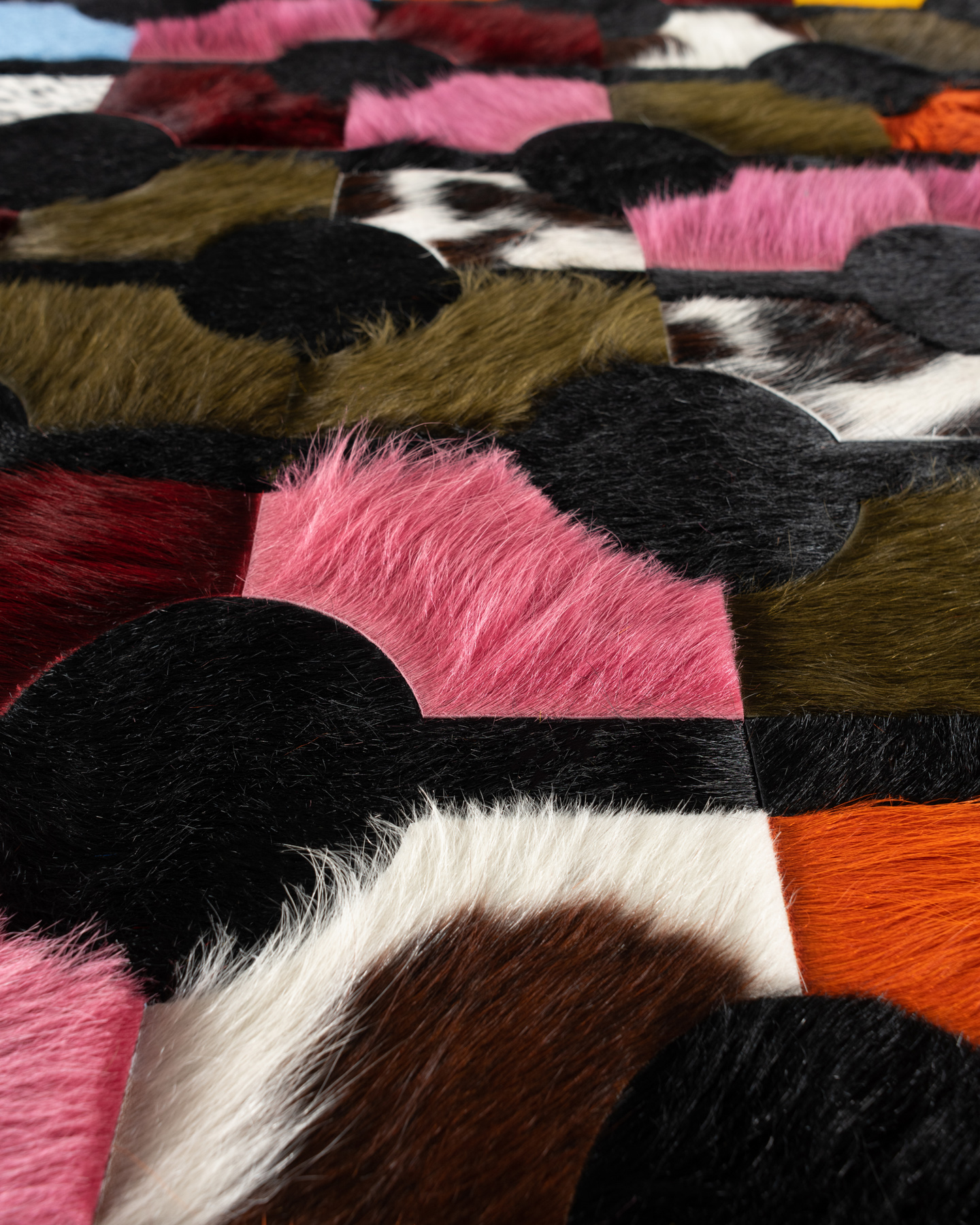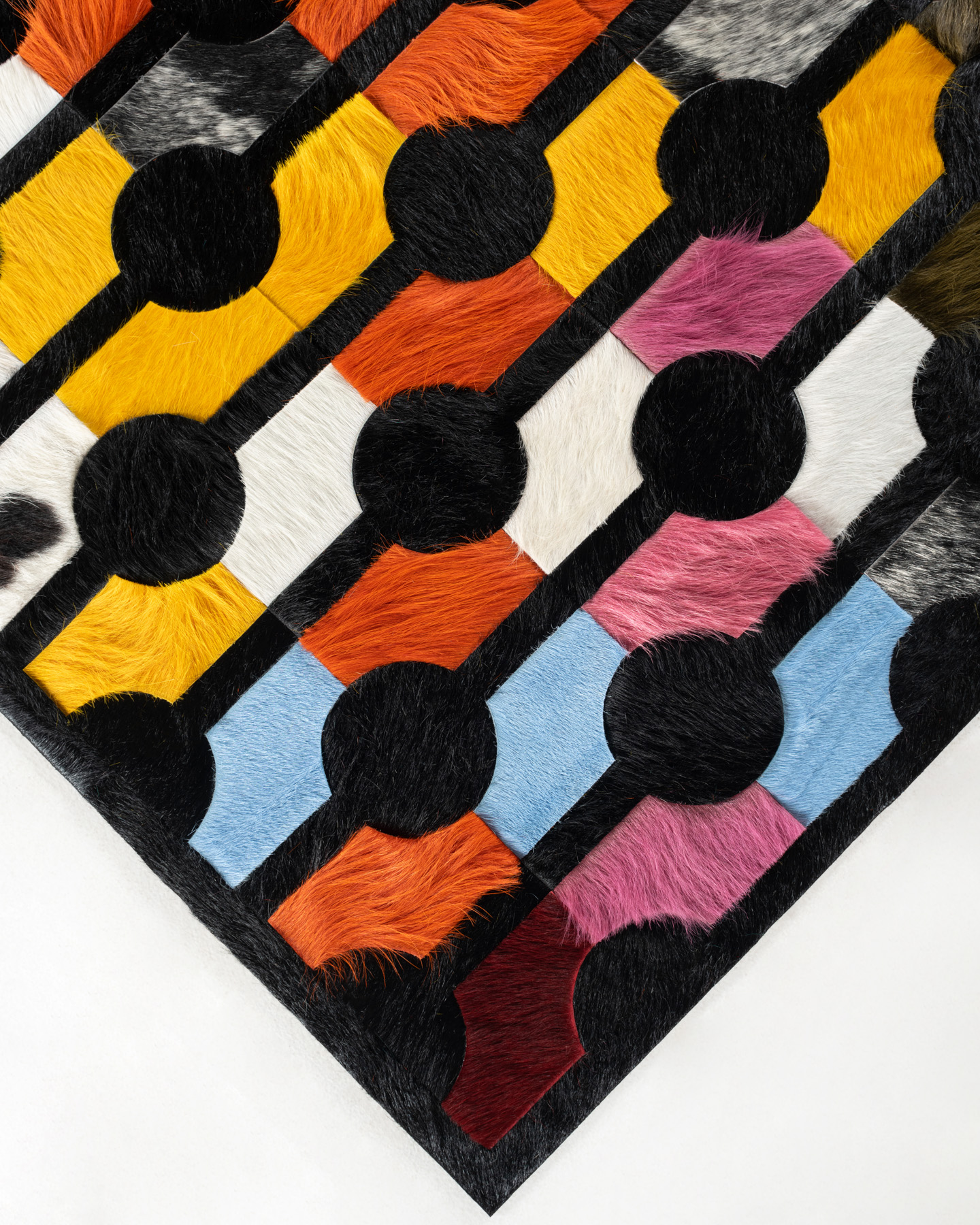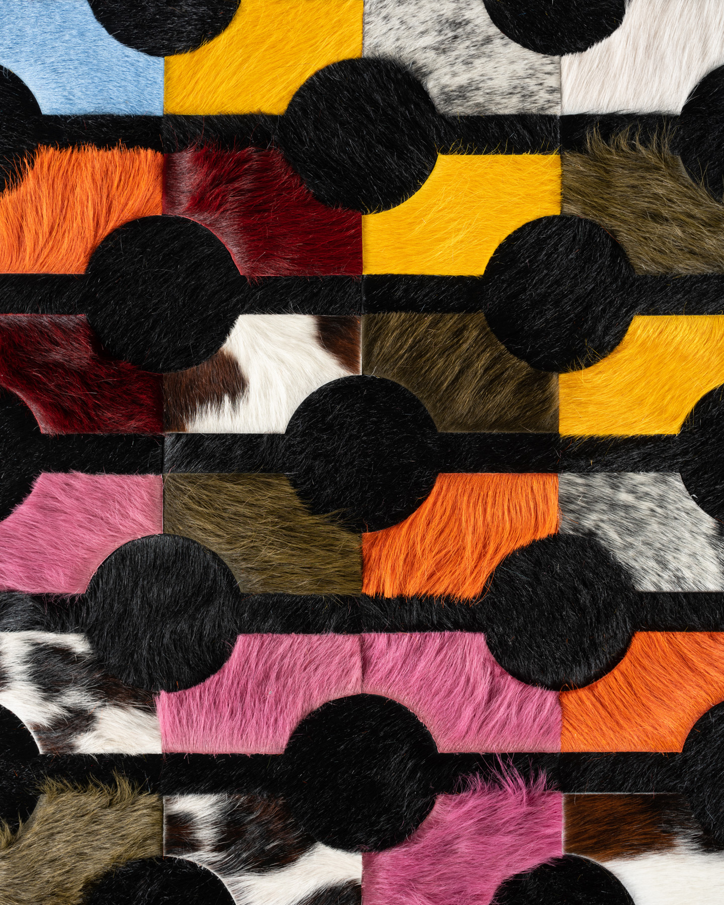 Created in collaboration with multidisciplinary designer Christian Arkay-Levelier, Crush creates a type of aesthetic illusion. Since the background of the pattern is often composed of colorful strips of hide, the negative space of the composition becomes the focal point of the piece.
