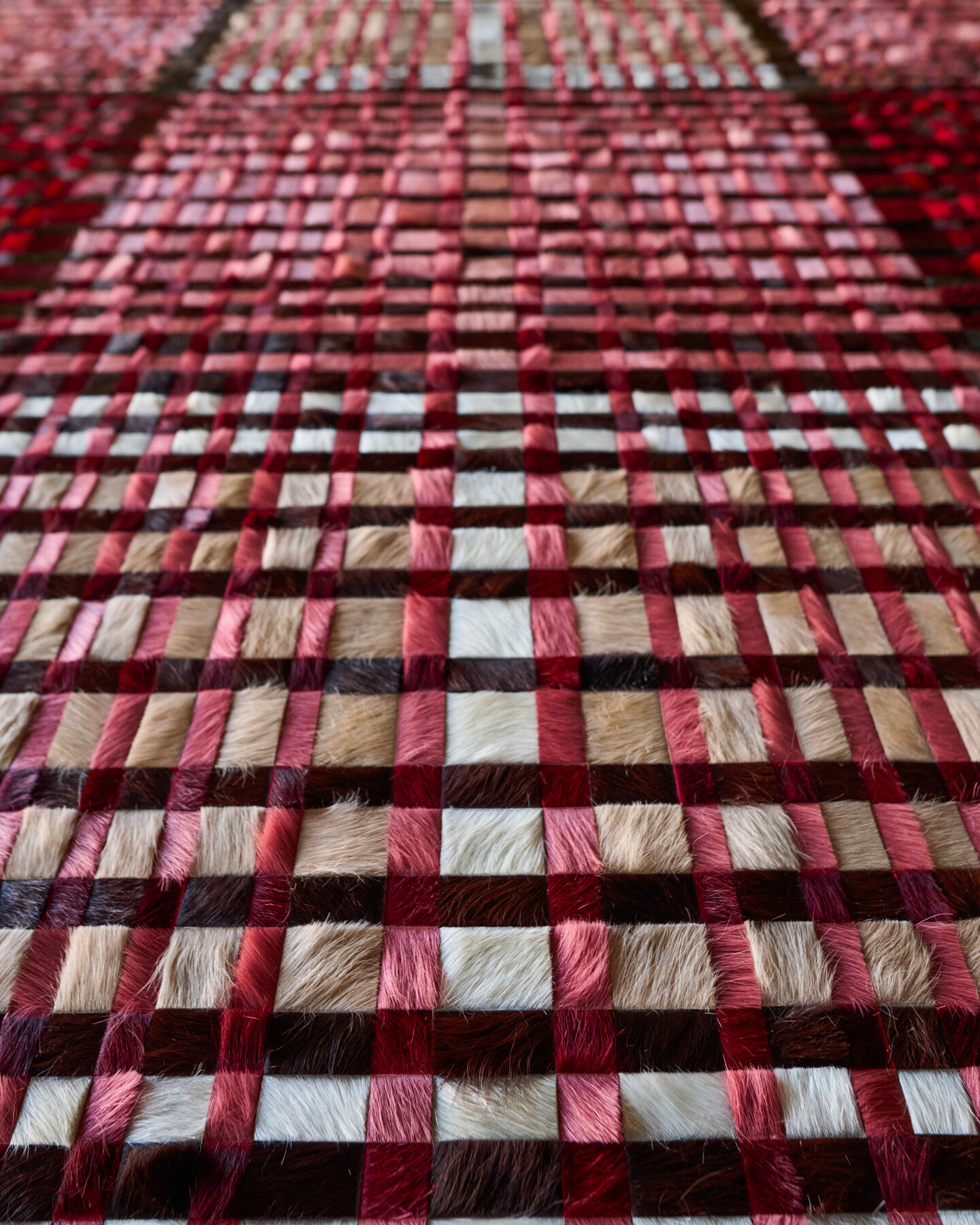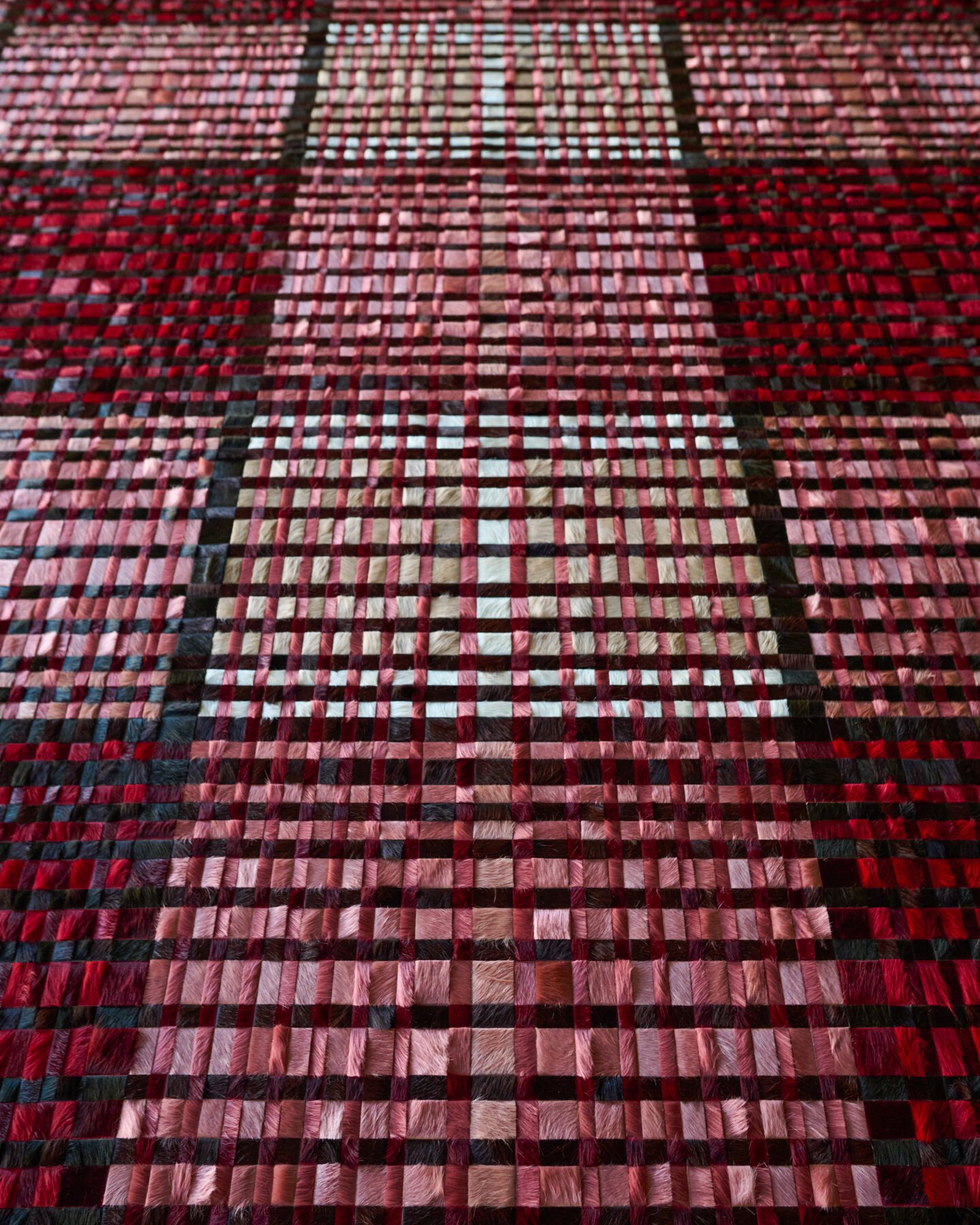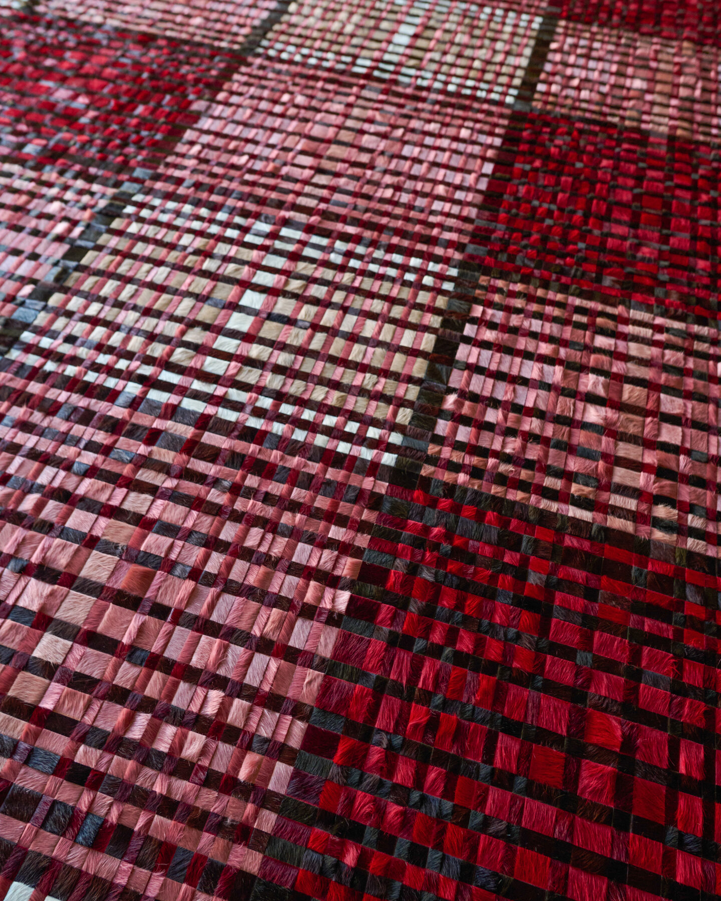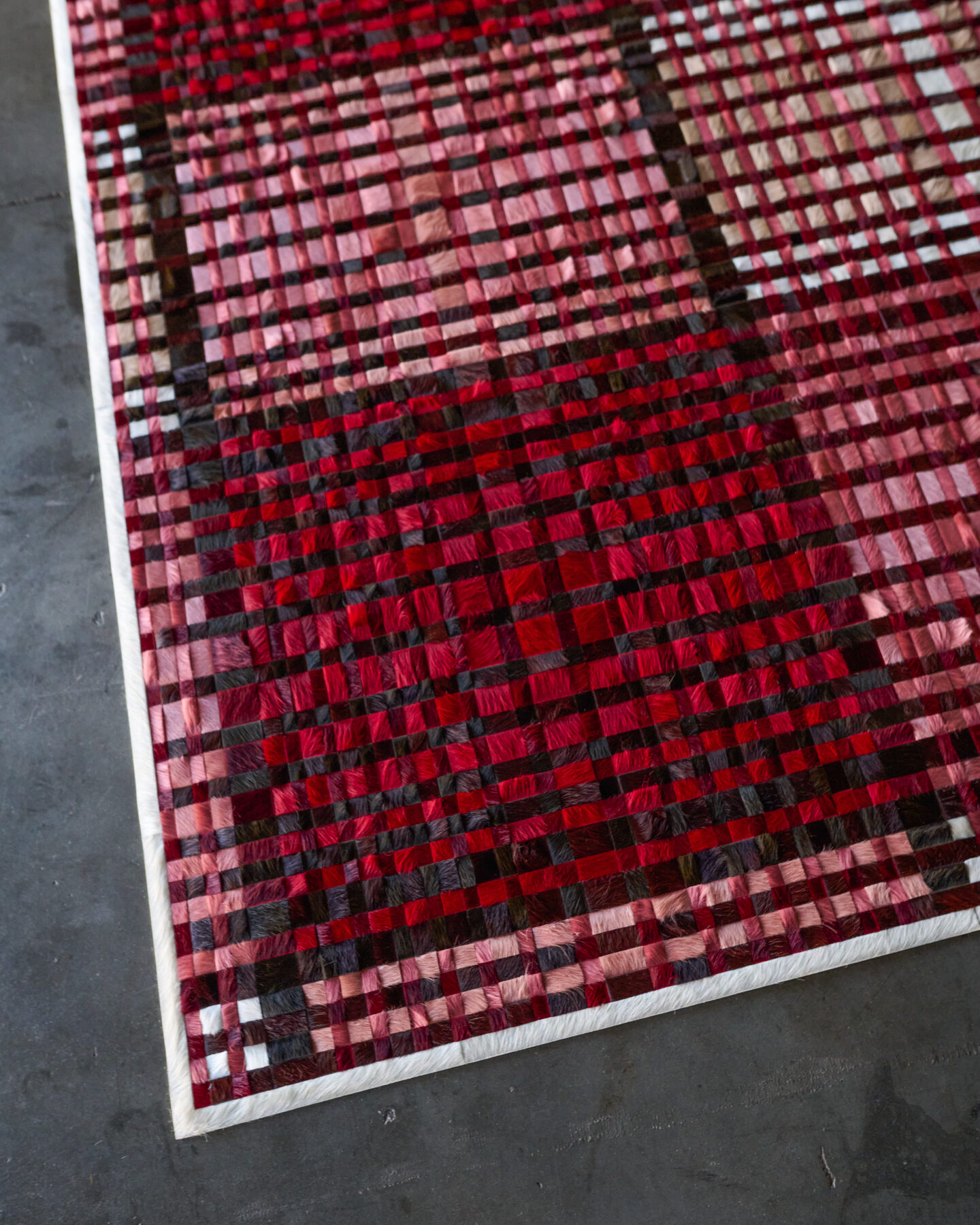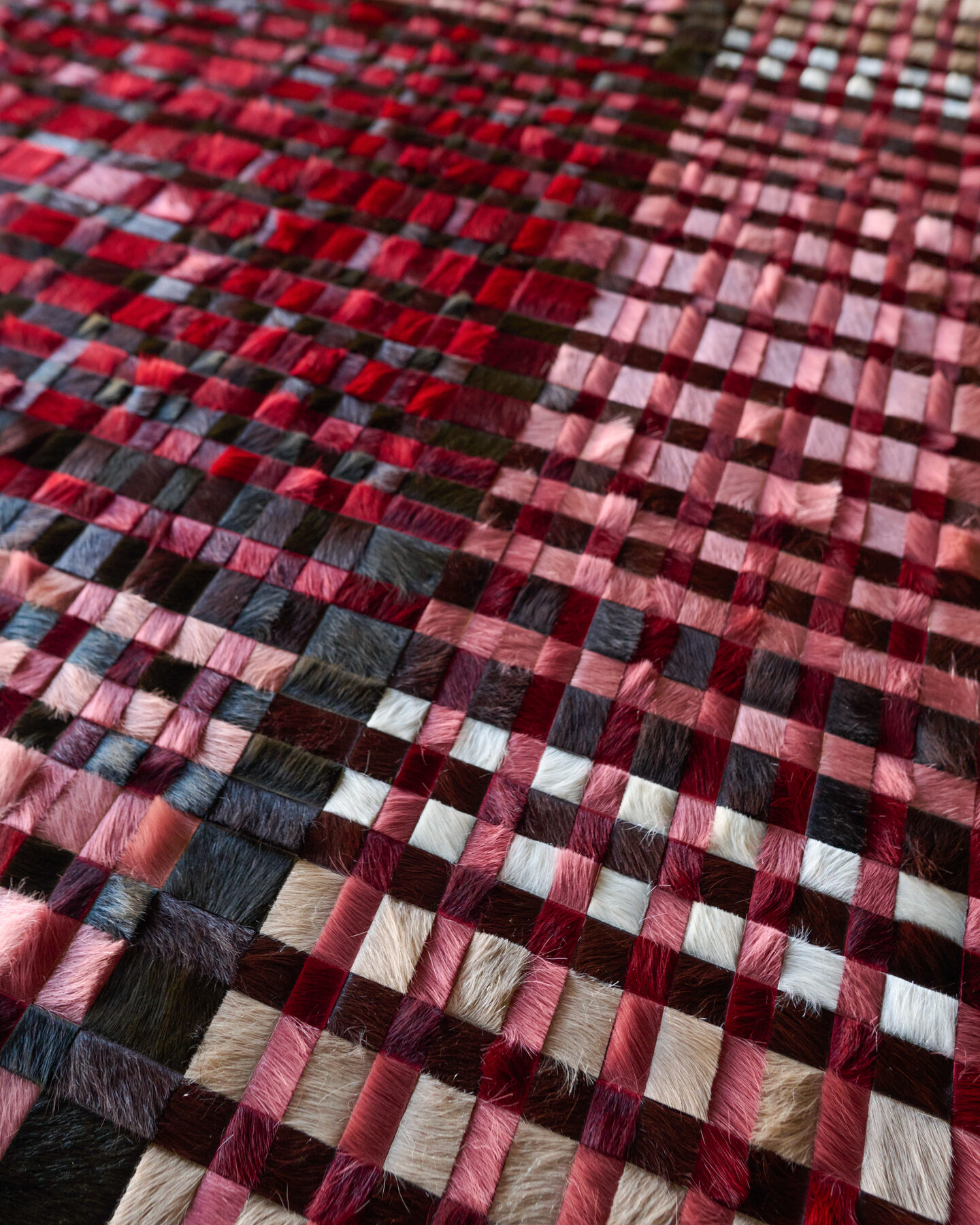 Custom hide geometric plaid rug by Kyle Bunting and More Design