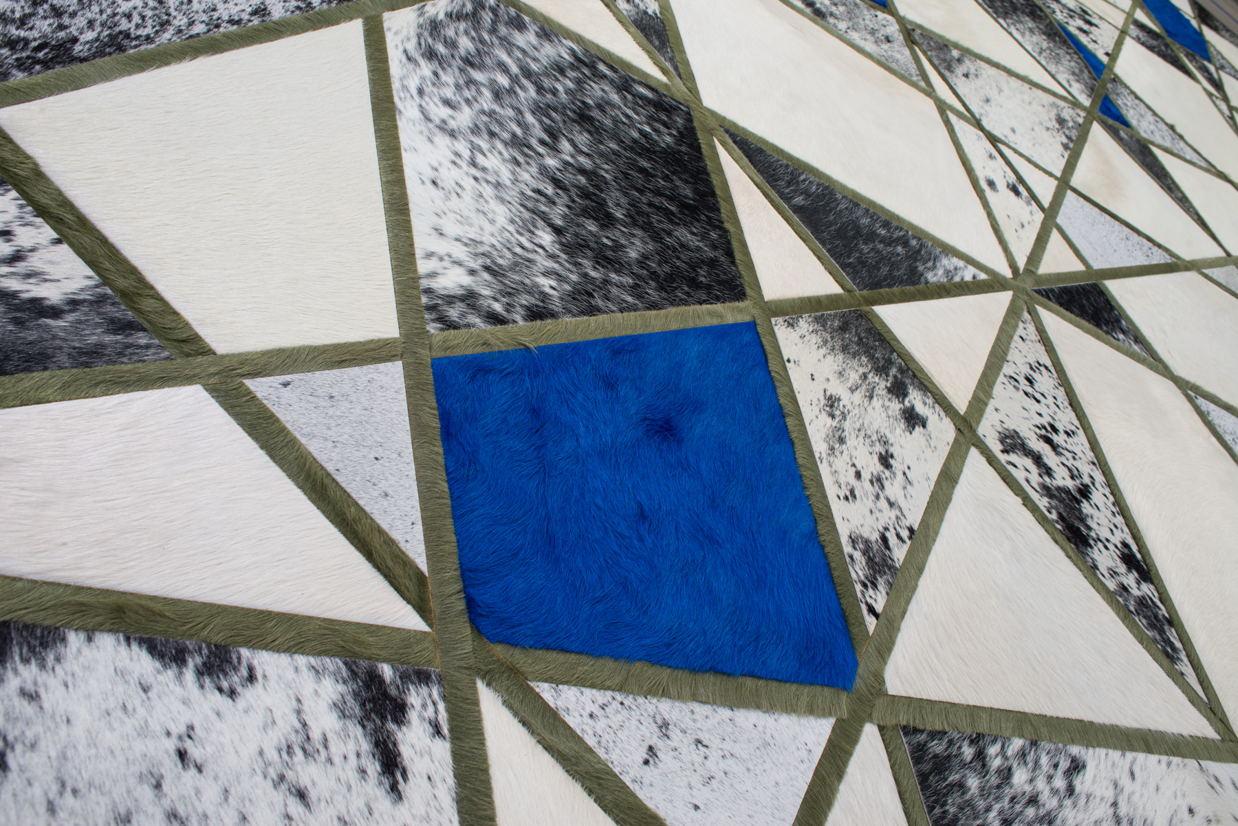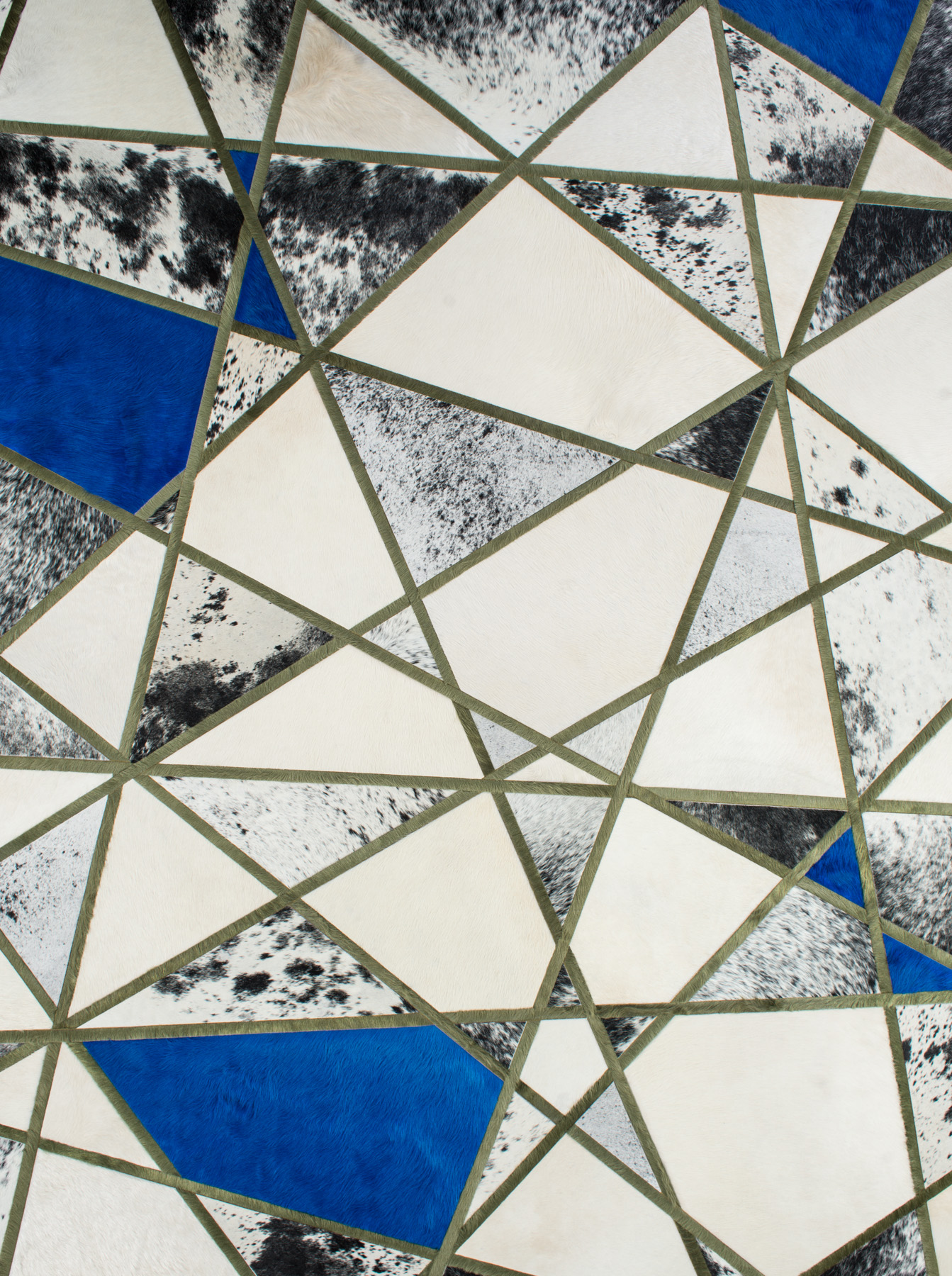 Reminiscent of a chic game of Pick-Up Sticks, Runway is noted for its sharp lines, made from 1” strips of hide, that seem to slice through the background of the design. First introduced for in 2010 with Gump’s in San Francisco, Runway is a popular pattern which looks dynamic with either monochromatic or contrasting color placement.