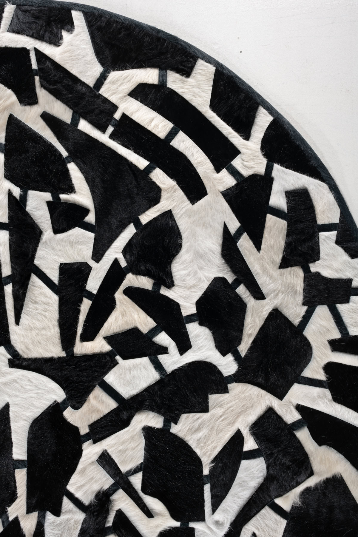 Like all in the Abidemi Series, Element II showcases sporadically placed, angular shapes interlocked with one another through thin strips of hide. The design itself features a central fracture of shapes with the rest of the pieces orbiting around its point of focus.