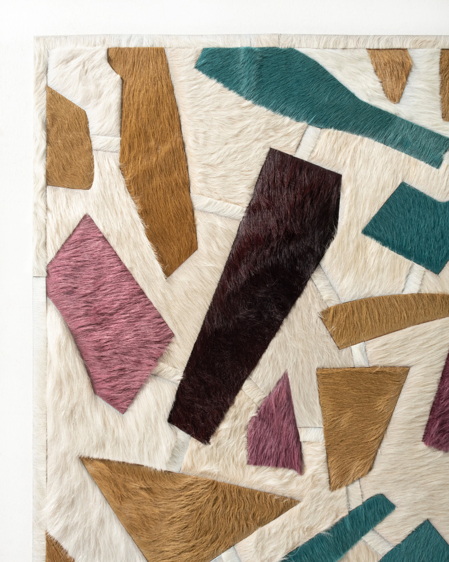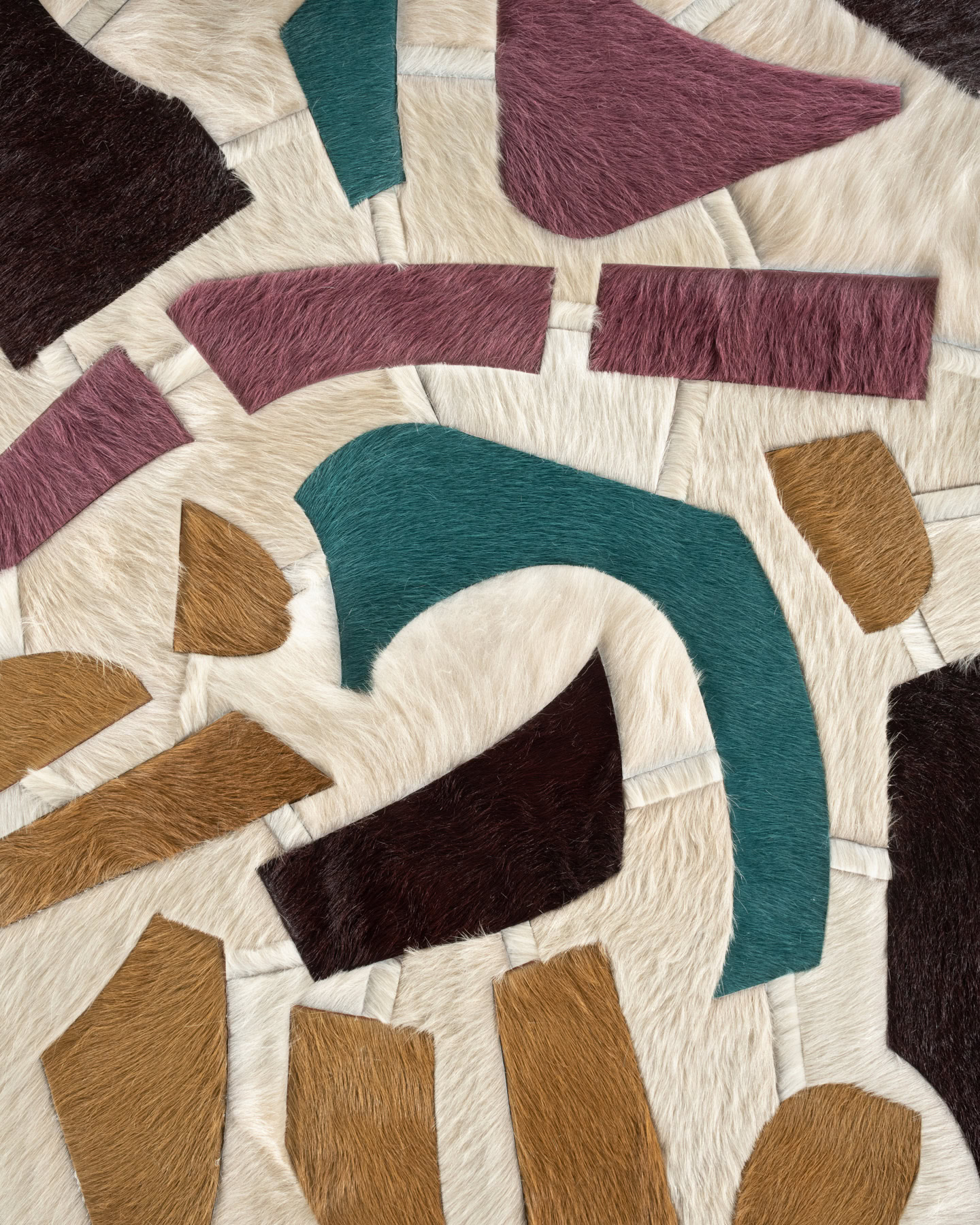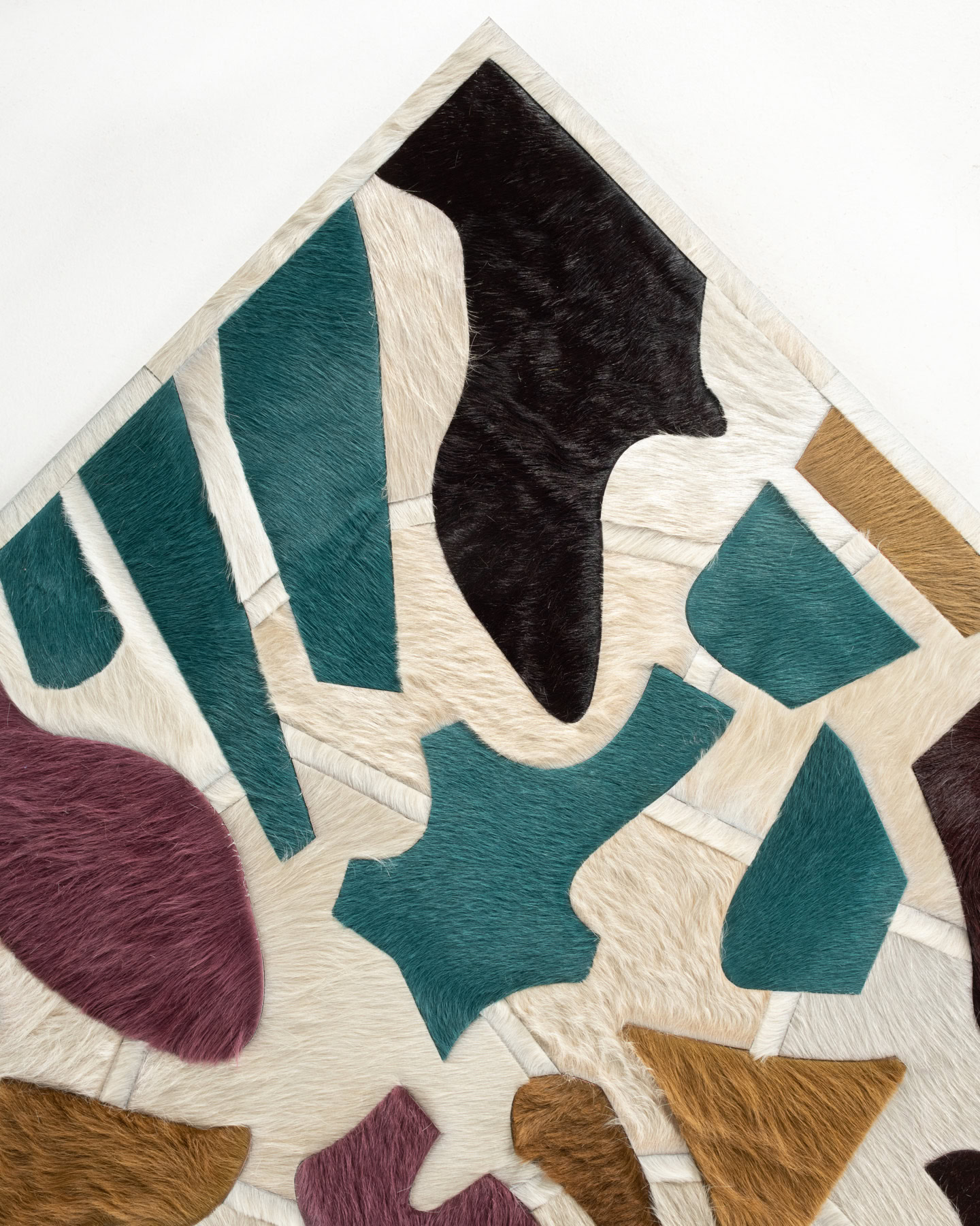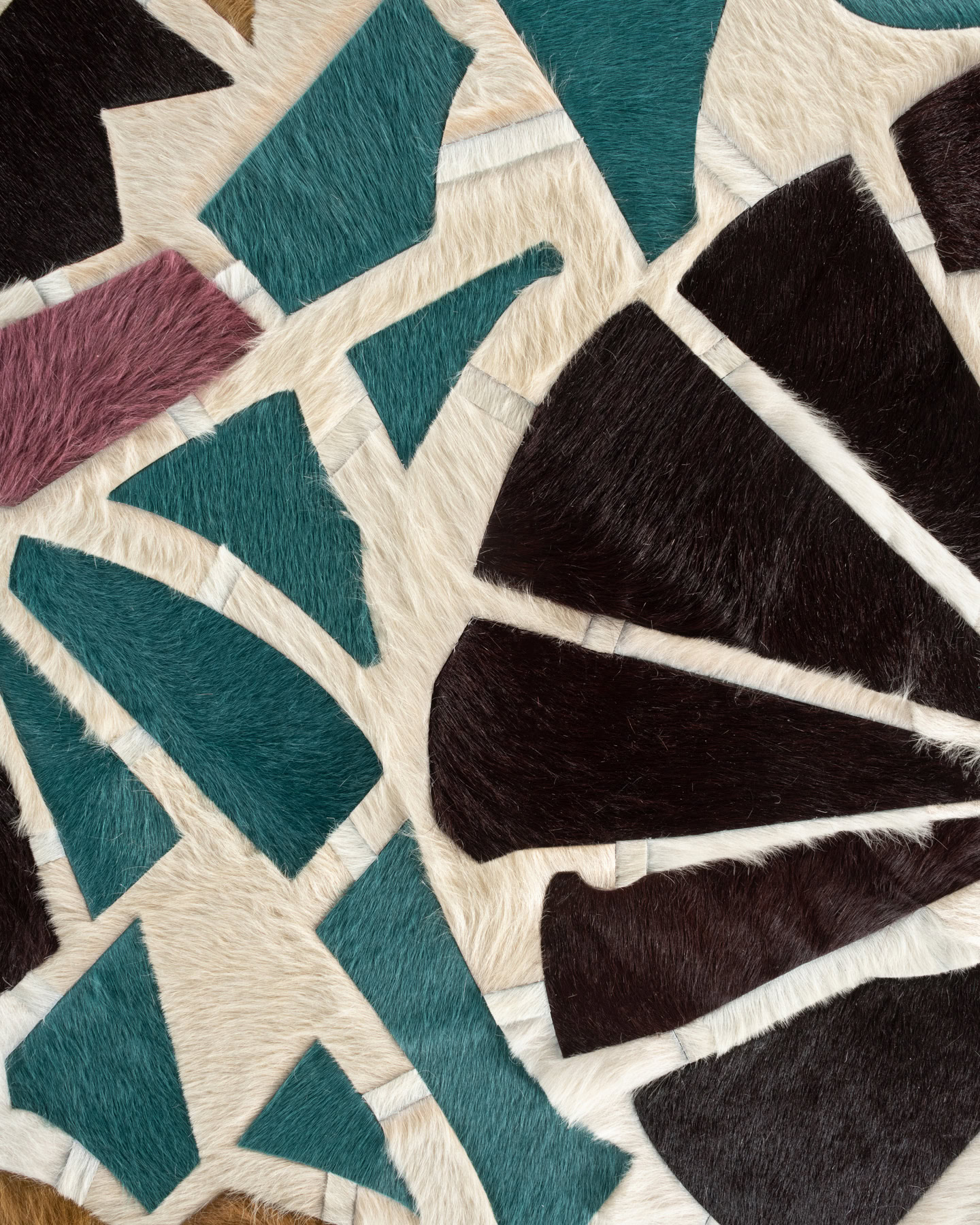 Like all in the Abidemi Series, Element III showcases sporadically placed, angular shapes interlocked with one another through thin strips of hide. The design itself features three distinct flower shapes with broken elements radiating around the trio.