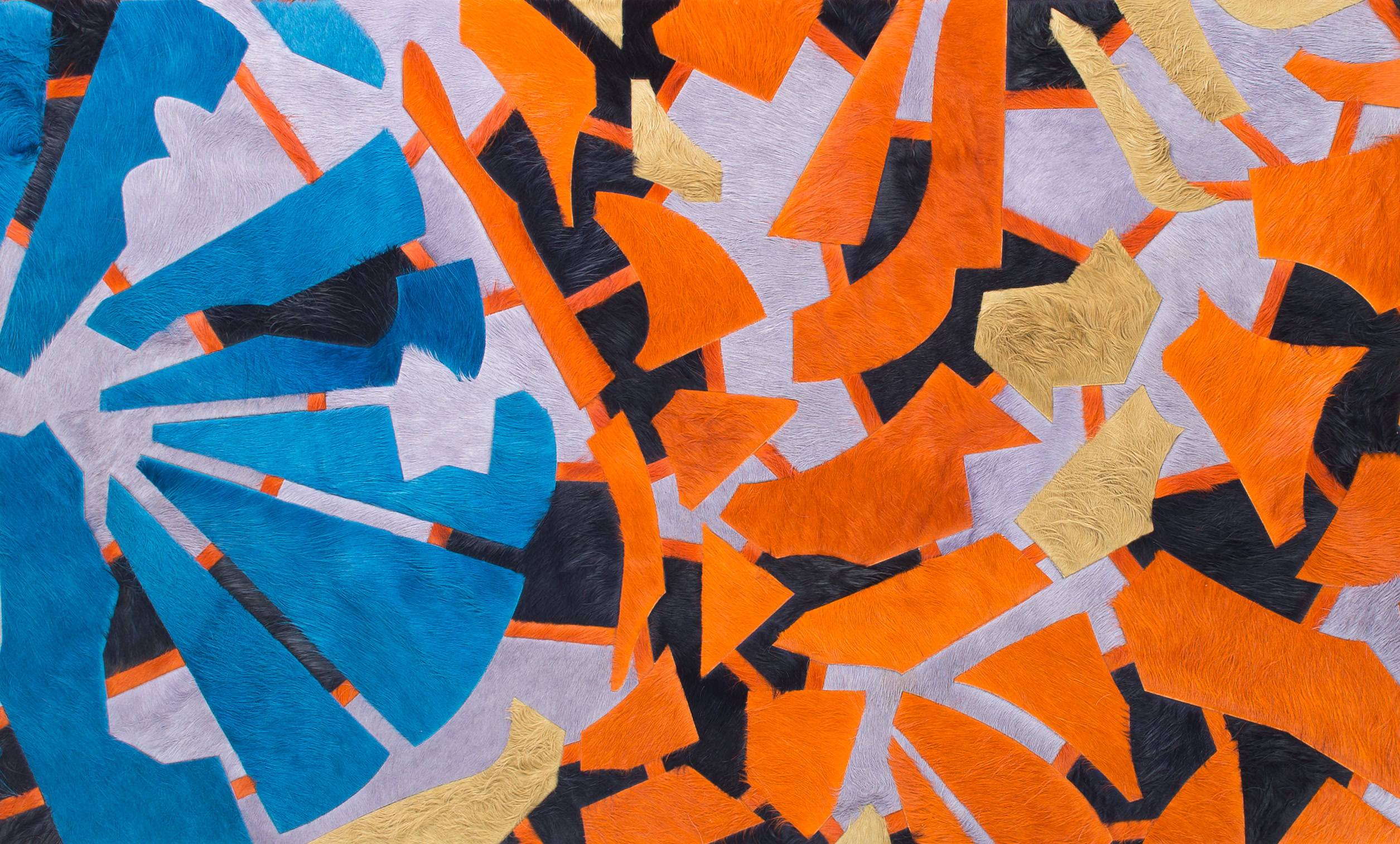 Like all in the Abidemi Series, Element II showcases sporadically placed, angular shapes interlocked with one another through thin strips of hide. The design itself features a central fracture of shapes with the rest of the pieces orbiting around its point of focus.