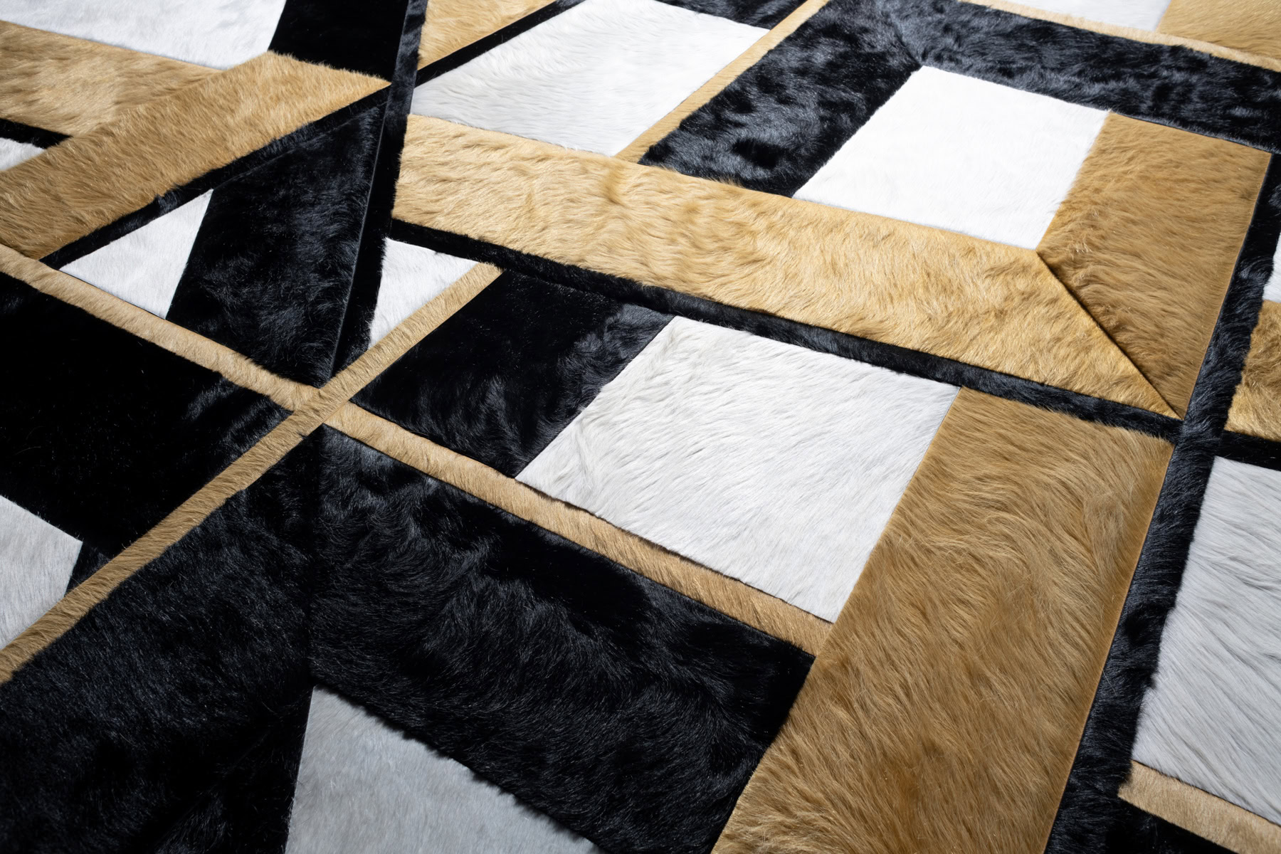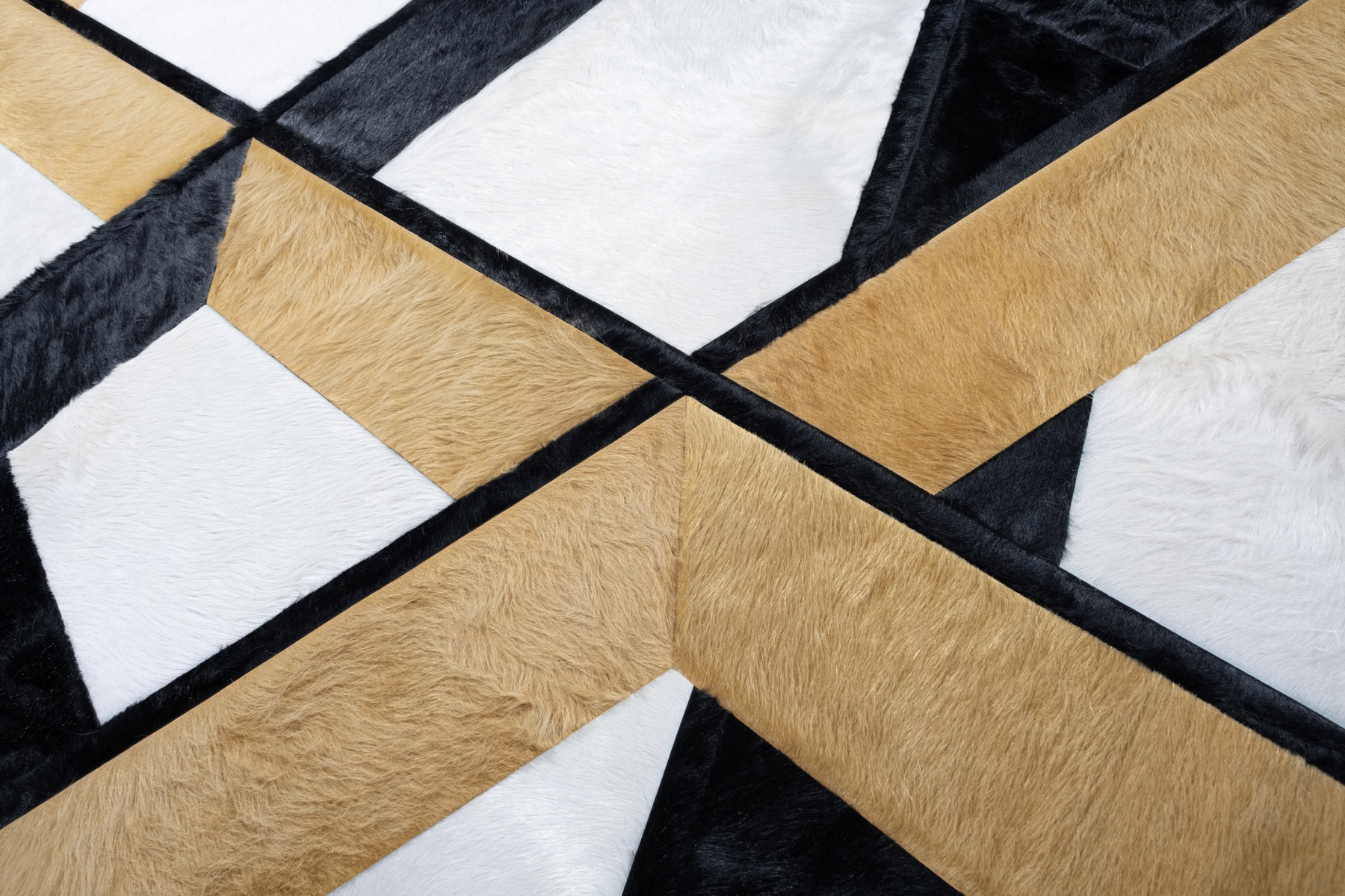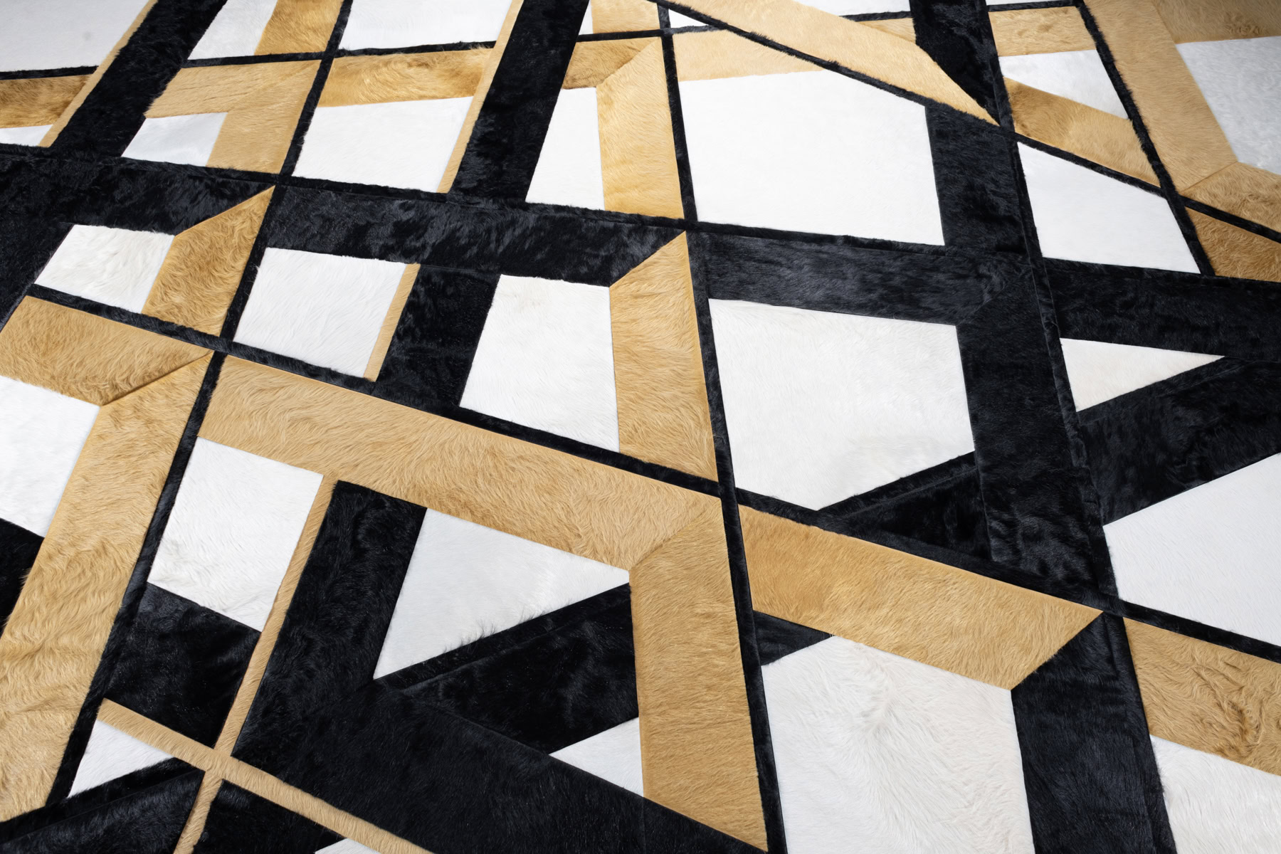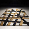 Everlong conjures images of ceiling latticework, where its prominent negative space can be imagined as openings through wooden or steel beams. The refined yet haphazard strips of hide create a three-dimensional view on a two-dimensional plane.