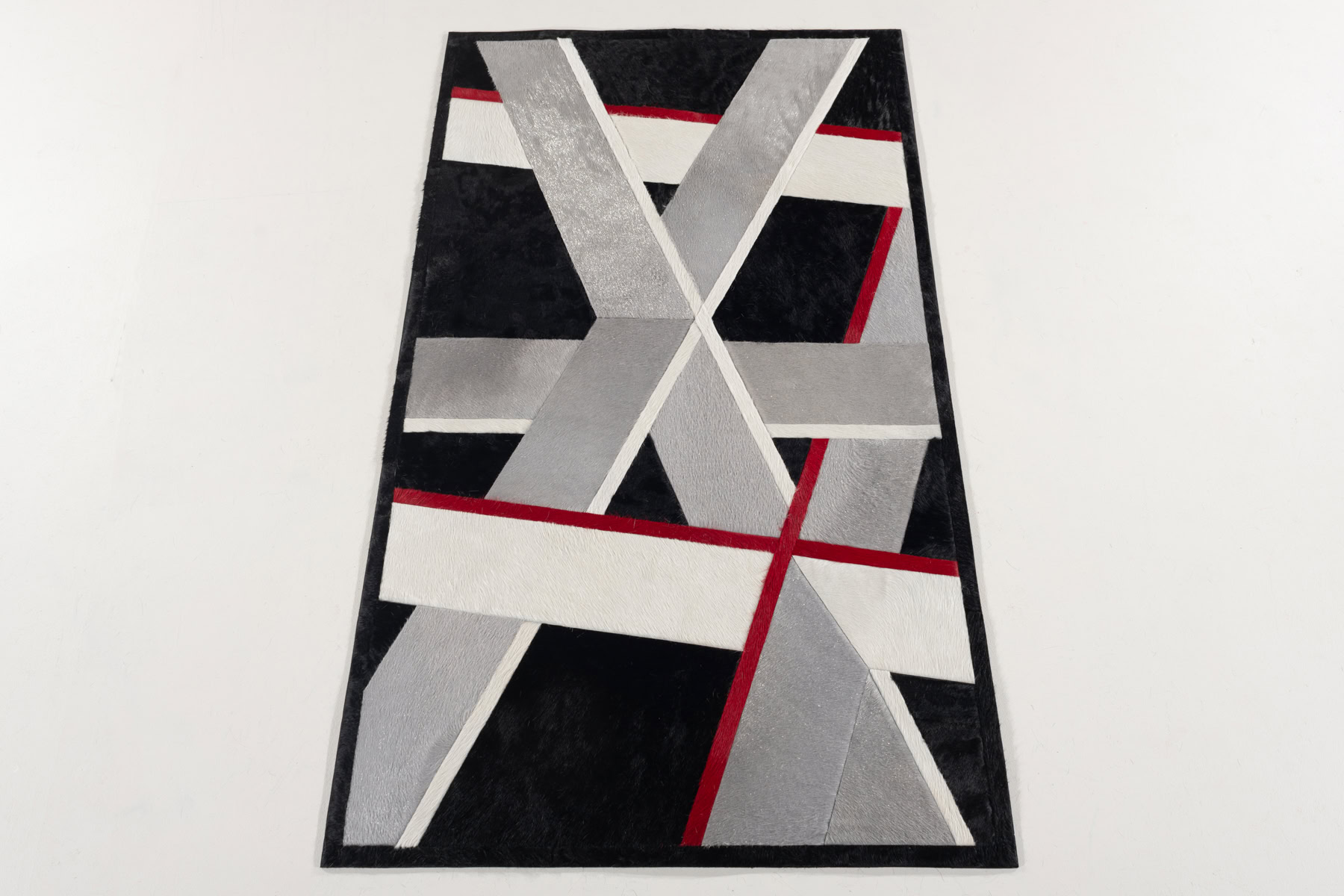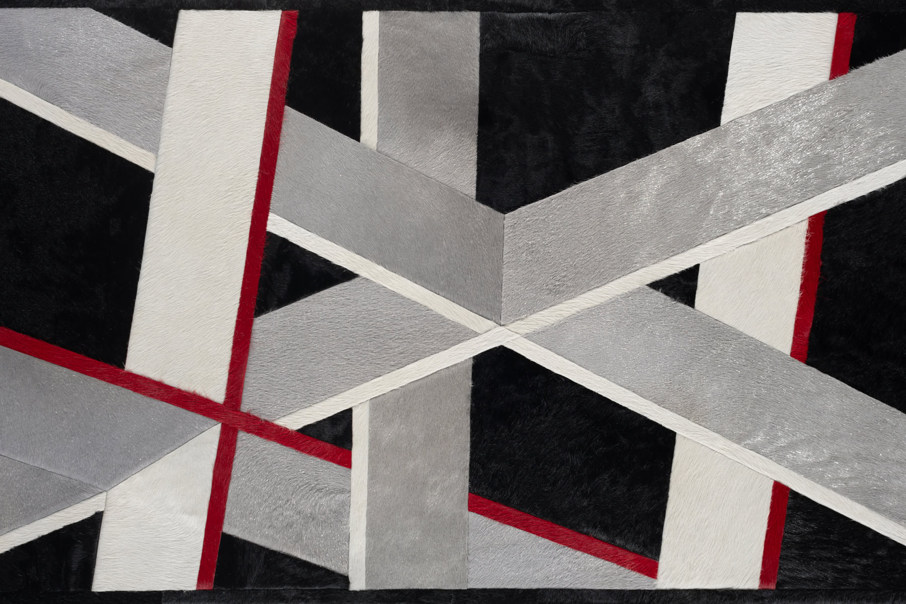 Everlong conjures images of ceiling latticework, where its prominent negative space can be imagined as openings through wooden or steel beams. The refined yet haphazard strips of hide create a three-dimensional view on a two-dimensional plane.