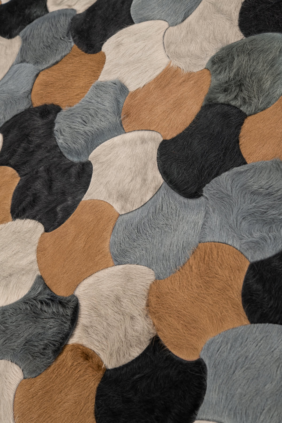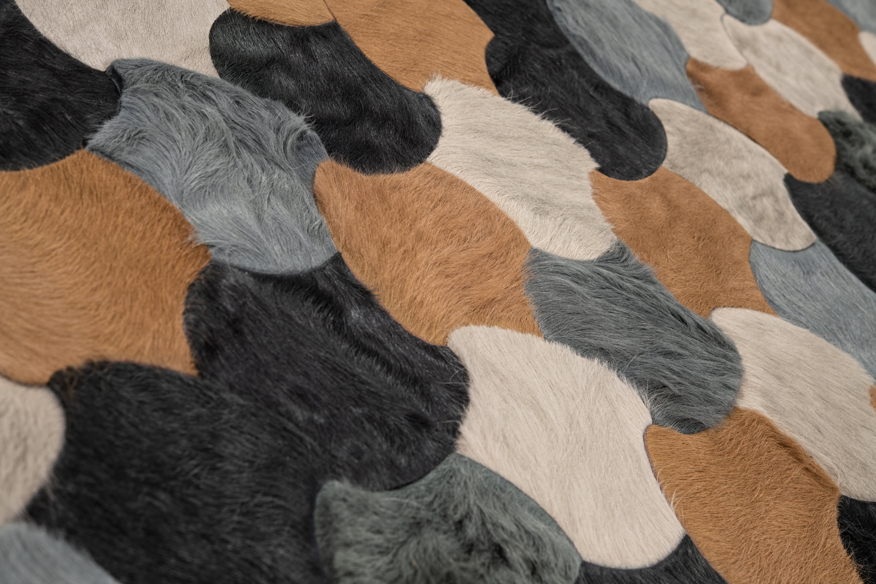 First imagined with designer Barry Dixon for the Greystone Mansion in Beverly Hills, Leigh is admired for is simplistic beauty. The adjoining forms were inspired by the playful geometry of a game of jacks. Frequently interpreted in a colorful palette, the numerous pieces of hide offer a wide range of play between texture and color.