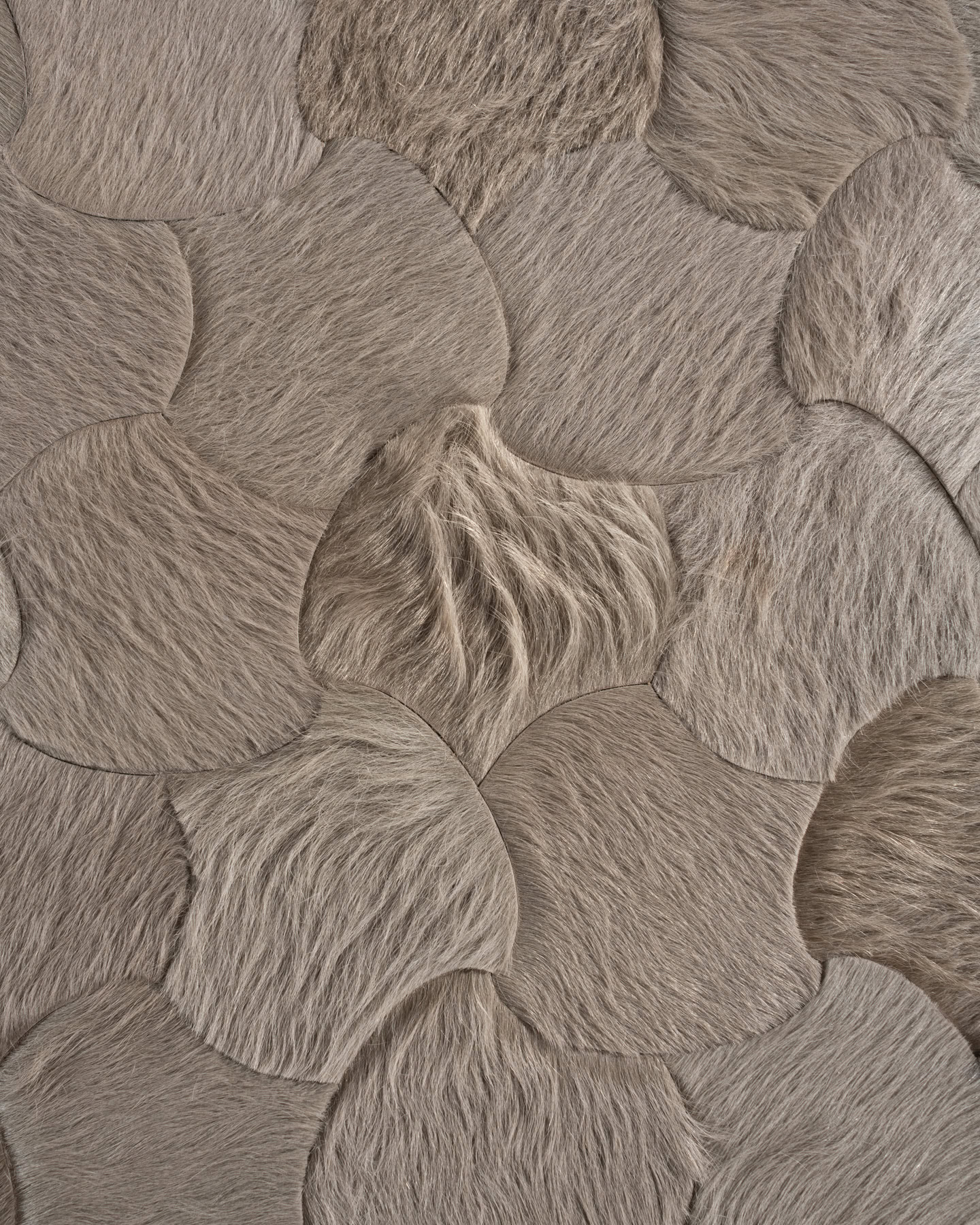 First imagined with designer Barry Dixon for the Greystone Mansion in Beverly Hills, Leigh is admired for is simplistic beauty. The adjoining forms were inspired by the playful geometry of a game of jacks. Frequently interpreted in a colorful palette, the numerous pieces of hide offer a wide range of play between texture and color.