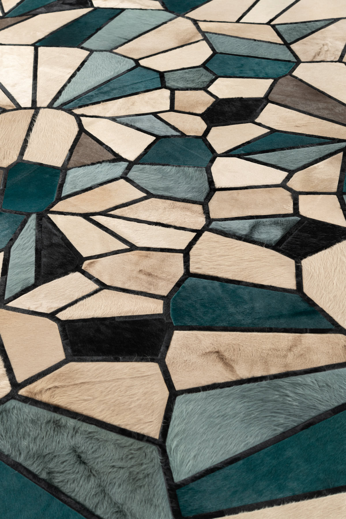 Lexar is as architectural as it is organic, the composition is meant to mimic the jagged shapes of stained glass or the detailed facets of rock crystal. The intricate pattern is a display of Kyle Bunting’s focus on meticulous craftsmanship.