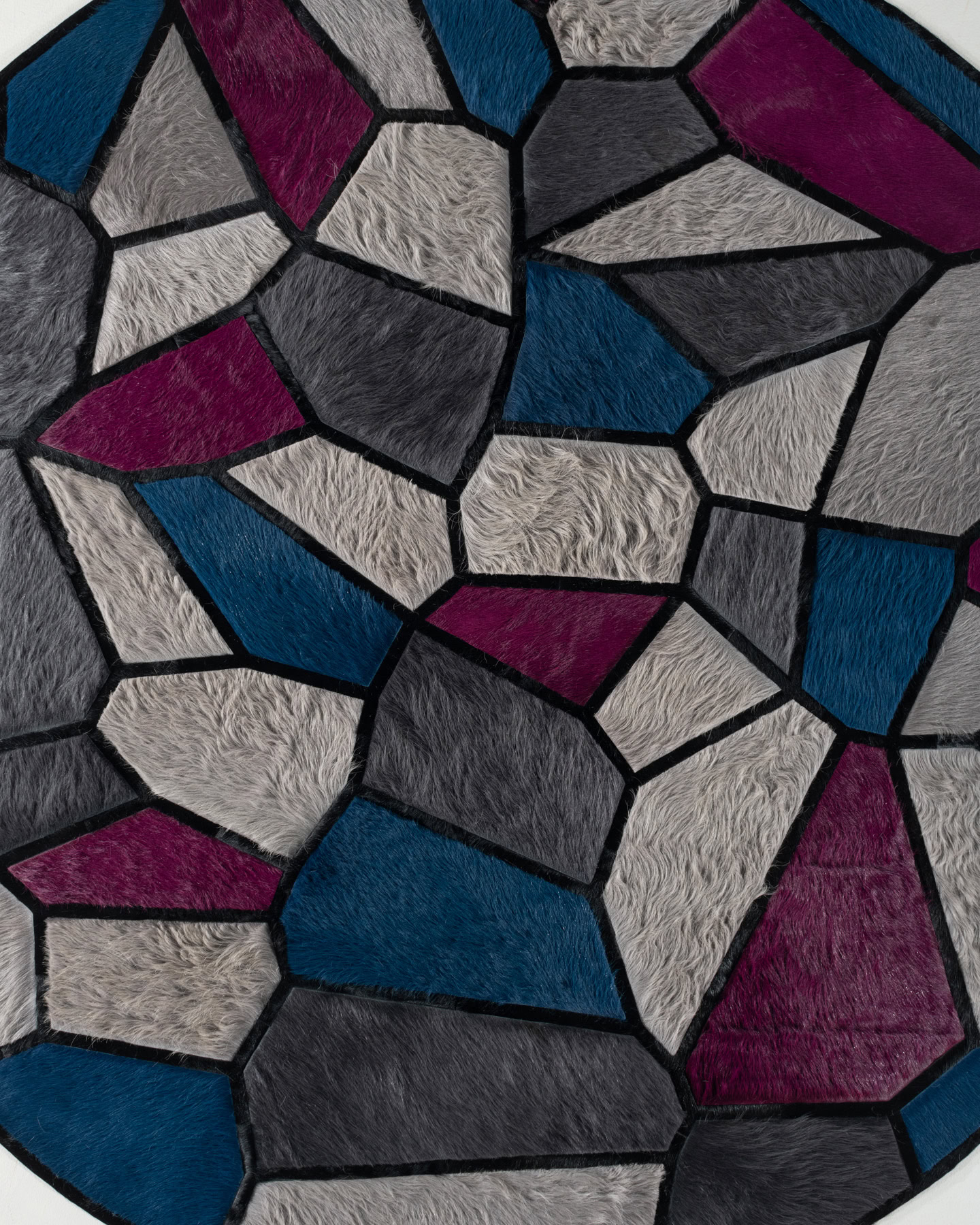 Lexar is as architectural as it is organic, the composition is meant to mimic the jagged shapes of stained glass or the detailed facets of rock crystal. The intricate pattern is a display of Kyle Bunting’s focus on meticulous craftsmanship.
