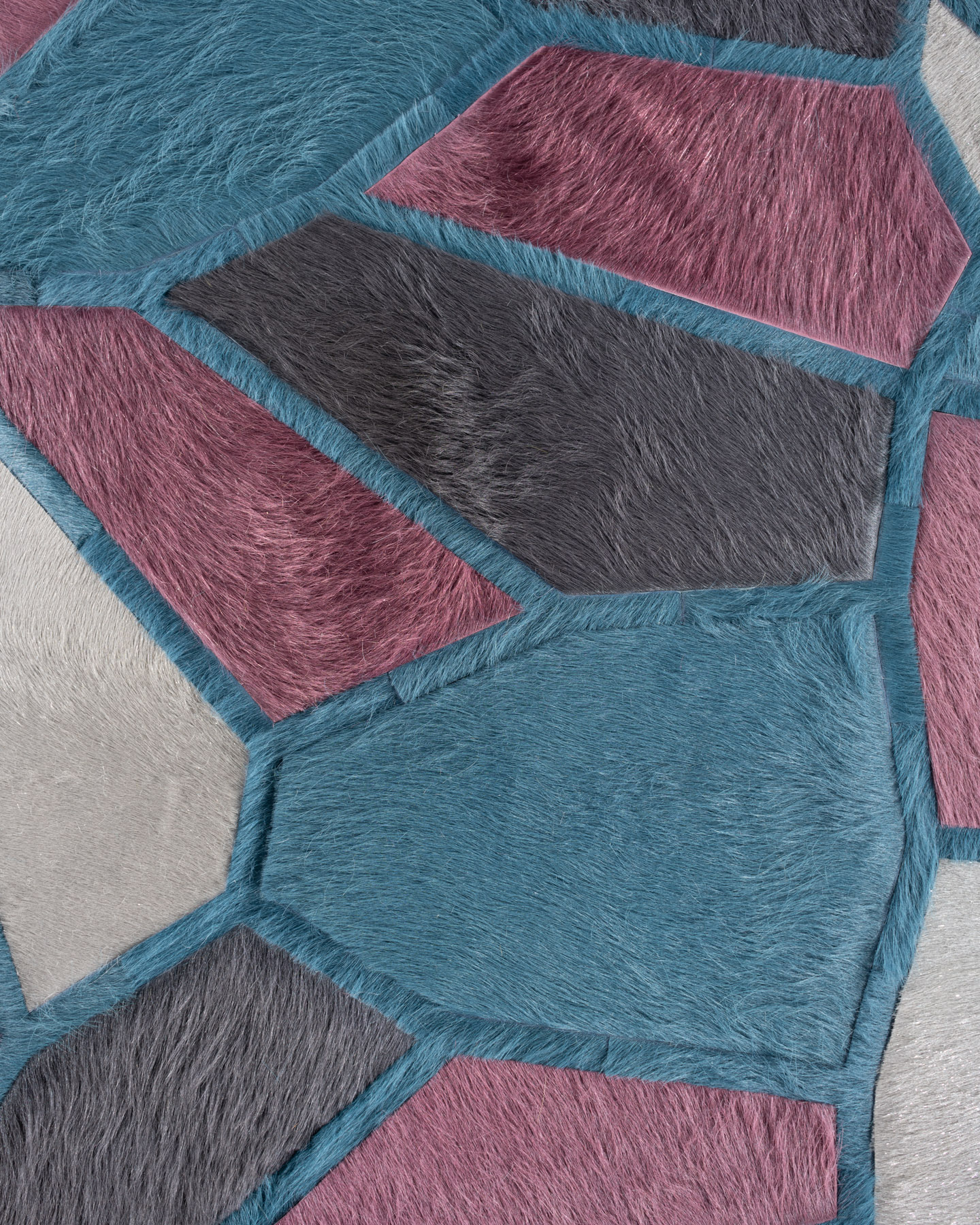 Lexar is as architectural as it is organic, the composition is meant to mimic the jagged shapes of stained glass or the detailed facets of rock crystal. The intricate pattern is a display of Kyle Bunting’s focus on meticulous craftsmanship.