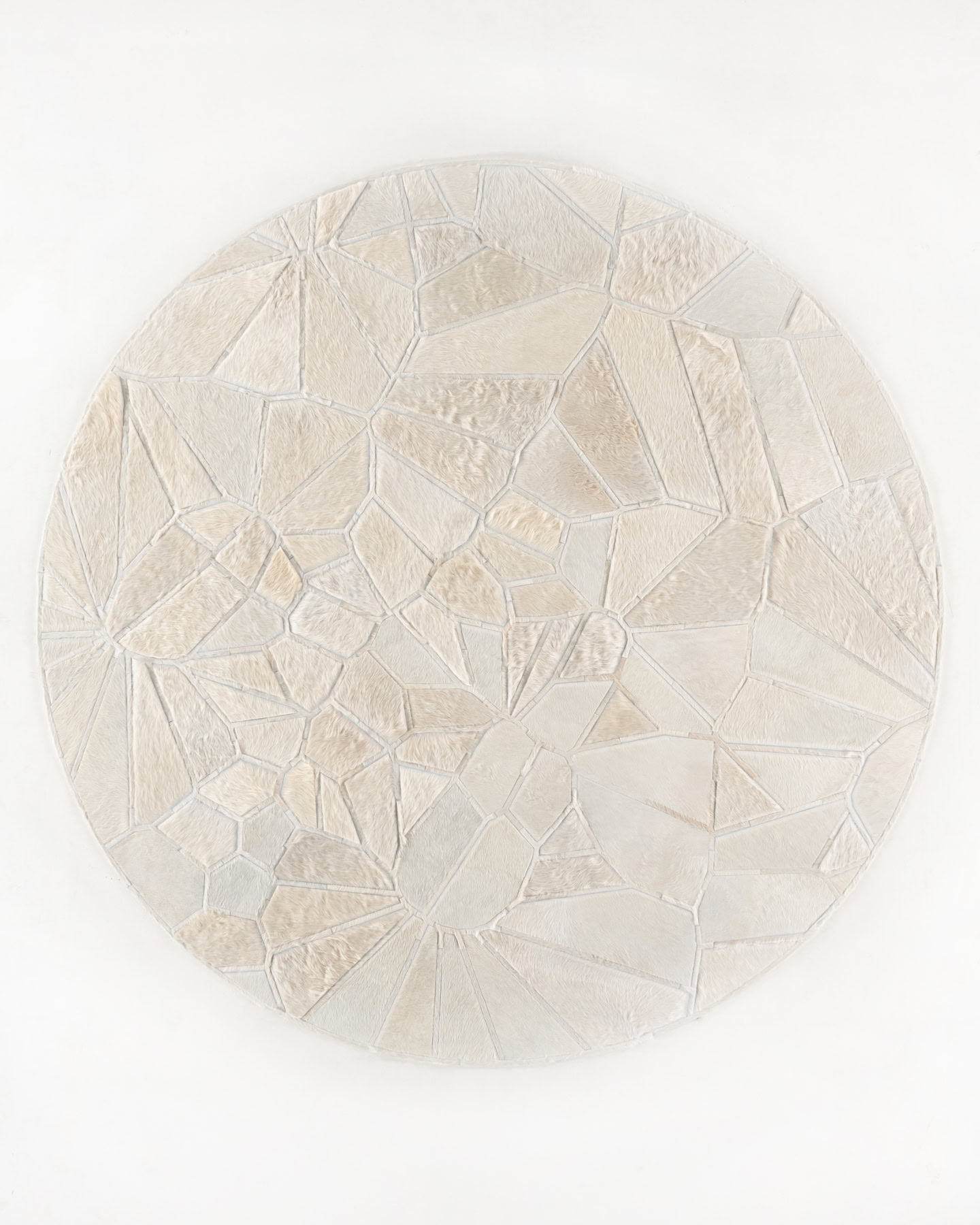 Lexar is as architectural as it is organic, the composition is meant to mimic the jagged shapes of stained glass or the detailed facets of rock crystal. The intricate pattern is a display of Kyle Bunting’s focus on meticulous craftsmanship.