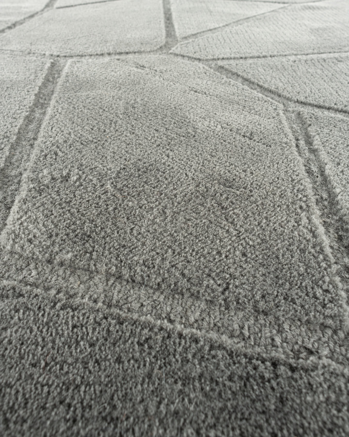 Lexar is as architectural as it is organic, the composition is meant to mimic the jagged shapes of stained glass or the detailed facets of rock crystal. The intricate pattern is a display of Kyle Bunting’s focus on meticulous craftsmanship.