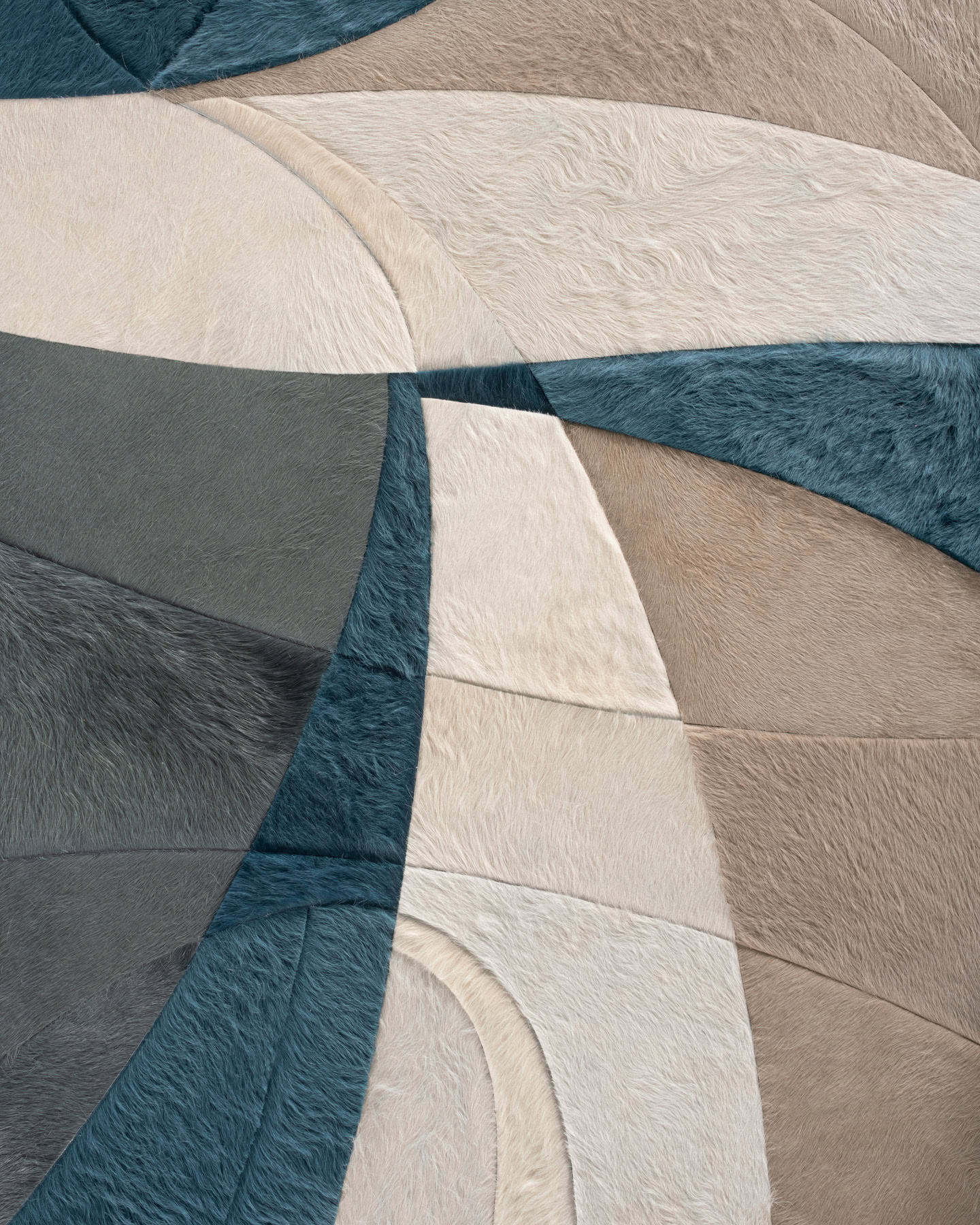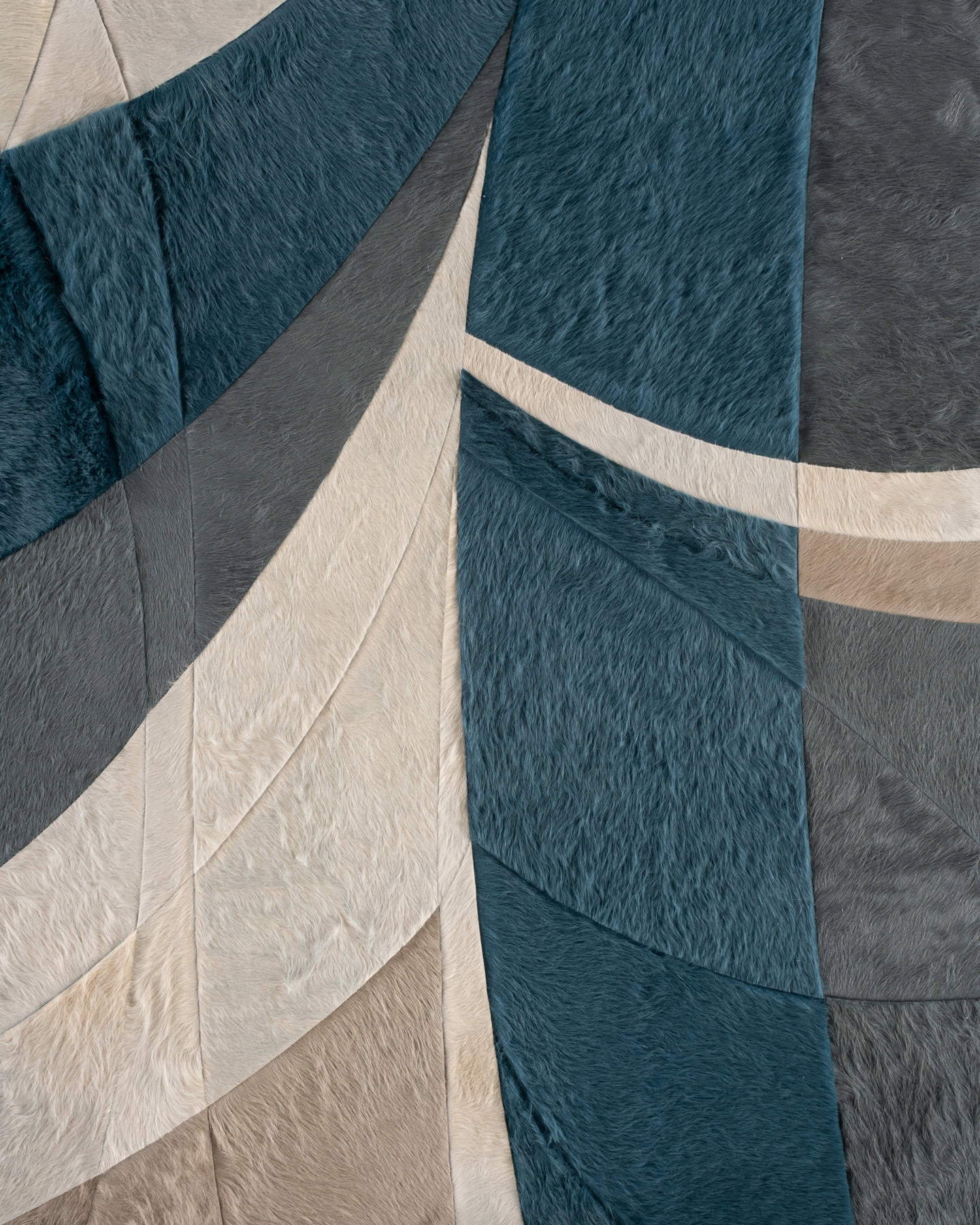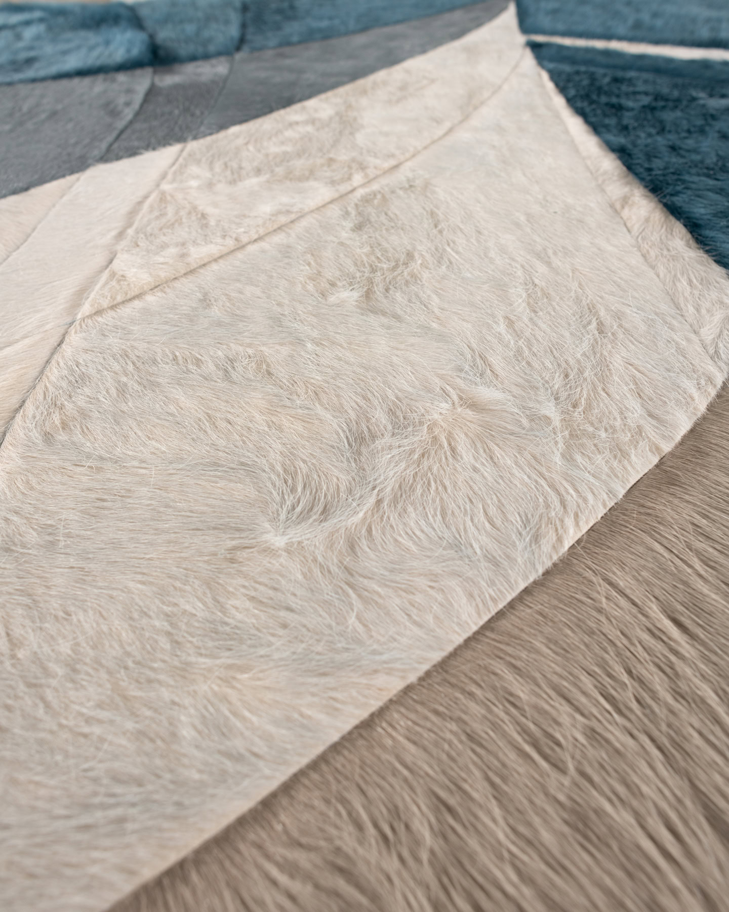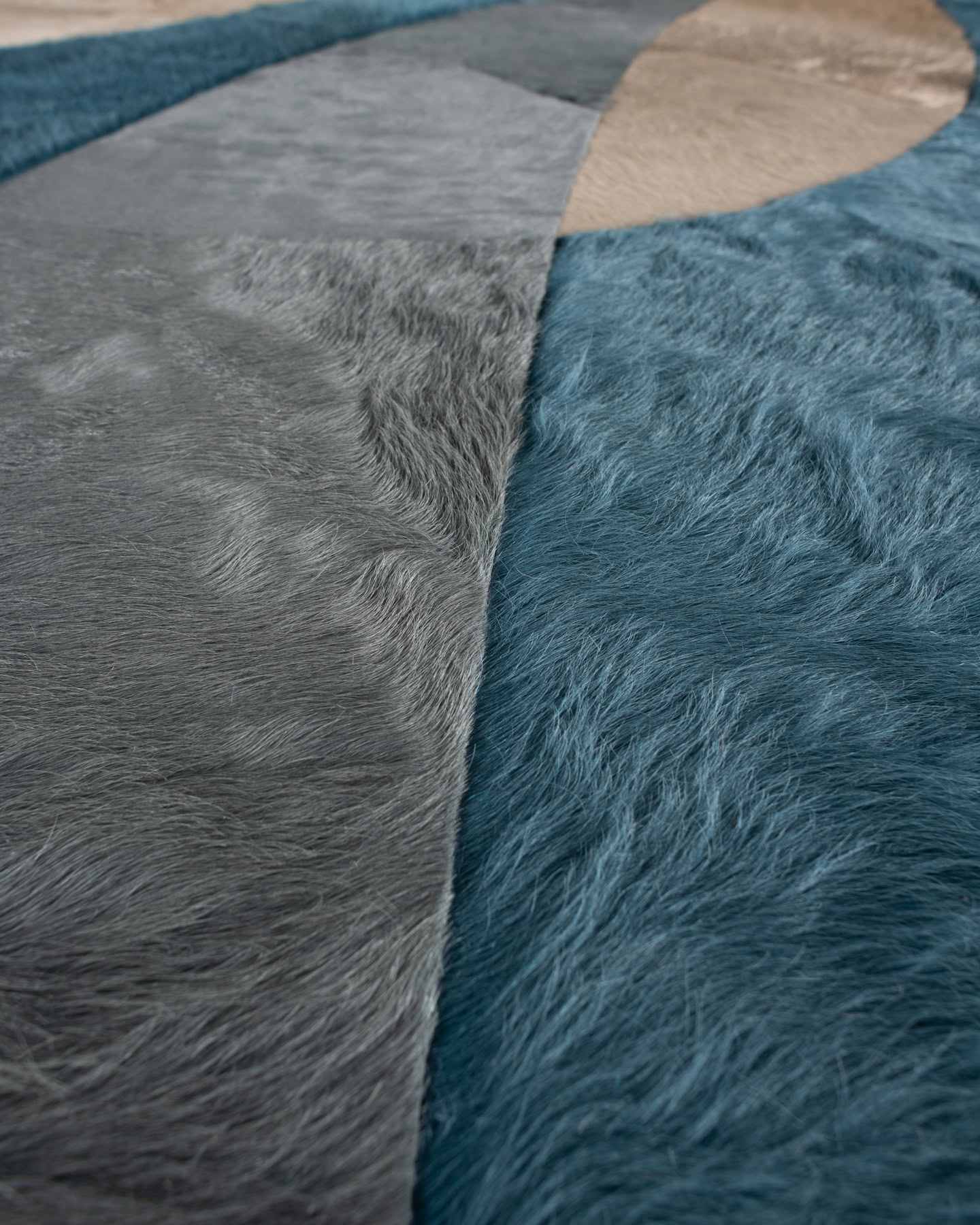 Popularly conceived as a round rug, Luna evokes the image of a craterous moon in the night sky. Large cuts of hide are carefully placed, creating the individually stylistic and organic shapes that give Luna balance and congruity.