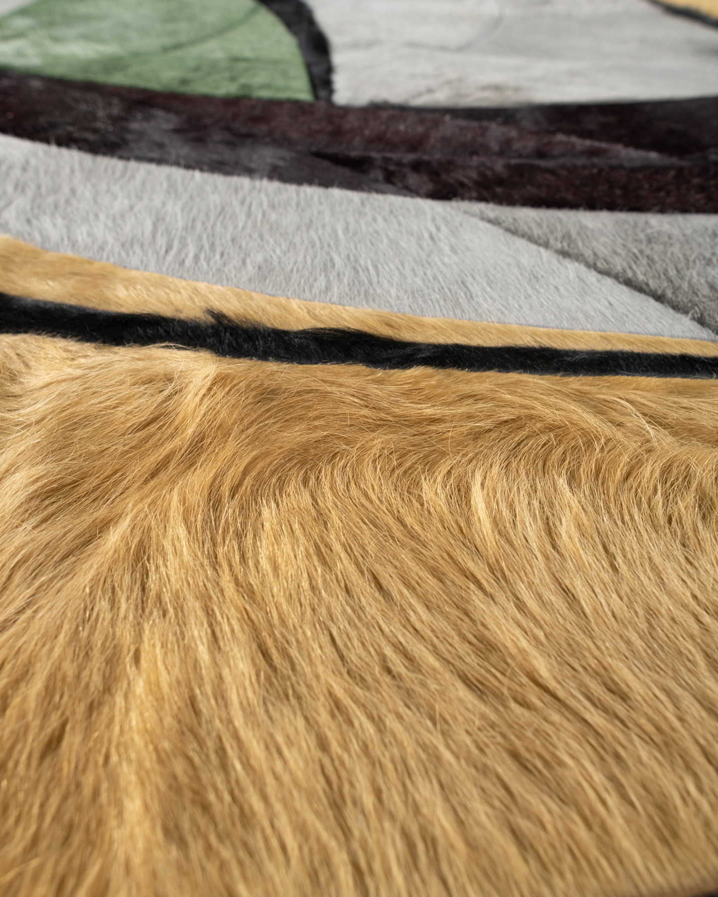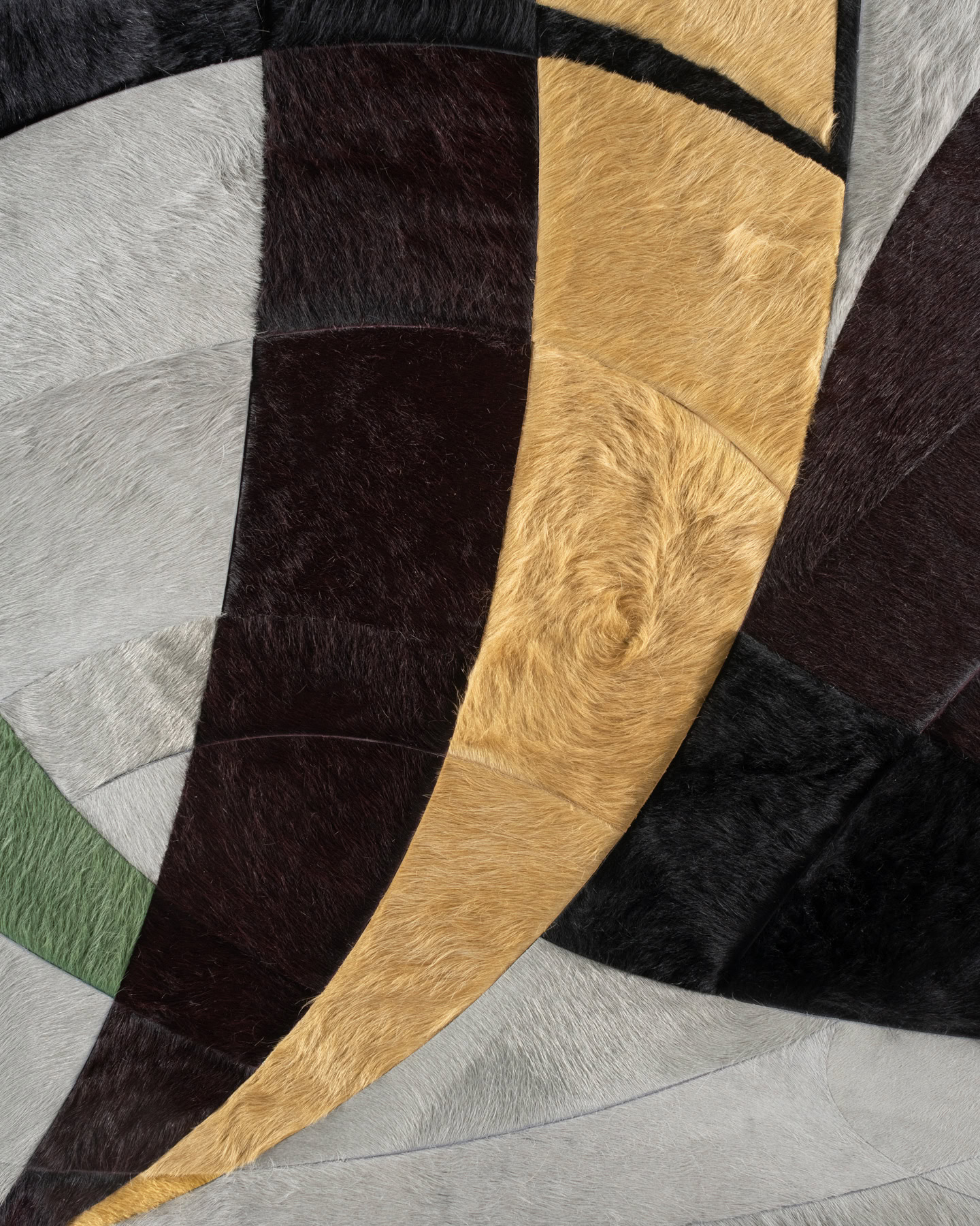 Popularly conceived as a round rug, Luna evokes the image of a craterous moon in the night sky. Large cuts of hide are carefully placed, creating the individually stylistic and organic shapes that give Luna balance and congruity.