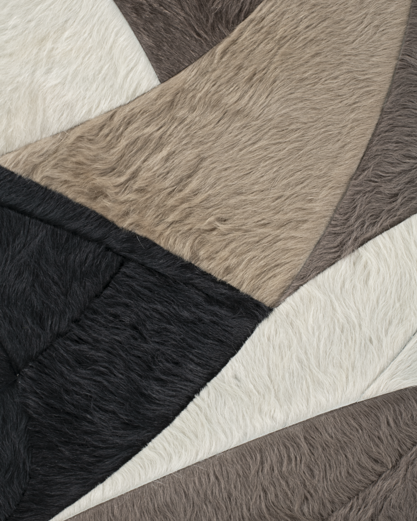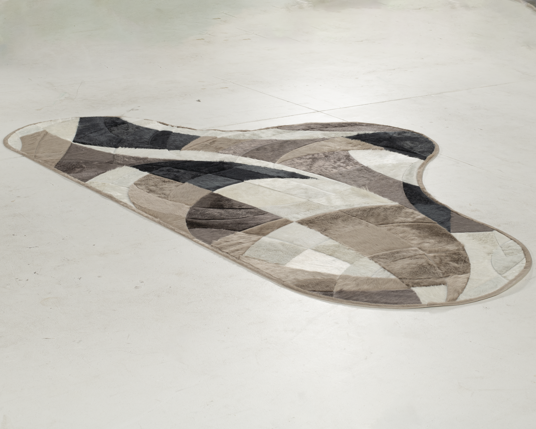 Popularly conceived as a round rug, Luna evokes the image of a craterous moon in the night sky. Large cuts of hide are carefully placed, creating the individually stylistic and organic shapes that give Luna balance and congruity.