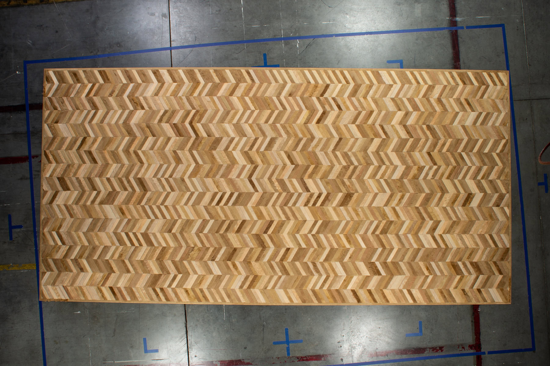 A tried-and-true chevron pattern, Mr Crowley is a sought after staple in Kyle Bunting’s repertoire. Designed in collaboration with John Opella, Mr Crowley has been actualized in multiple iterations and varying scales, most notably in multicolored versions.
