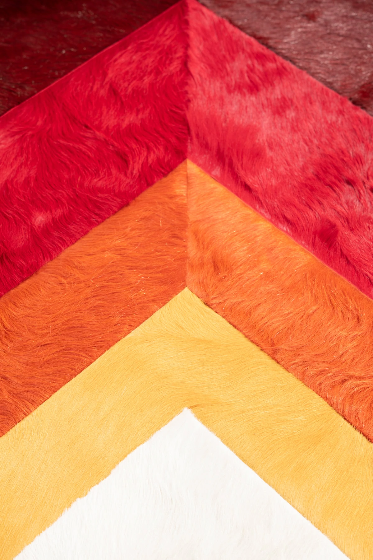 Influences from the mid-century Op Art movement can be experienced in Prisma, Kyle Bunting’s second collection with esteemed designer Amy Lau. Variations of compositional scheme and palette alter perceptions of depth, direction, and mood, creating unique moments based on placement and hue.