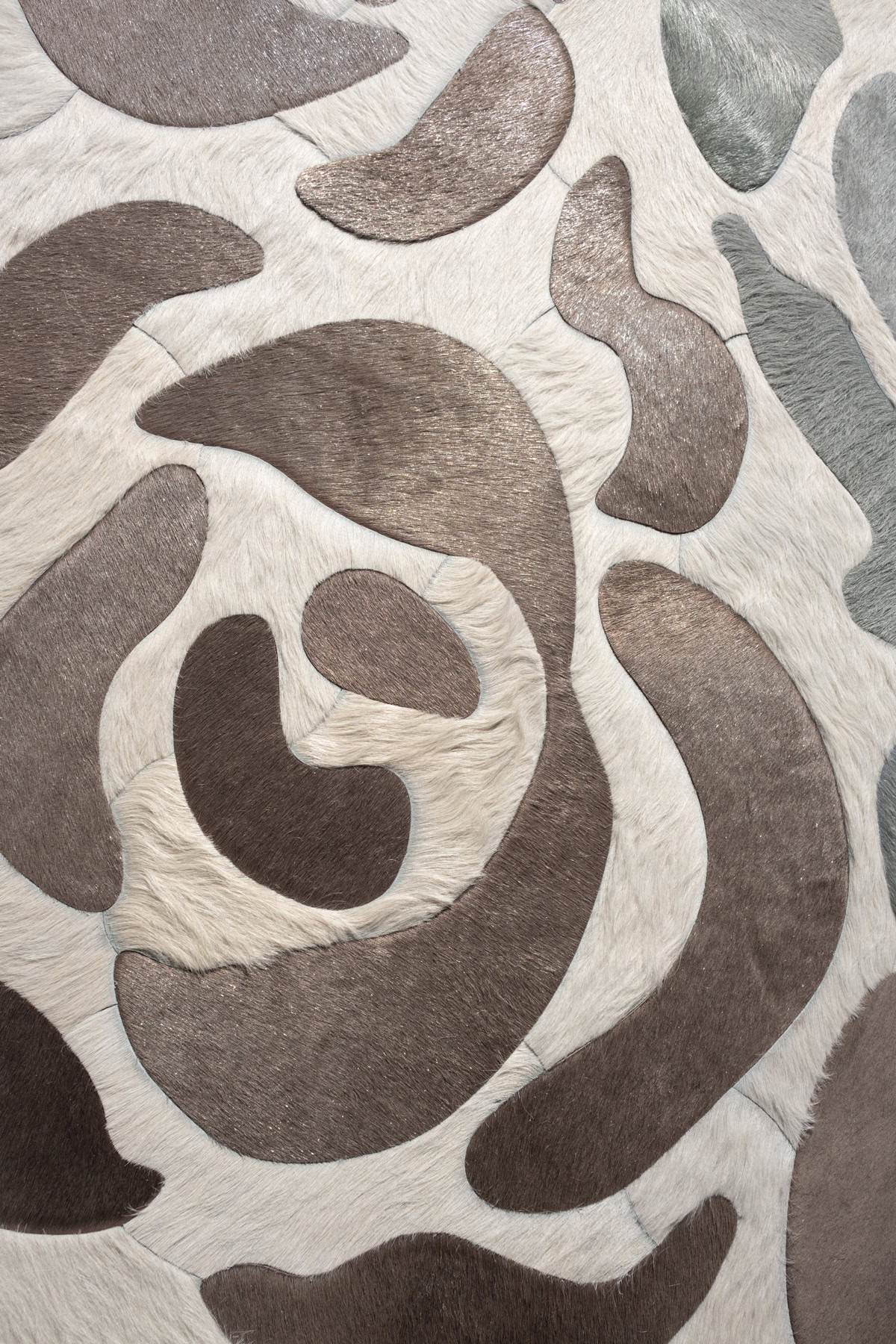 Developed with designer Christopher Guy, Procession is characterized by large imagery of abstract flora. The delicate shapes consist of six standard flowers formed by curved pieces of hide and repeated throughout the design.