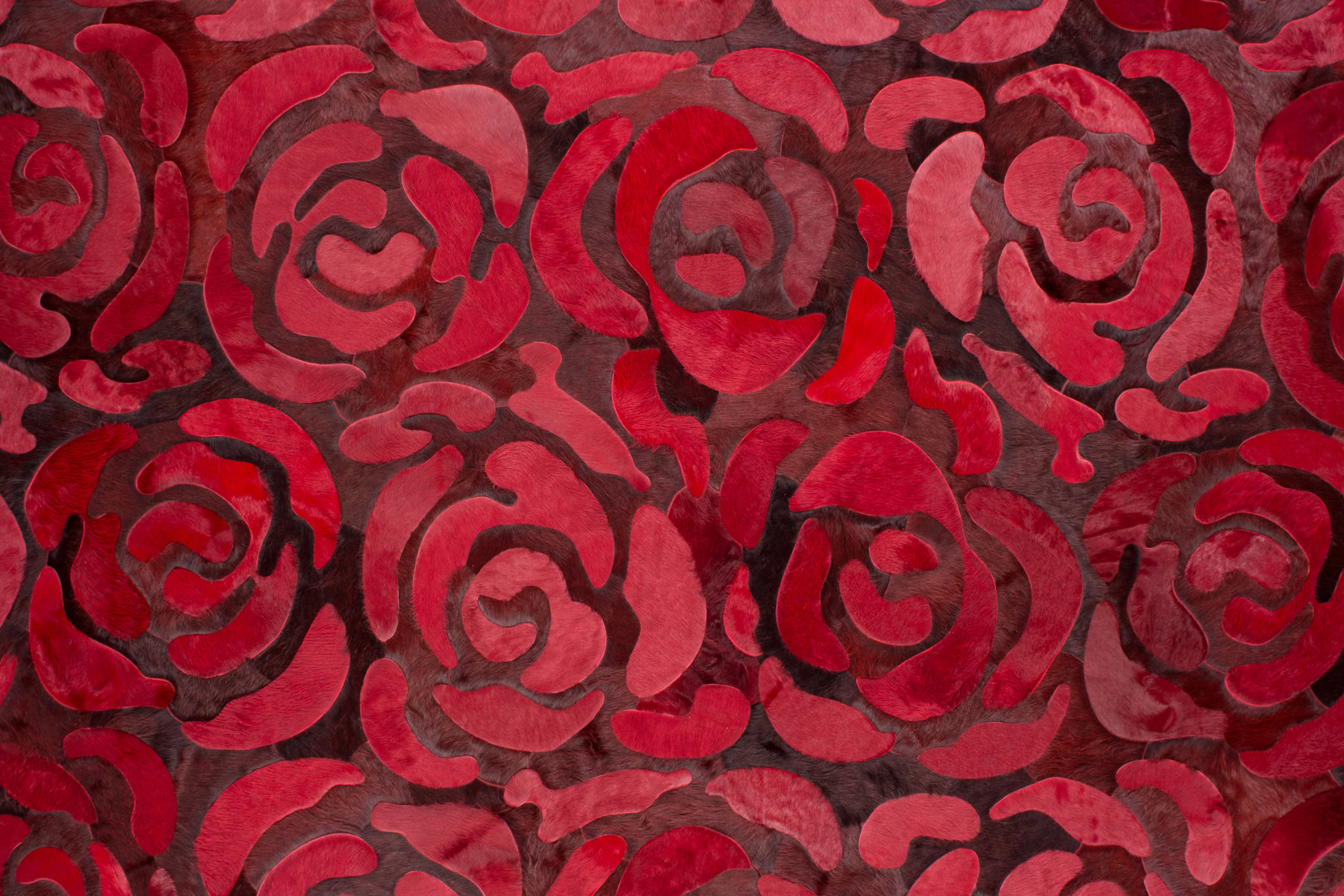 Developed with designer Christopher Guy, Procession is characterized by large imagery of abstract flora. The delicate shapes consist of six standard flowers formed by curved pieces of hide and repeated throughout the design.