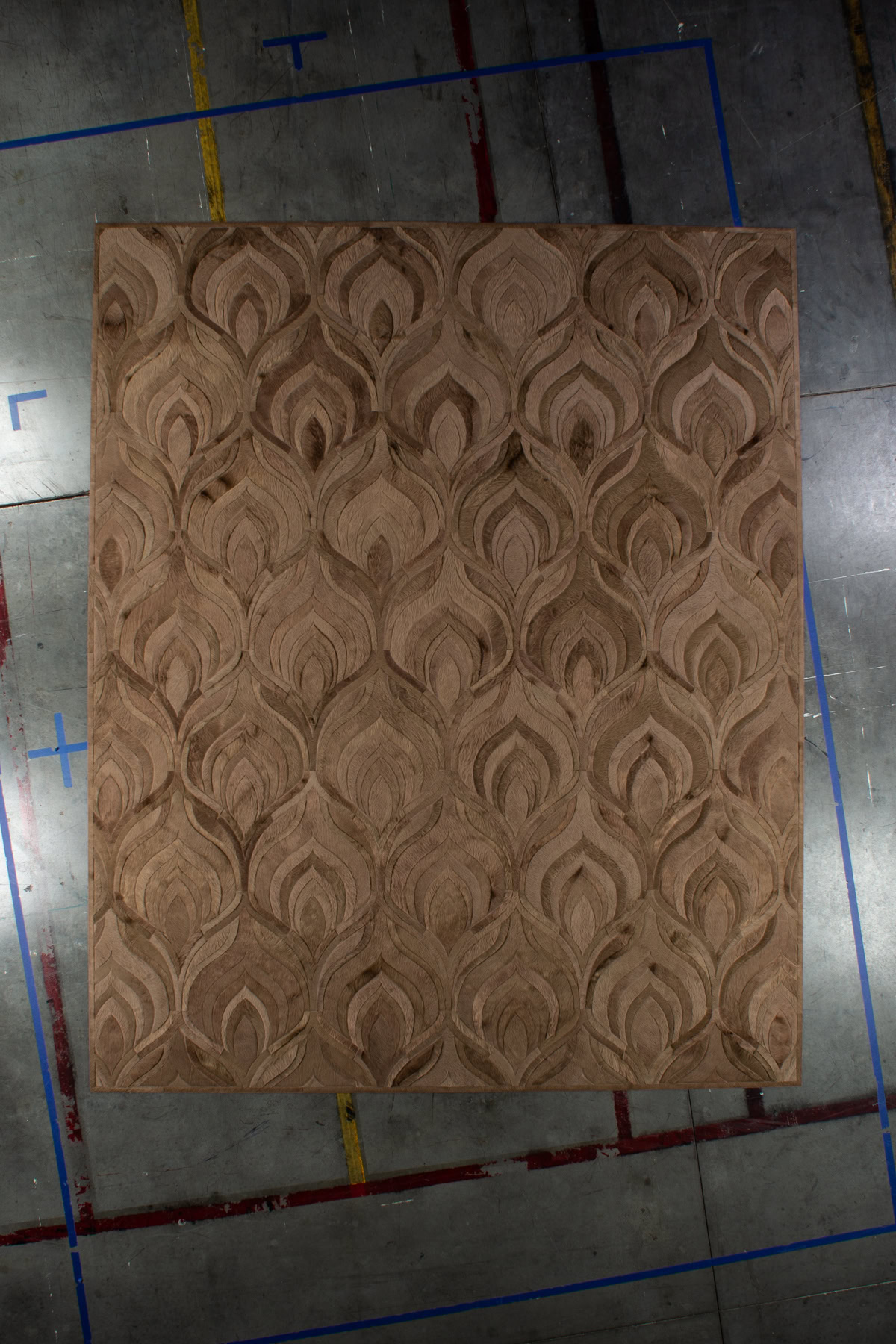 The delicate, arched lines of Quill come together to create a truly impactful composition. The design calls to mind the plumage of a Peacock, or a Medieval writing utensil hovering over parchment, awaiting the eloquent movements of a scribe’s hand.