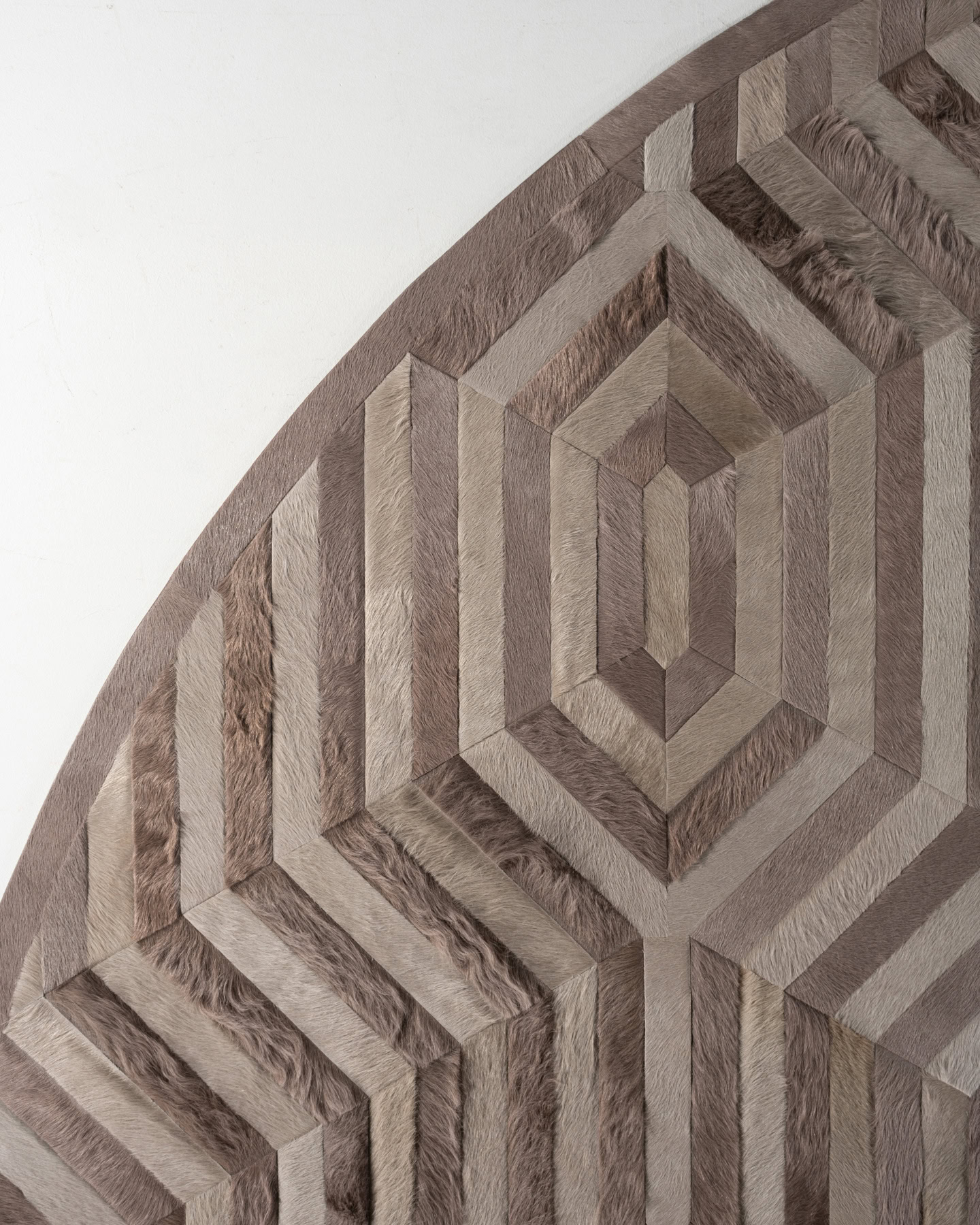 This stylistically mid-century pattern is characterized by a large-scale repeat of linear forms that radiate from the design’s center. Rebel is created as a complement to Repetition and Ricochet.