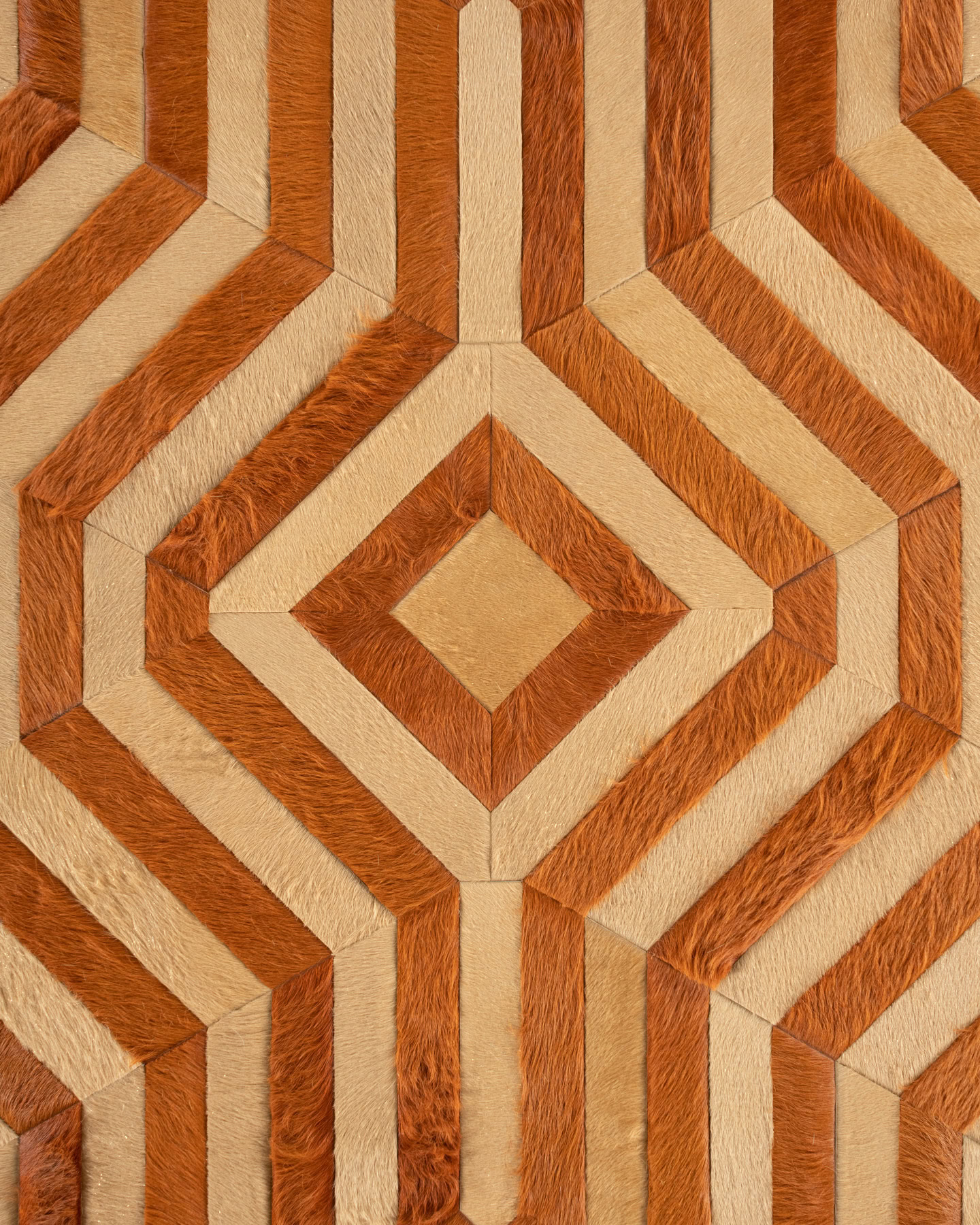 Repetition, new to Kyle Bunting’s design portfolio, flatters itself through a clean, geometric pattern repeat of concise, linear forms. A rectangle rests at the design’s core, from which the pattern radiates.