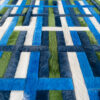 Rift, originally created as an art piece to fête Austin’s Umlauf Sculpture Garden & Museum, is a dynamic take on a traditional basketweave. Varying sized strips of hide come together at right angles to create a detailed weave.