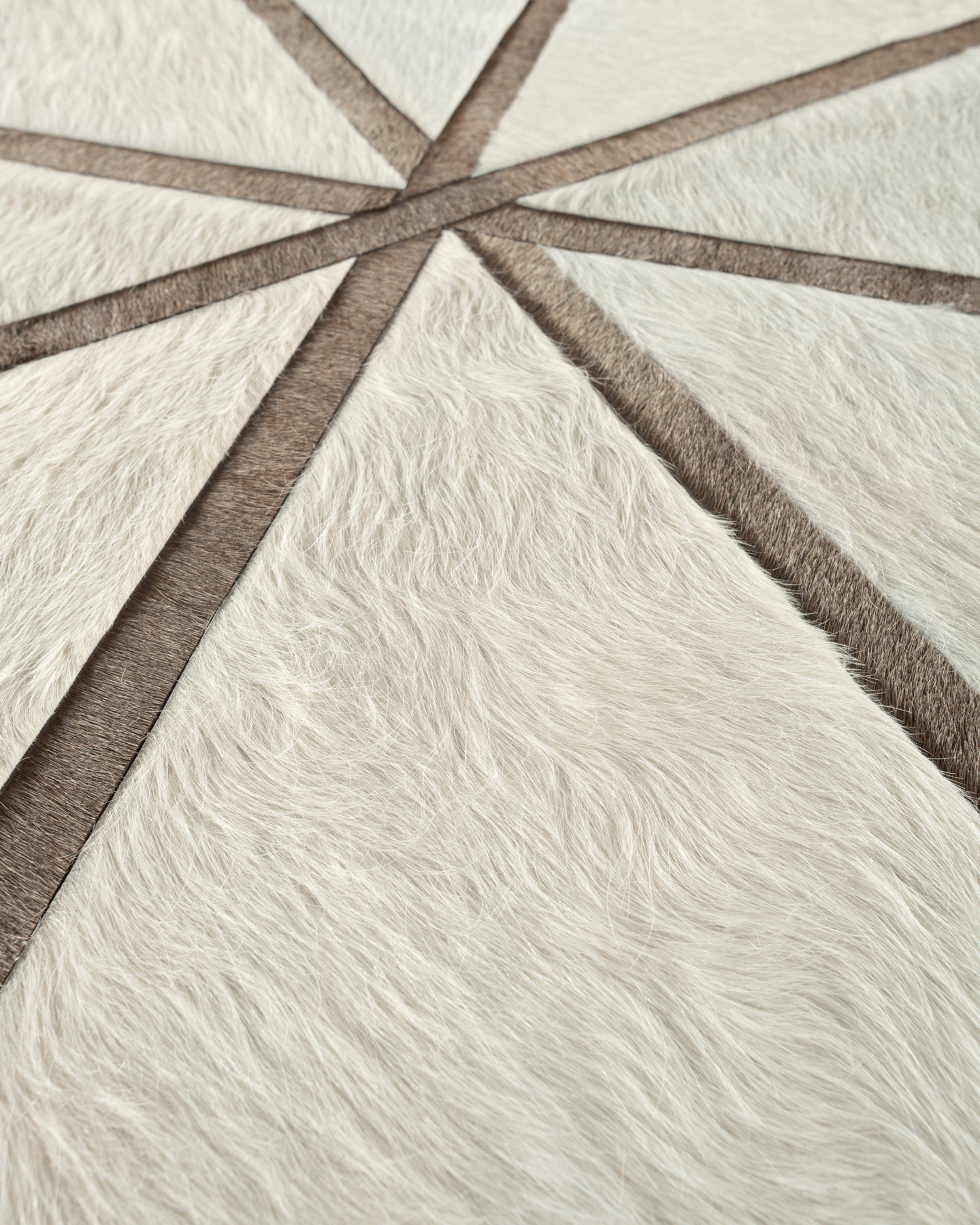 Reminiscent of a chic game of Pick-Up Sticks, Runway is noted for its sharp lines, made from 1” strips of hide, that seem to slice through the background of the design. First introduced for in 2010 with Gump’s in San Francisco, Runway is a popular pattern which looks dynamic with either monochromatic or contrasting color placement.