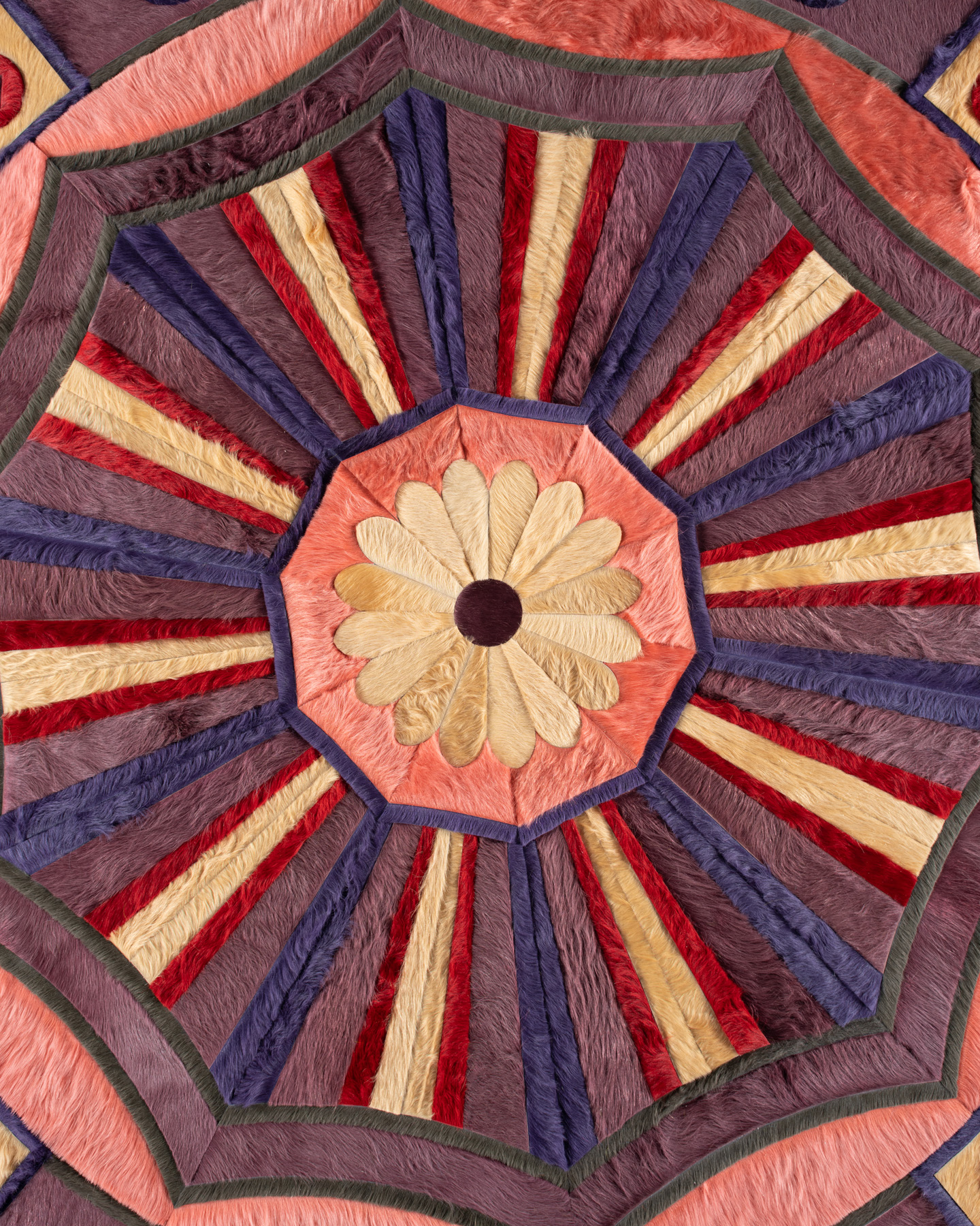 French King Louis XIV created the Savonnerie rug workshop in Paris to create rich, intricately shaded rugs that would rival the finest rugs being made anywhere in the world. The shading of the central motif reflects that attention to detail with a modern twist.