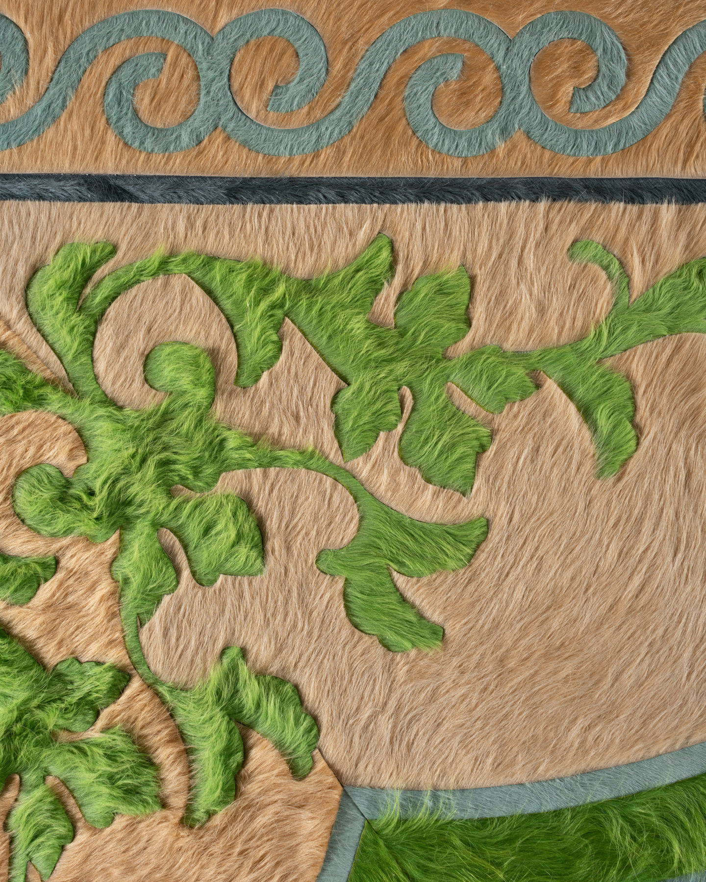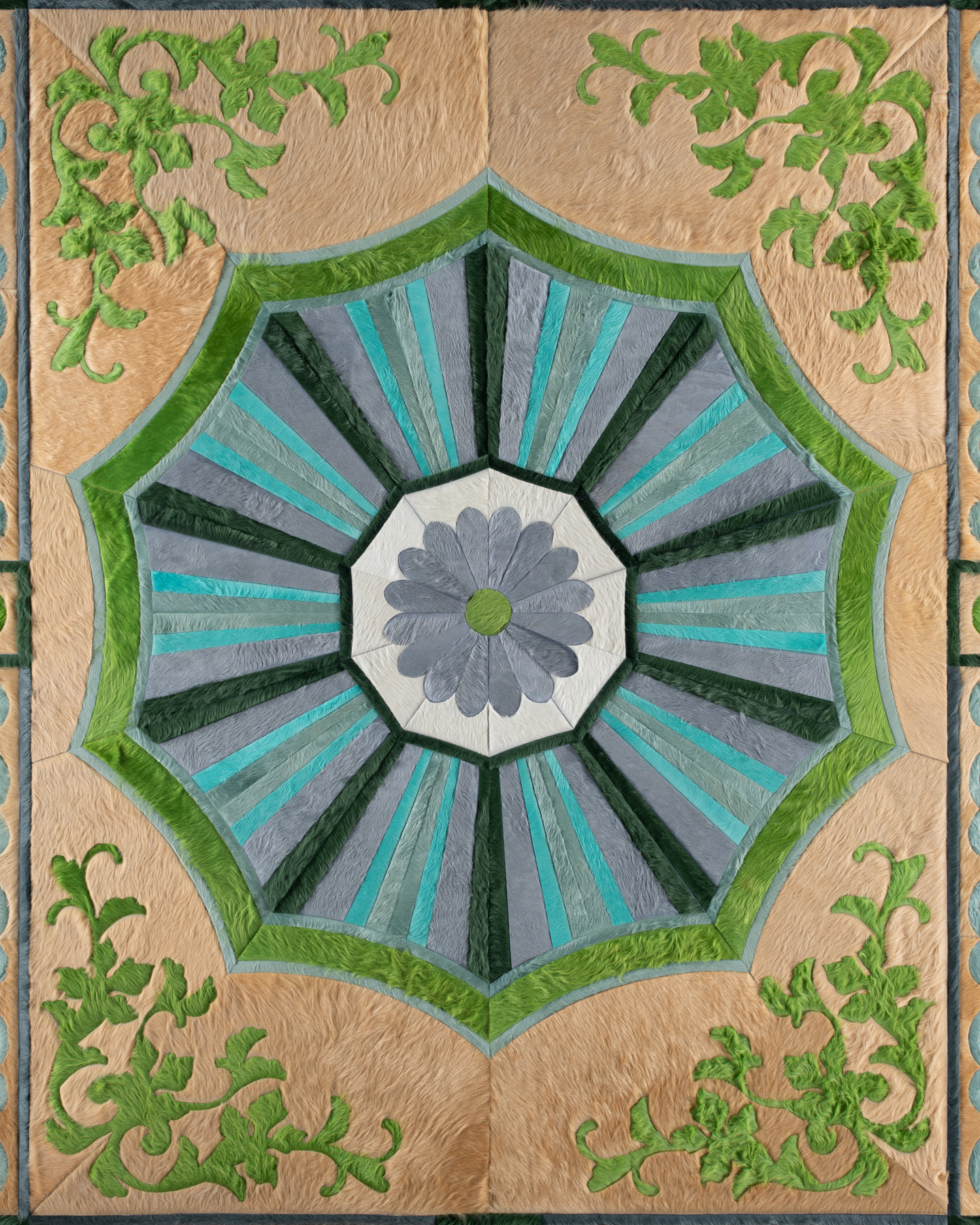French King Louis XIV created the Savonnerie rug workshop in Paris to create rich, intricately shaded rugs that would rival the finest rugs being made anywhere in the world. The shading of the central motif reflects that attention to detail with a modern twist.