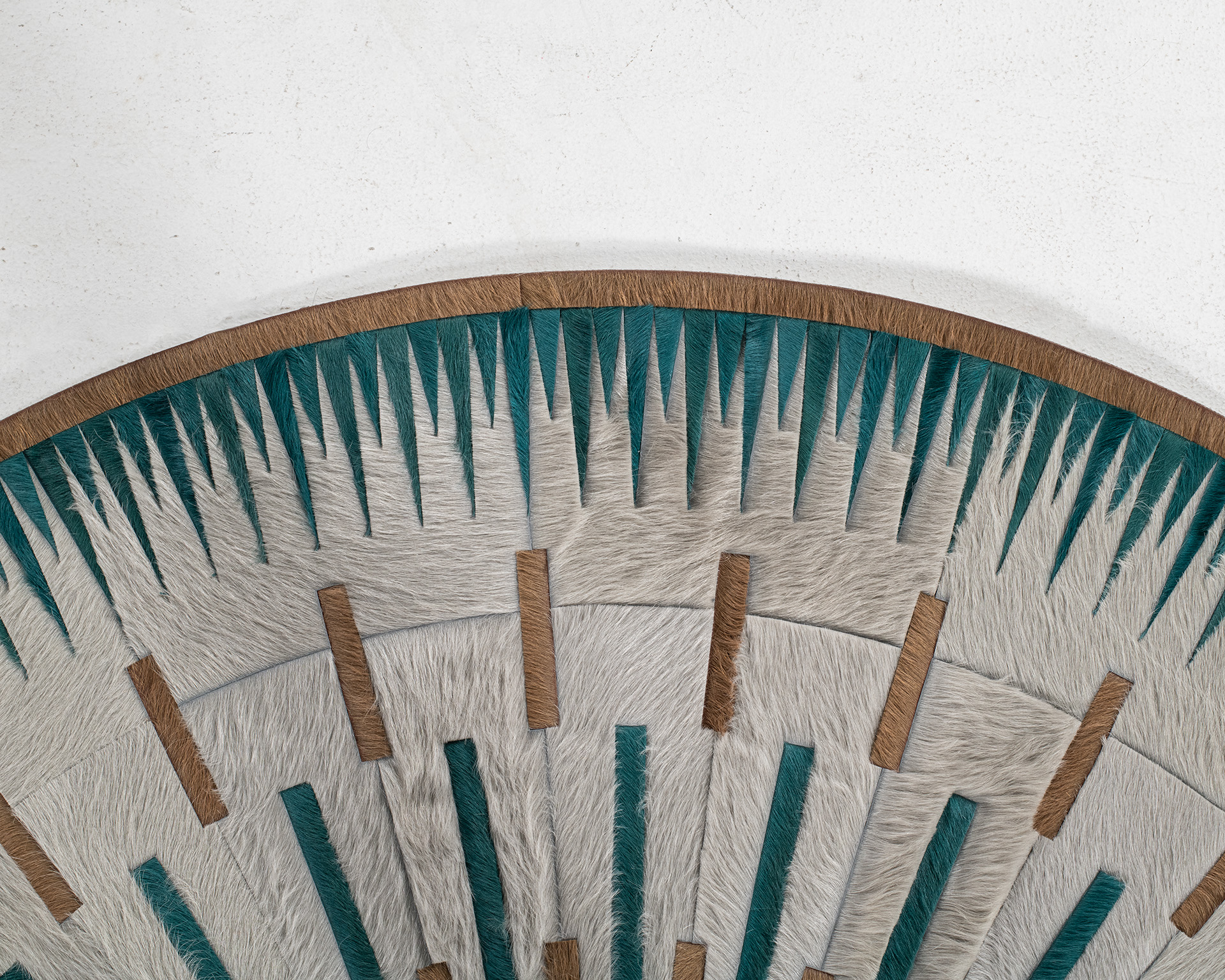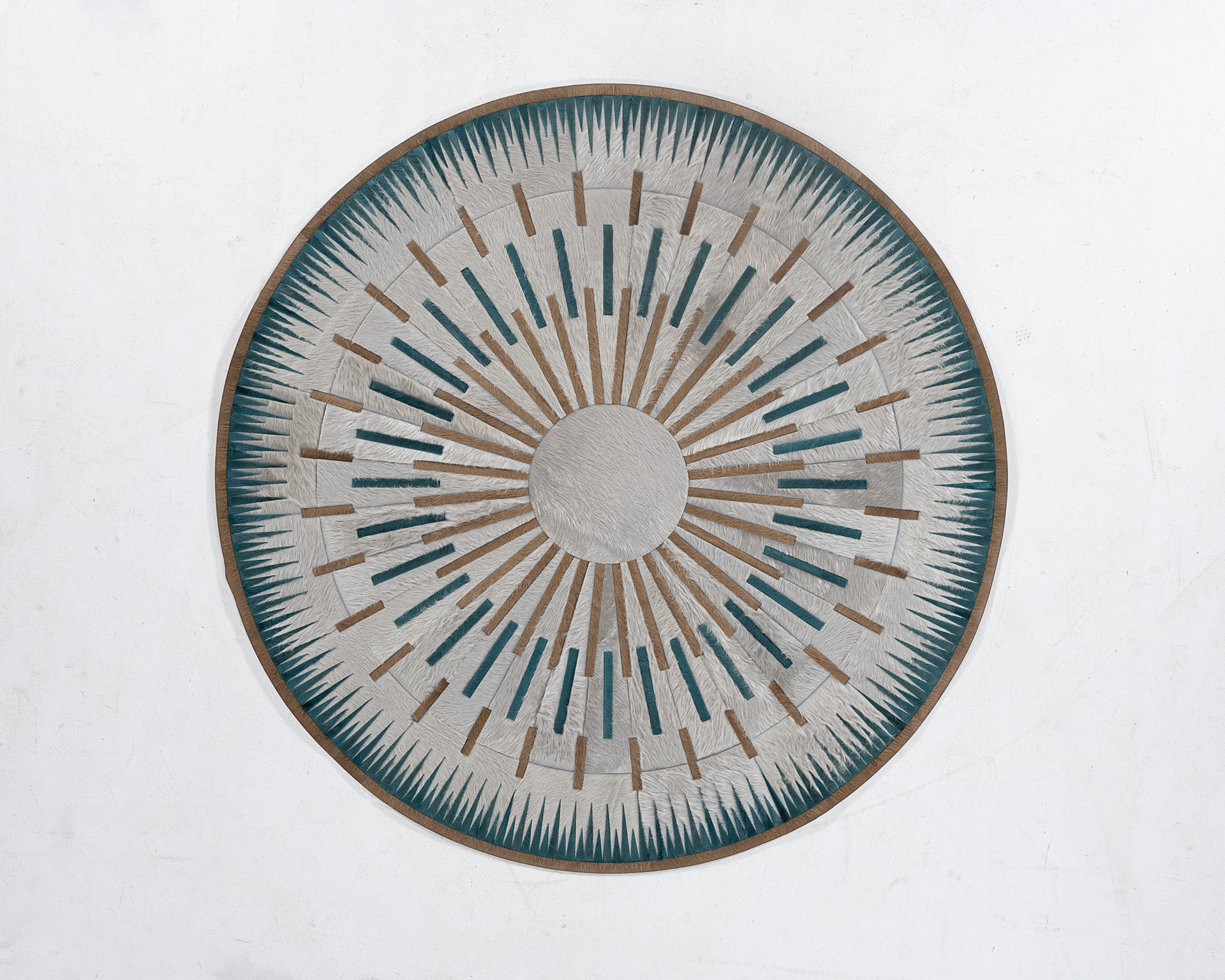 Shadowplay takes inspiration directly from an inlaid marble floor design created in the 1940s. Its circular composition calls to mind imagery of a timepiece as it provides an aesthetically pleasing focal point at the rug’s center.
