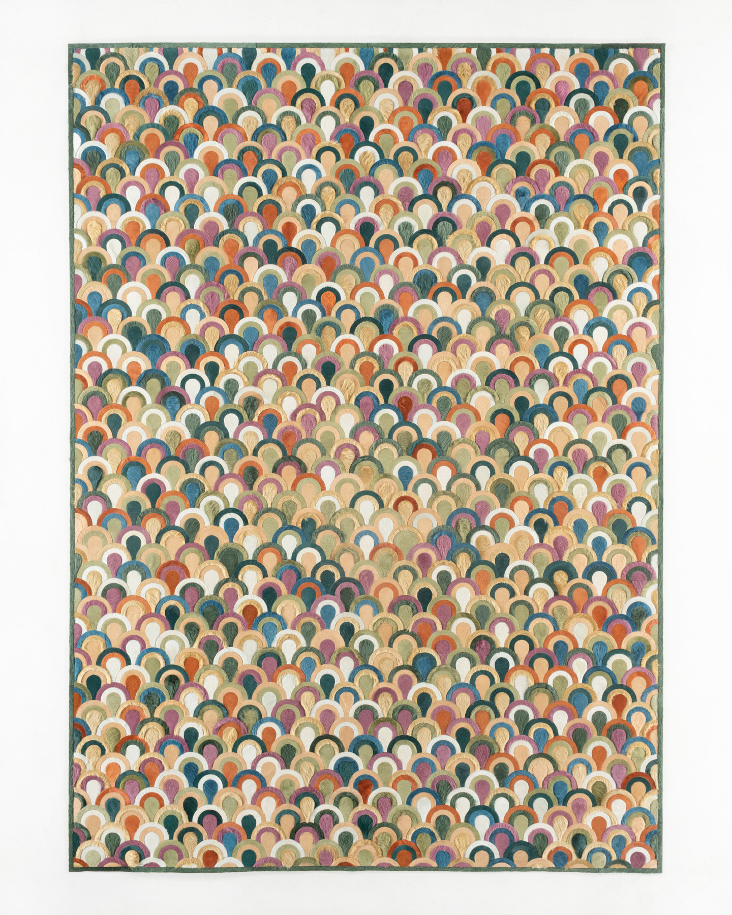 Originally developed as an art piece by designer John Opella, Shift has become a Kyle Bunting standard. Shift takes on an air of whimsy when actualized in a colorful palette.