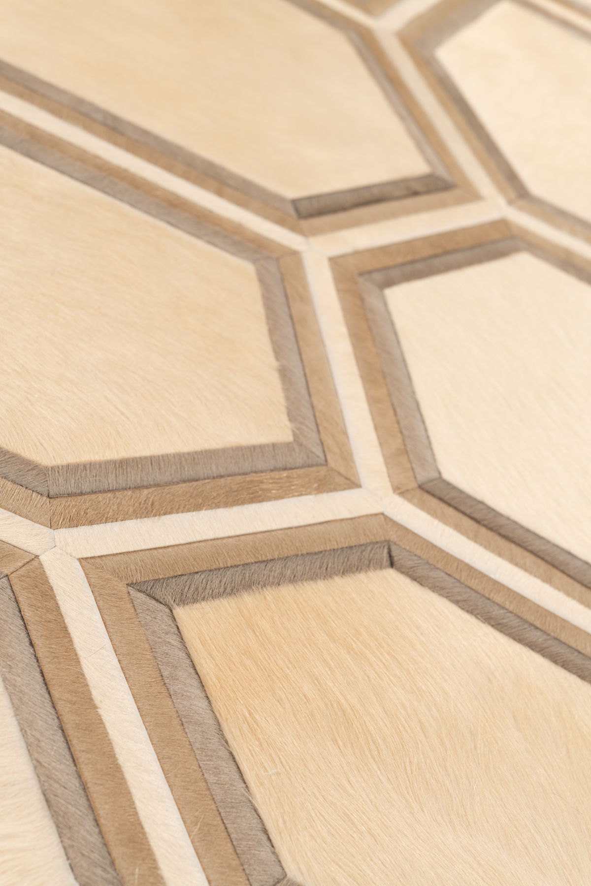 Evoking images of a honeycomb, Stack sprung from two Kyle Bunting favorites, Lexar and Moonglow. Both delicate and architectural, the composition’s versatility is found in the layers of thin banding around the hexagonal shapes.