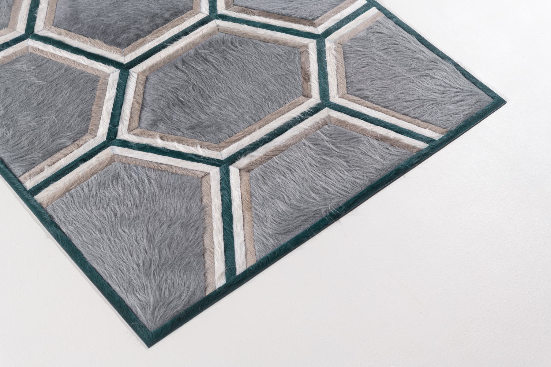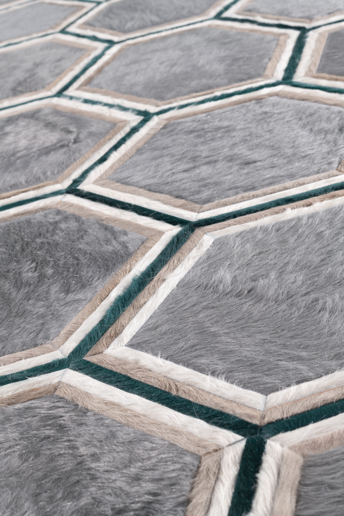 Evoking images of a honeycomb, Stack sprung from two Kyle Bunting favorites, Lexar and Moonglow. Both delicate and architectural, the composition’s versatility is found in the layers of thin banding around the hexagonal shapes.