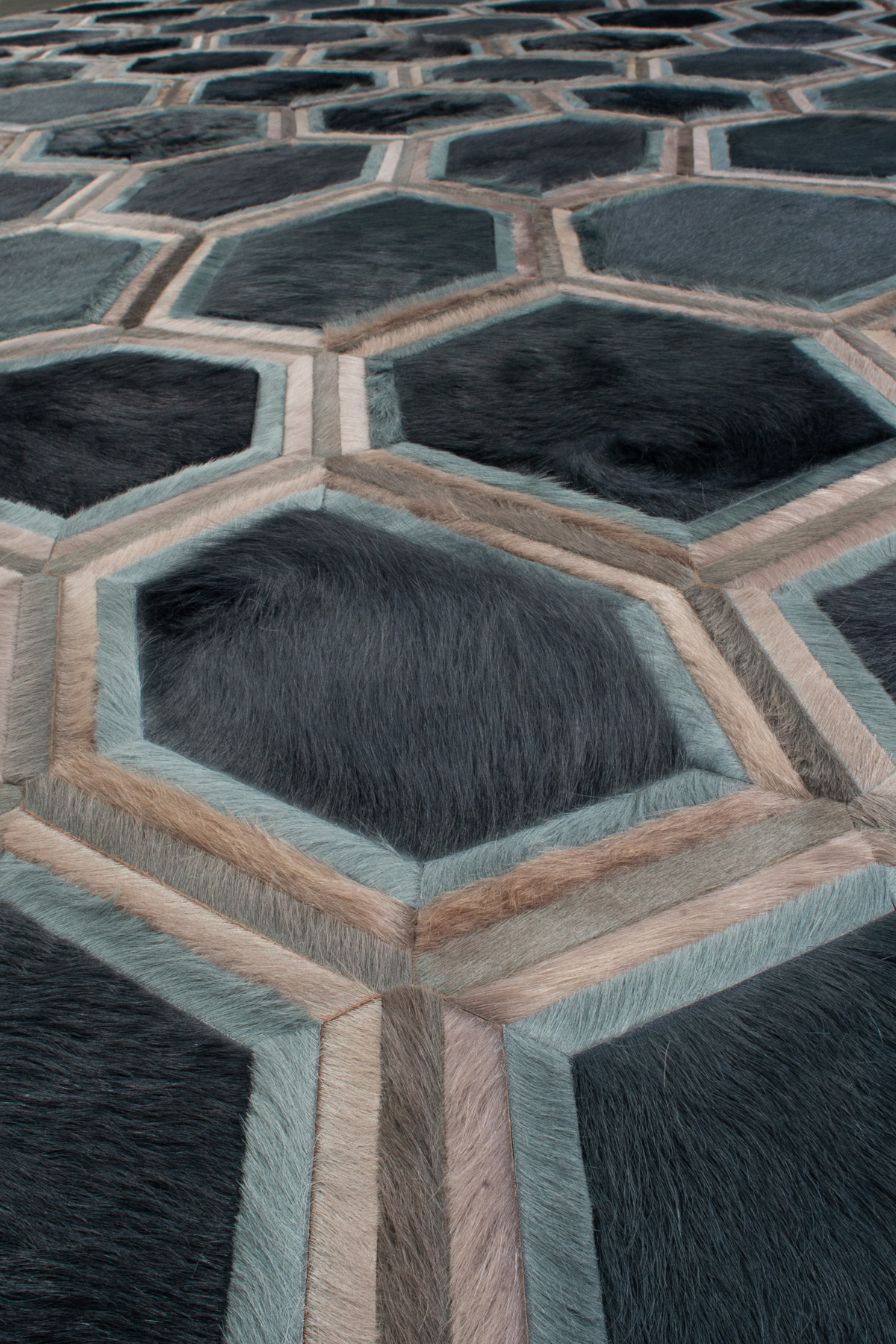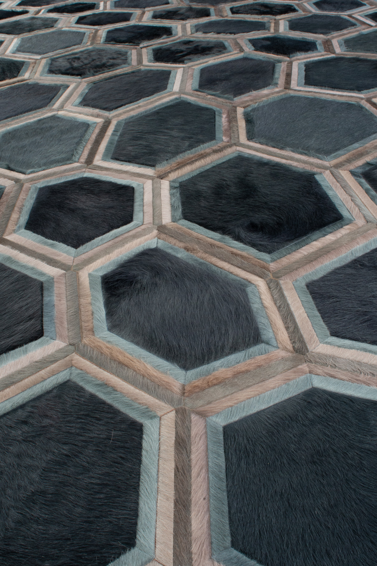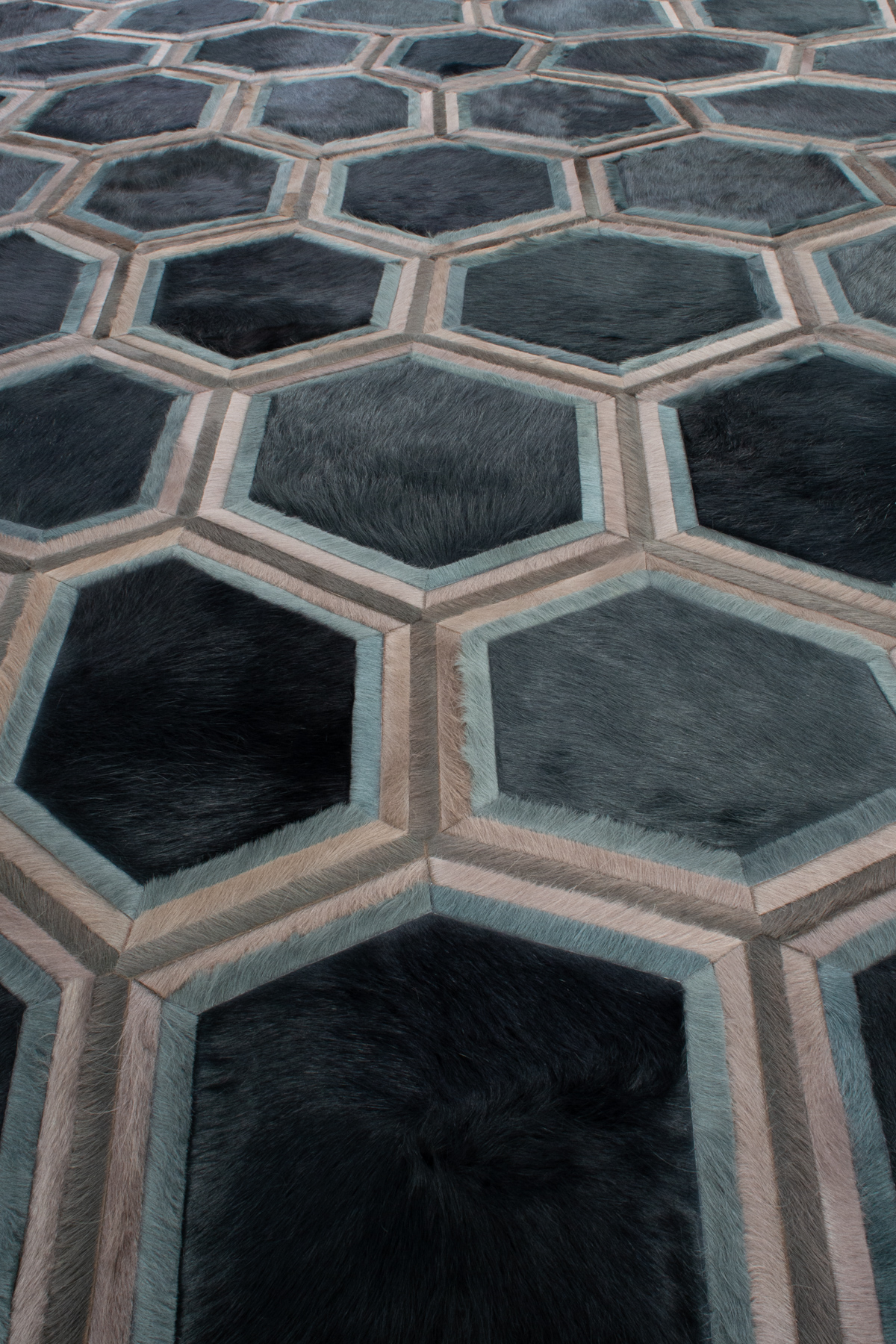 Evoking images of a honeycomb, Stack sprung from two Kyle Bunting favorites, Lexar and Moonglow. Both delicate and architectural, the composition’s versatility is found in the layers of thin banding around the hexagonal shapes.