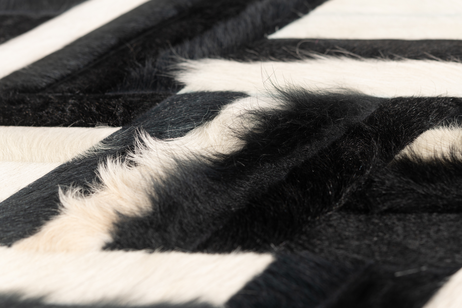 Composed of long, fluid bands of hide, Swell alludes to the movement of waves in the ocean. This water-like design is created with contrasting 1” ripples that give the organic pattern an air of contemporary stylization.