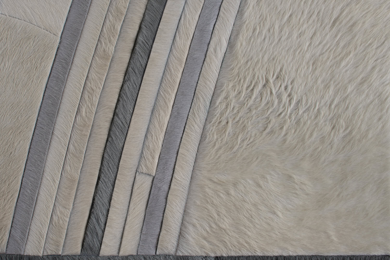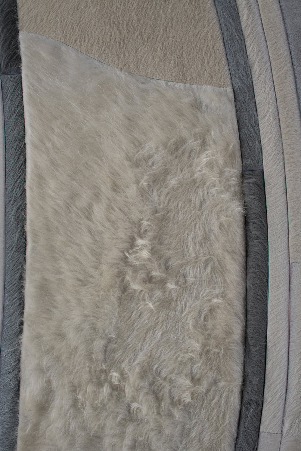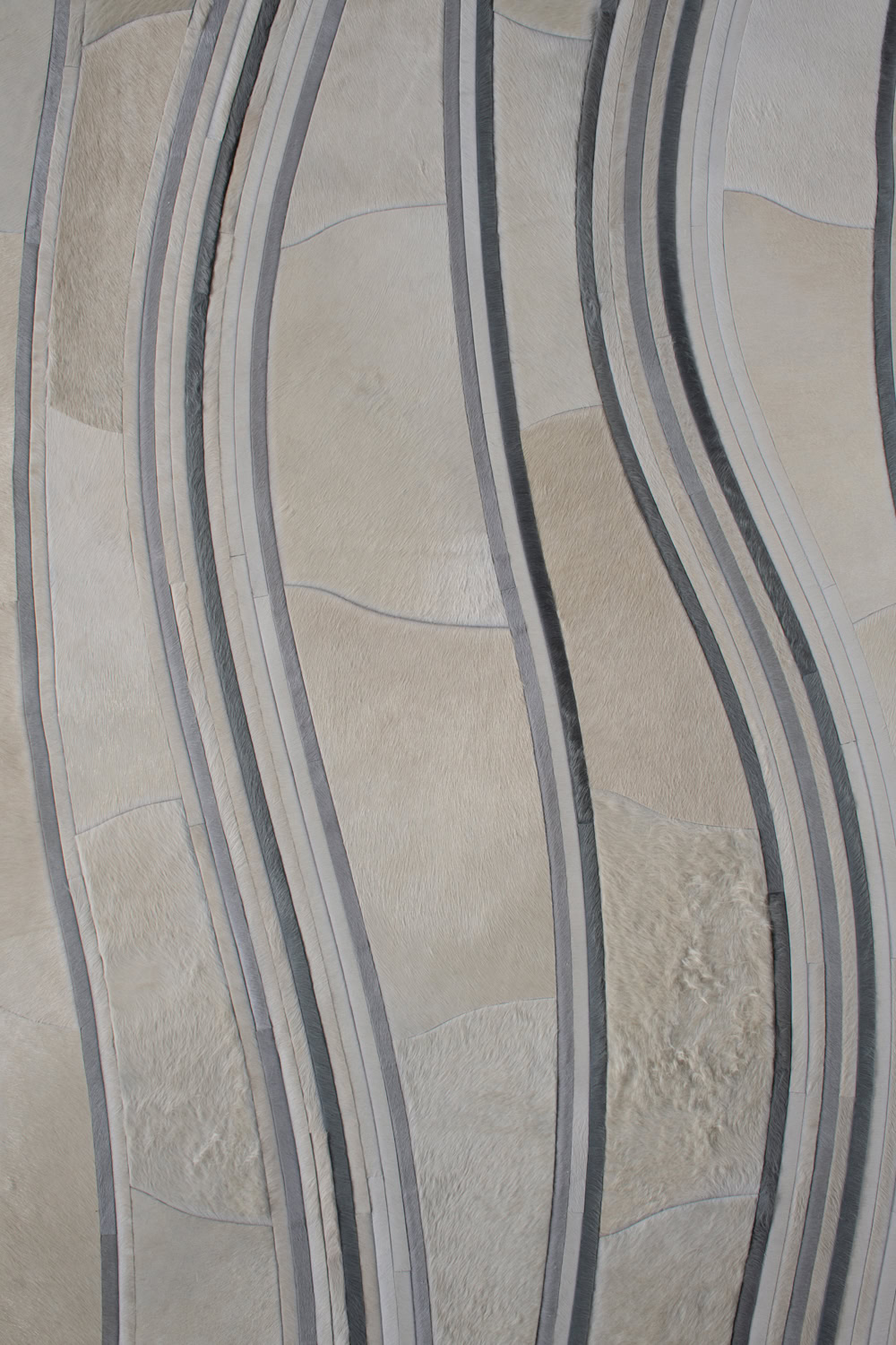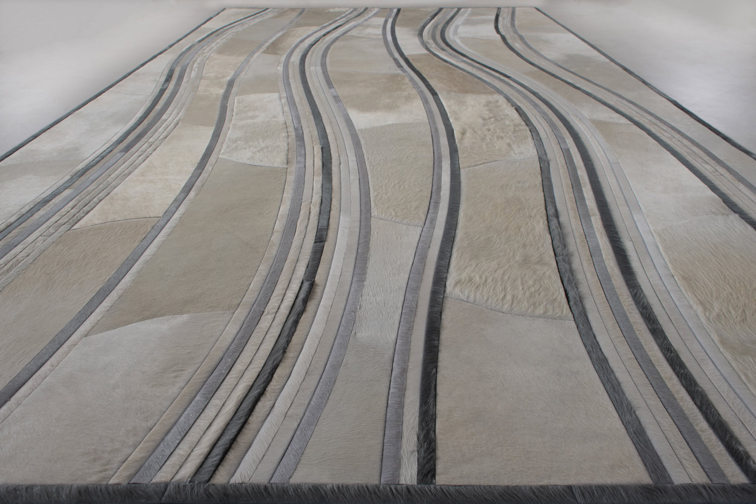 Composed of long, fluid bands of hide, Swell alludes to the movement of waves in the ocean. This water-like design is created with contrasting 1” ripples that give the organic pattern an air of contemporary stylization.