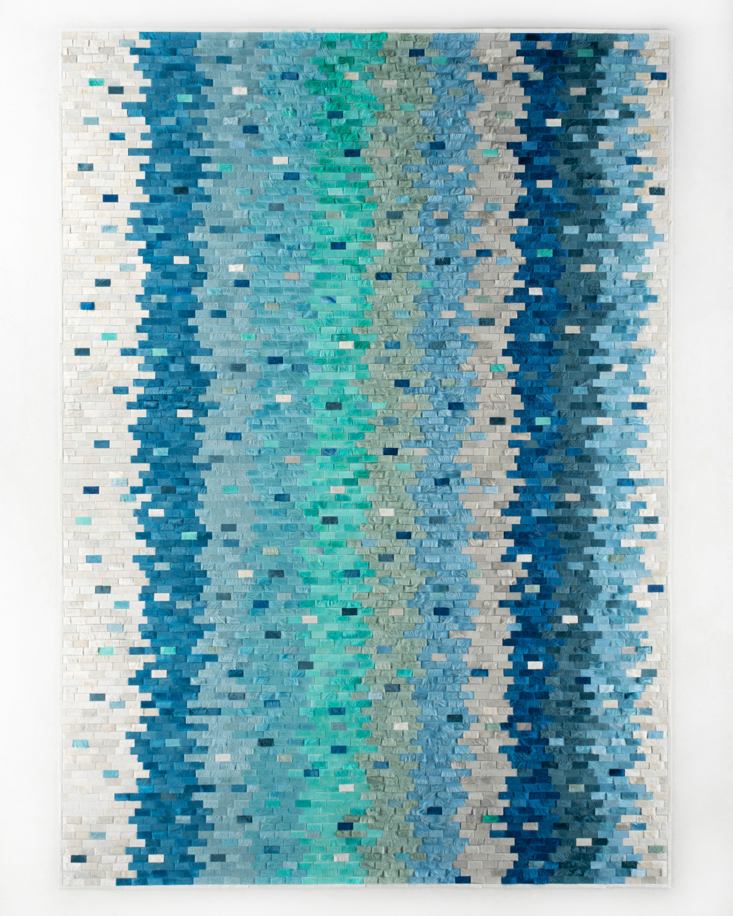 The running bond pattern of Unchained made up of bricked rectangles in varying tones. 1.5” x 3” strips come together to create this mosaic of color and texture, actualized in countless layouts and color ways.