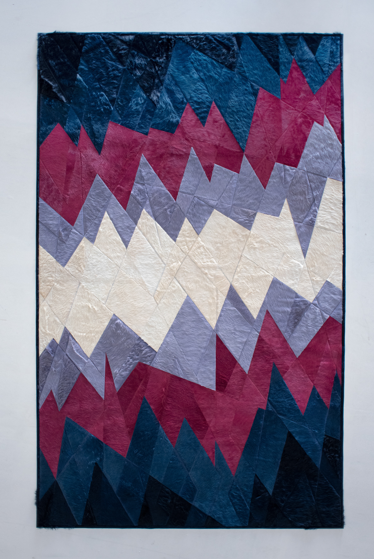 The more trialing the climb, the greater the reward, for the greatest perspective is experienced from the top. Popularly rendered using thick bands of contrasting color, the acute, upwards jagged angles evoke images of rugged crevices and isolated summits found within vast mountain ranges.