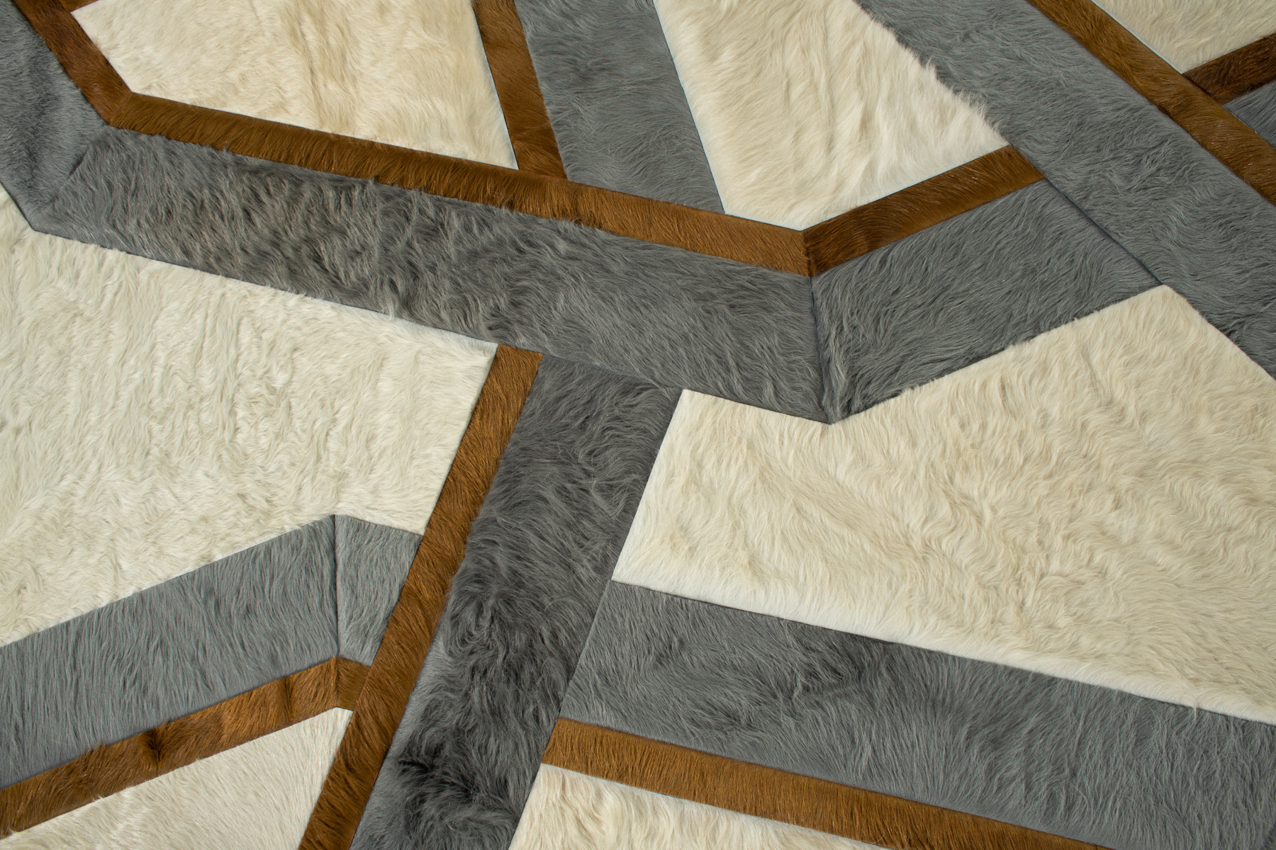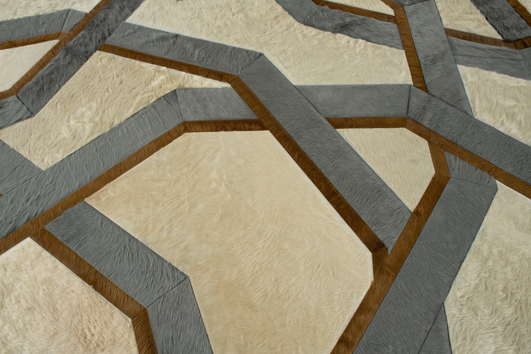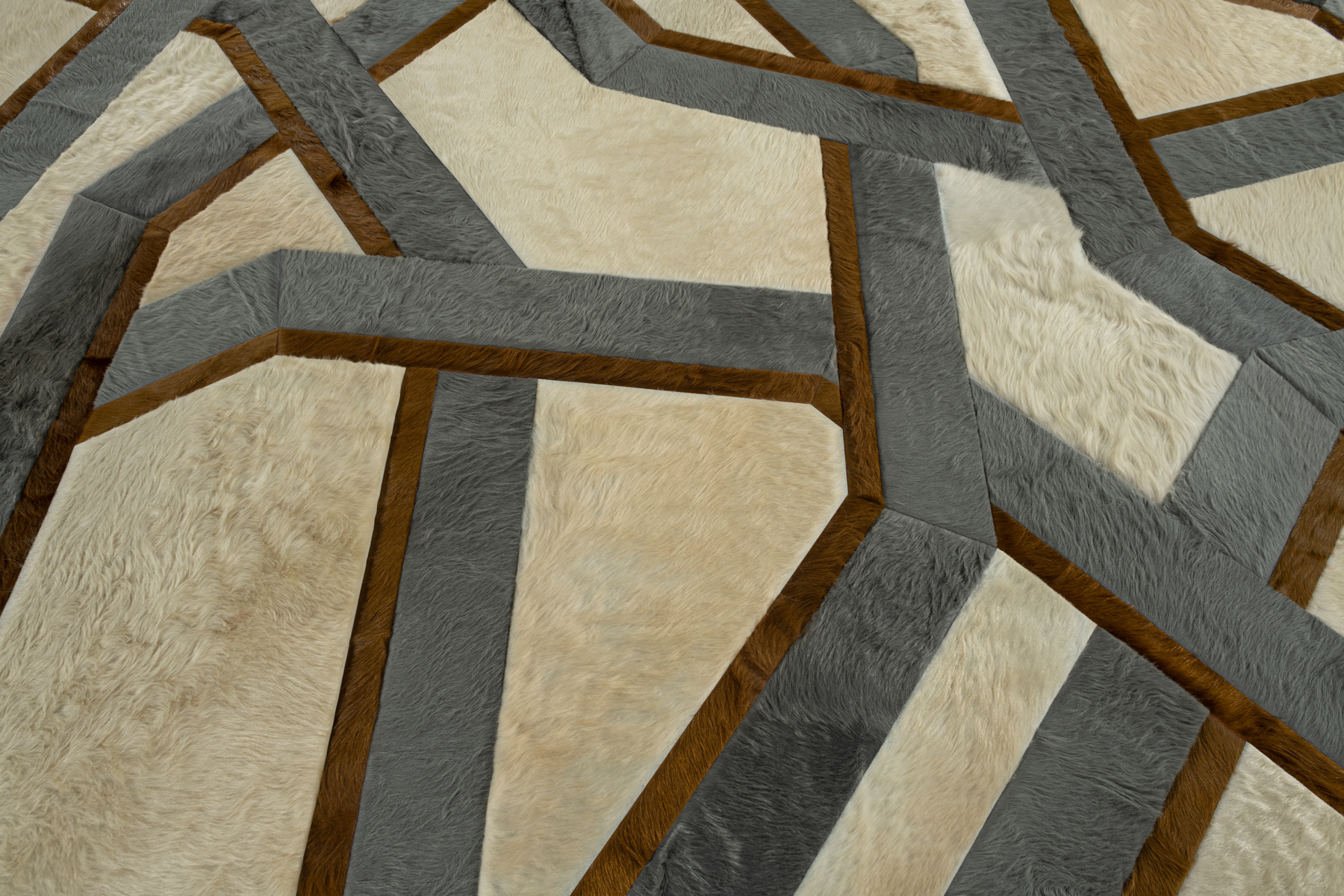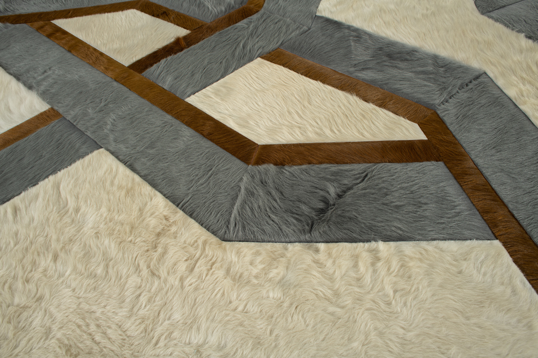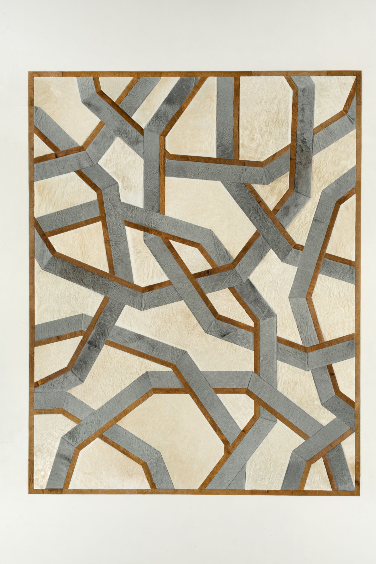 Vertigo, characterized by overlapping octagons, proves a successful rendition of illusory depth and dimension. Originally imagined as a runner, Vertigo, in varying colorways, captures an eruption of linear forms.