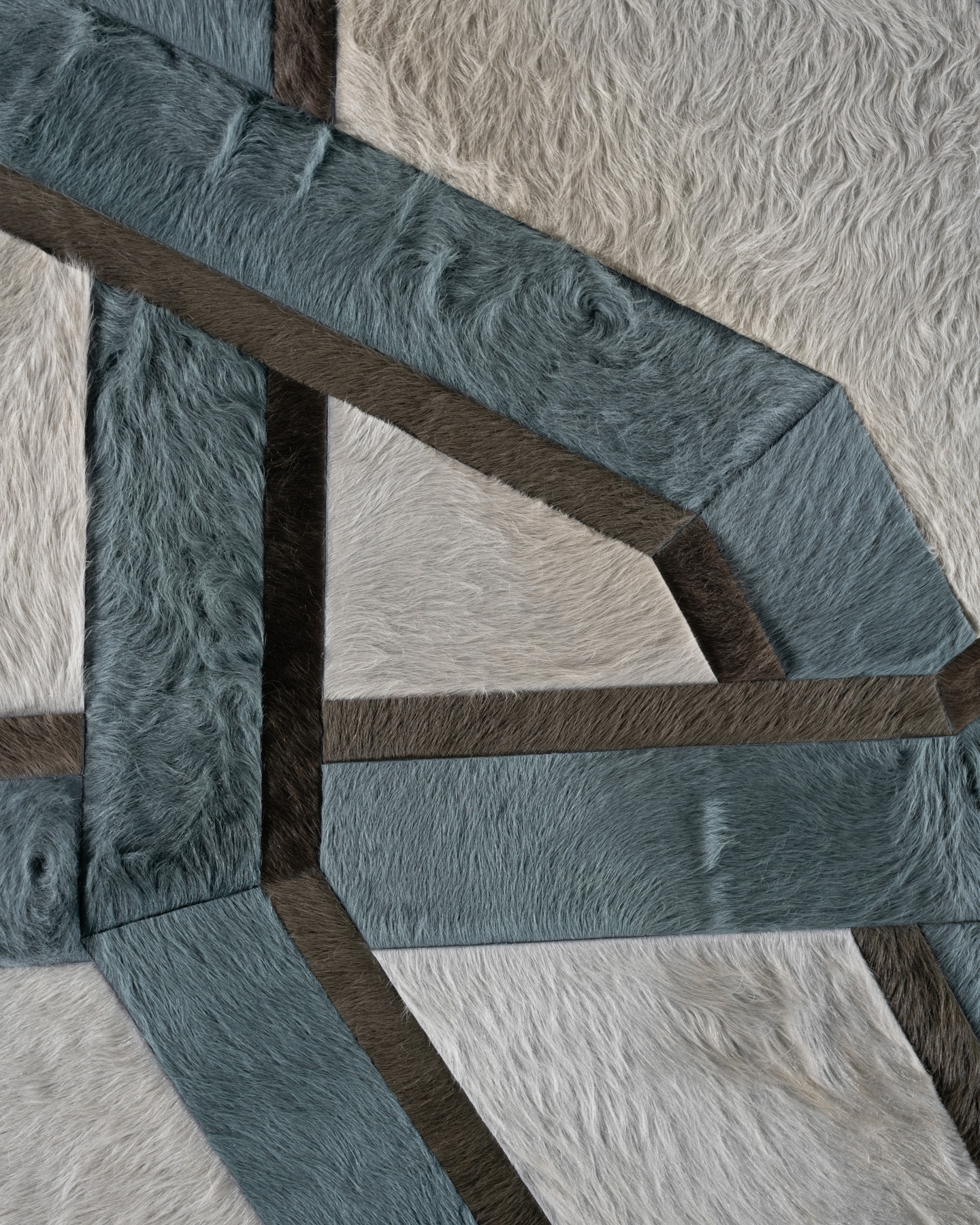 Vertigo, characterized by overlapping octagons, proves a successful rendition of illusory depth and dimension. Originally imagined as a runner, Vertigo, in varying colorways, captures an eruption of linear forms.