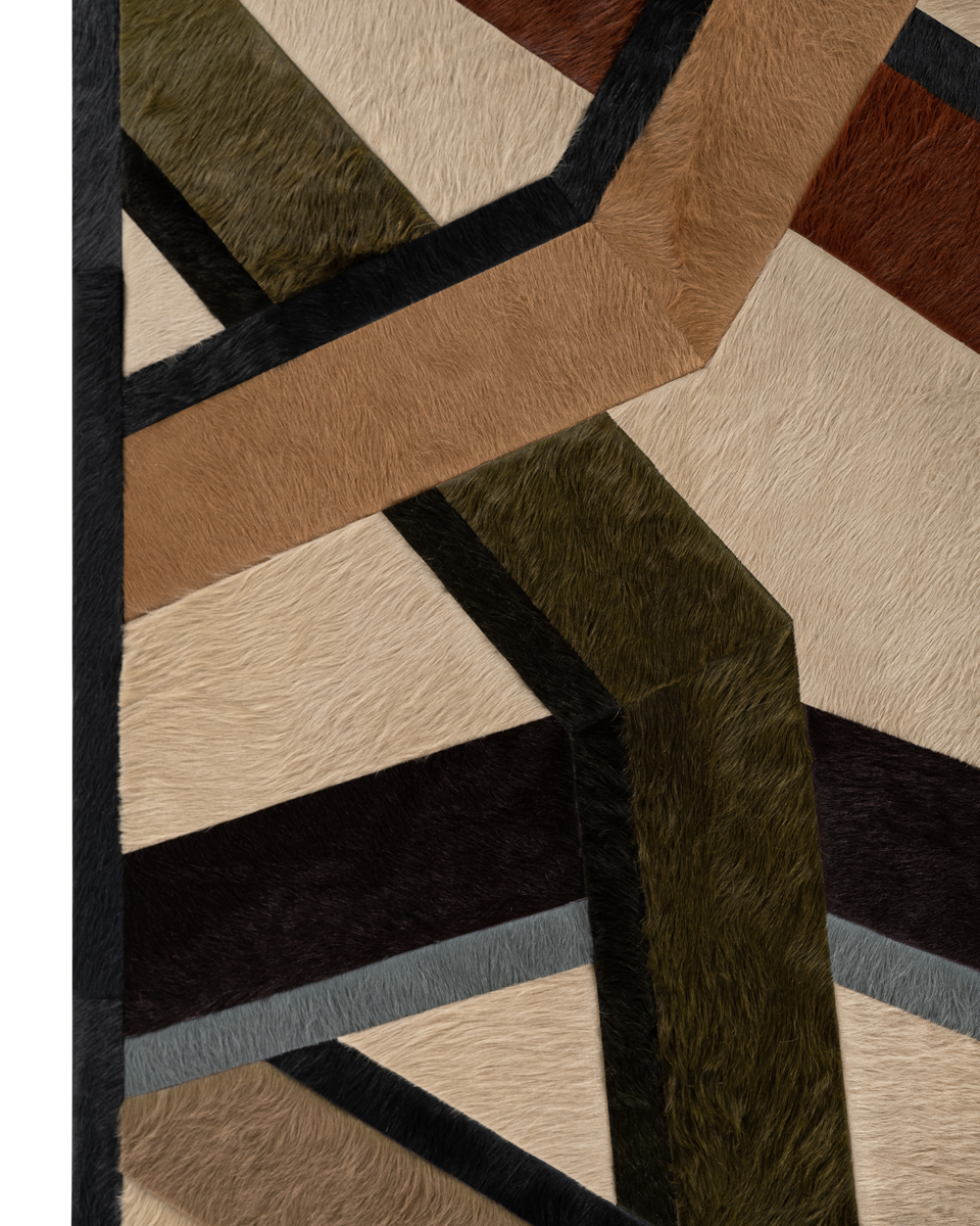 Vertigo, characterized by overlapping octagons, proves a successful rendition of illusory depth and dimension. Originally imagined as a runner, Vertigo, in varying colorways, captures an eruption of linear forms.