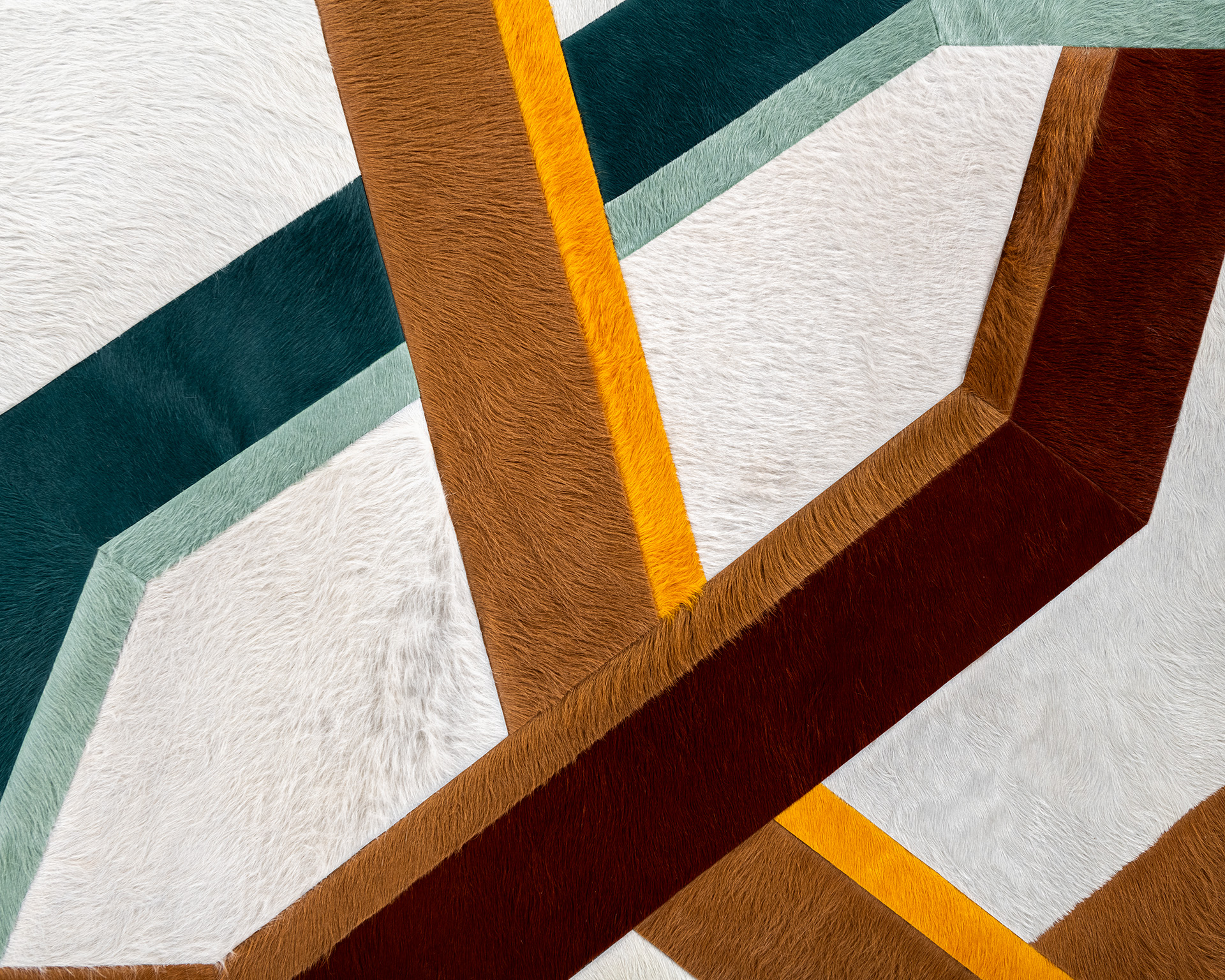 Vertigo, characterized by overlapping octagons, proves a successful rendition of illusory depth and dimension. Originally imagined as a runner, Vertigo, in varying colorways, captures an eruption of linear forms.