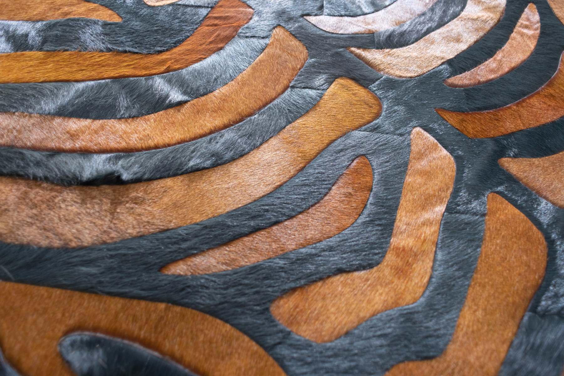 Zebra is Kyle Bunting’s answer to the on-trend, stylized use of zebra print. Built entirely from cowhide, this design matches the patterning of a true zebra coat.