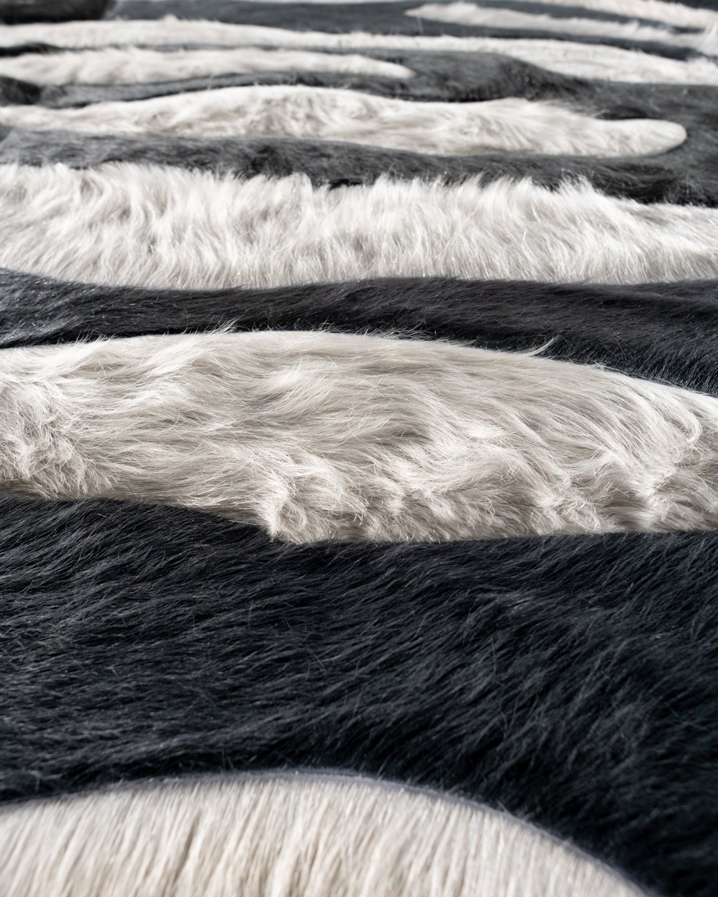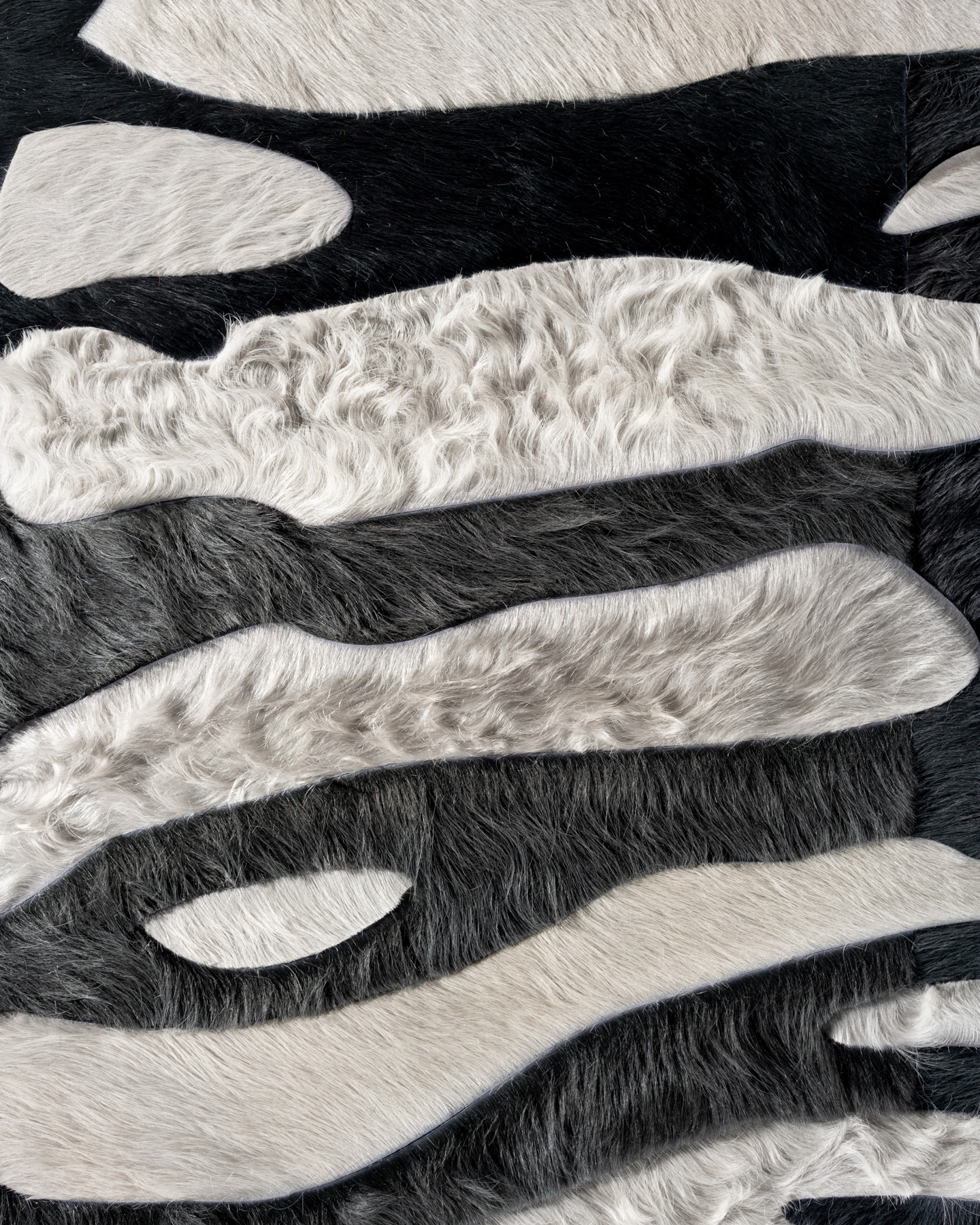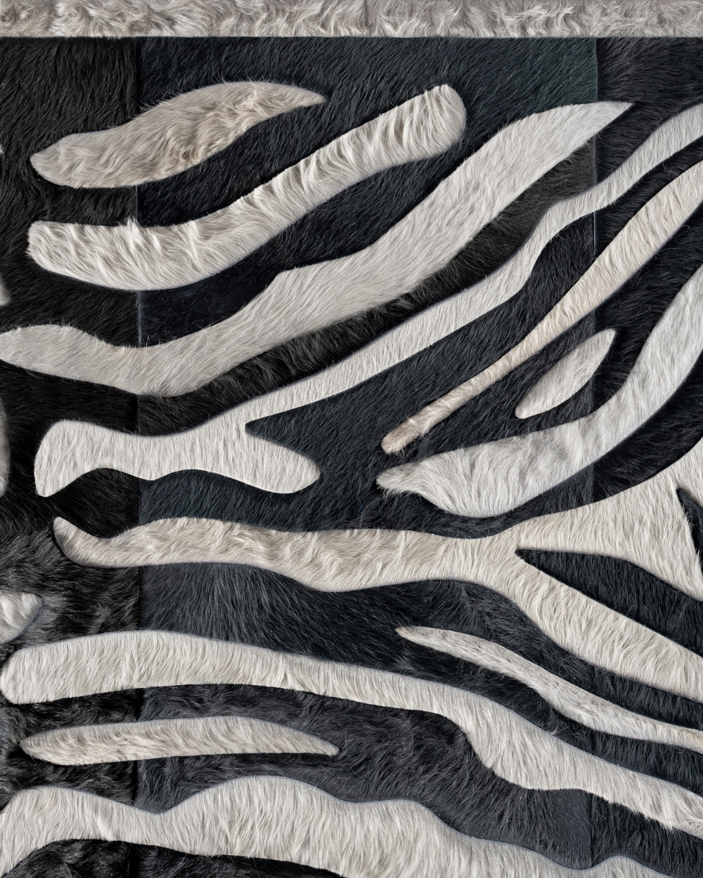 Zebra is Kyle Bunting’s answer to the on-trend, stylized use of zebra print. Built entirely from cowhide, this design matches the patterning of a true zebra coat.